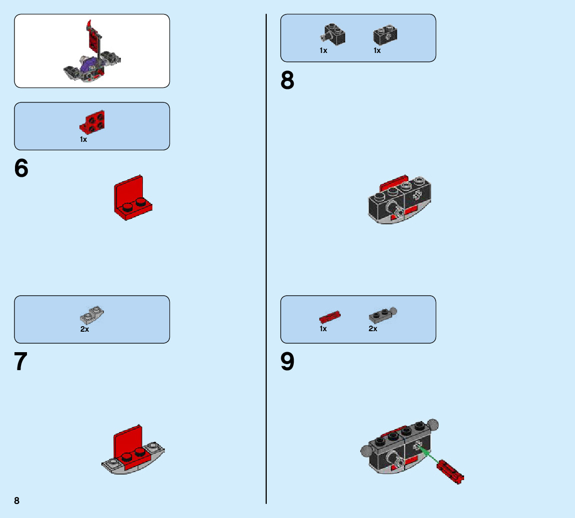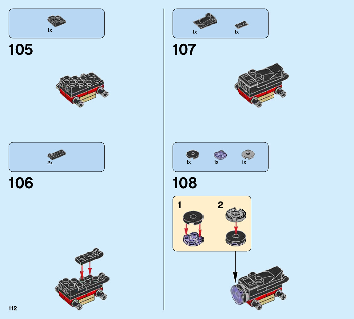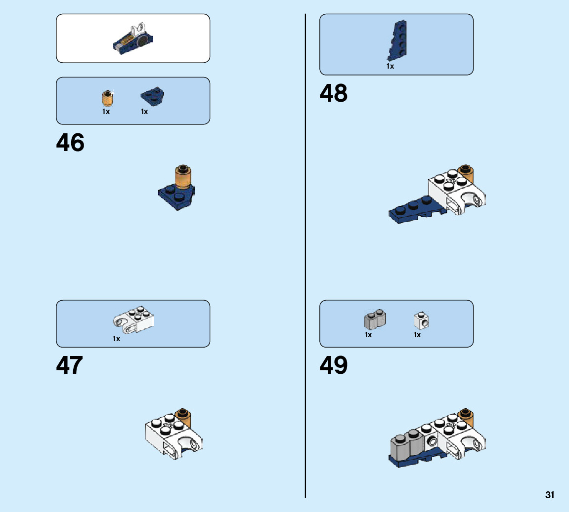 The assembly guide is prepared in a very understandable way for children and adult LEGO enthusiasts. A total of 128 picture galleries are shown, explaining the step-by-step construction stages for 1 different structures.