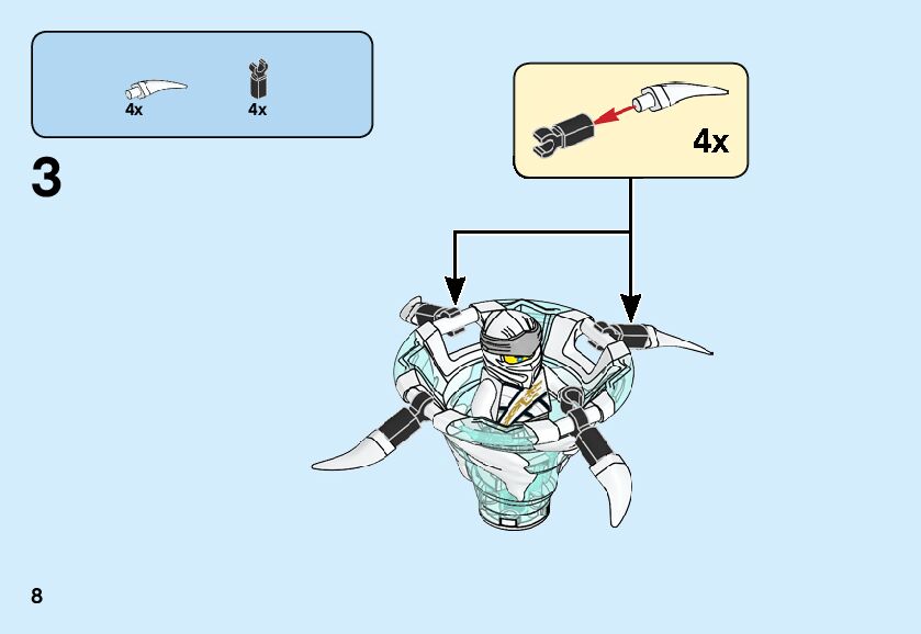 On this page you can find the original construction manual for the LEGO 70661 set. With the assembly manual you can easily learn how to build the 70661 Spinjitzu Zane step by step. The set was released in 2019.