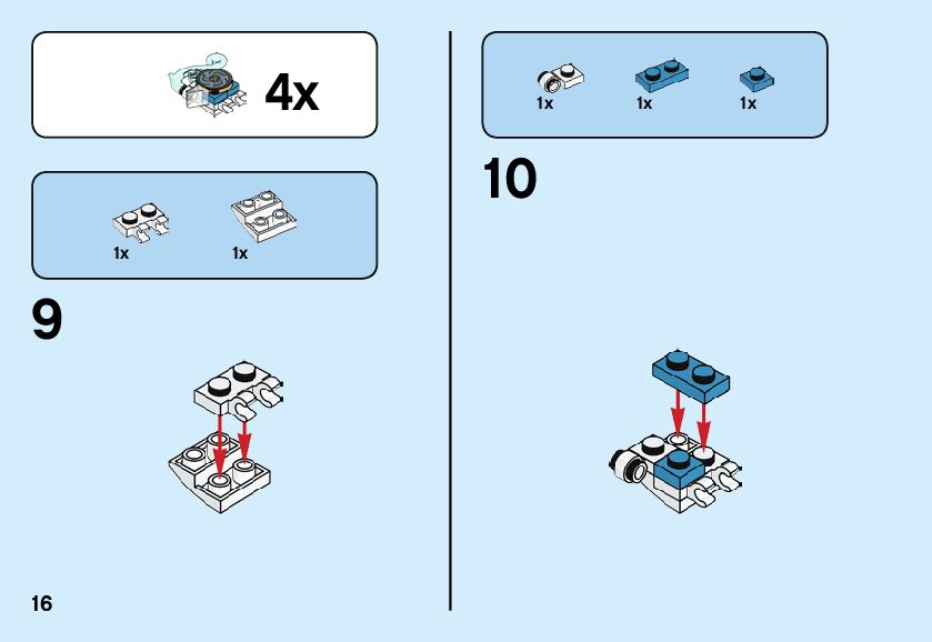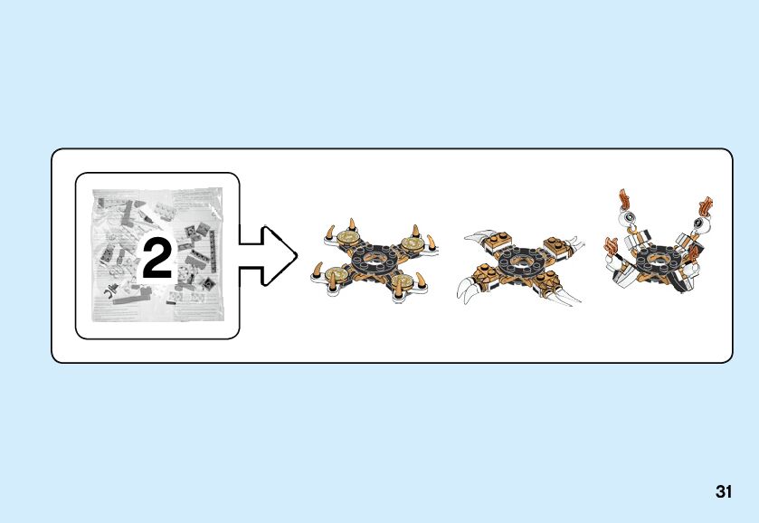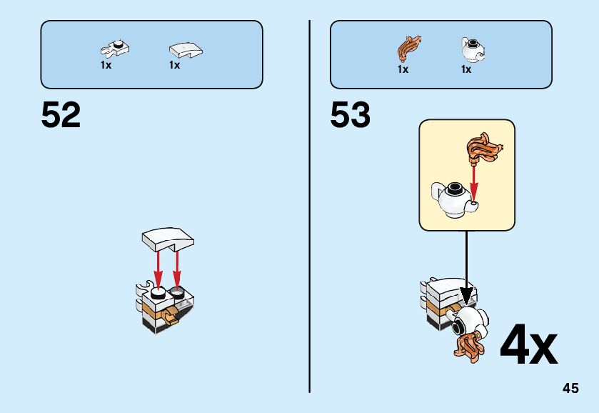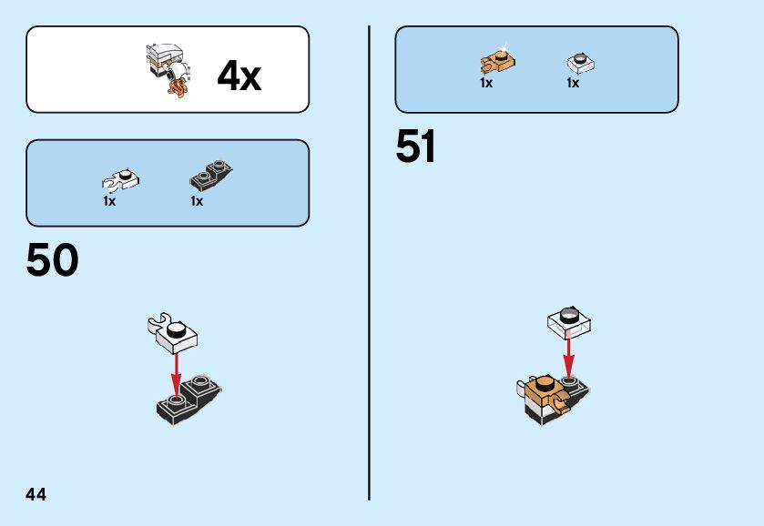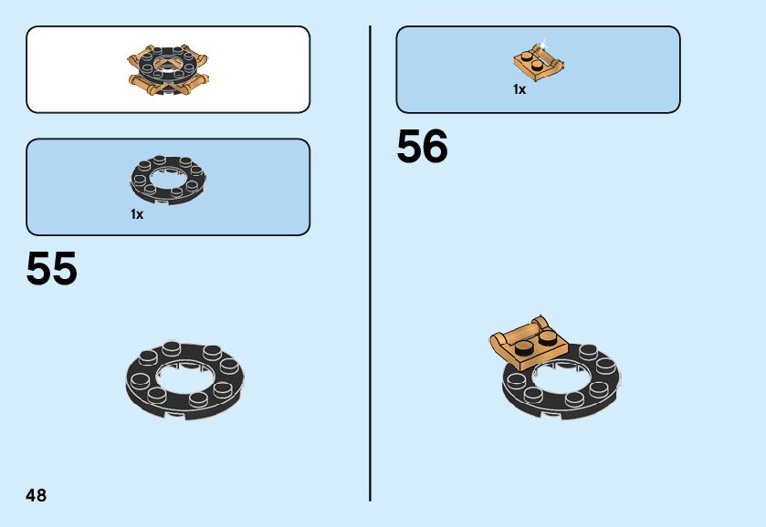 The assembly guide is prepared in a very understandable way for children and adult LEGO enthusiasts. A total of 56 picture galleries are shown, explaining the step-by-step construction stages for 1 different structures.