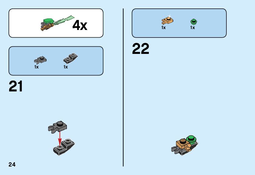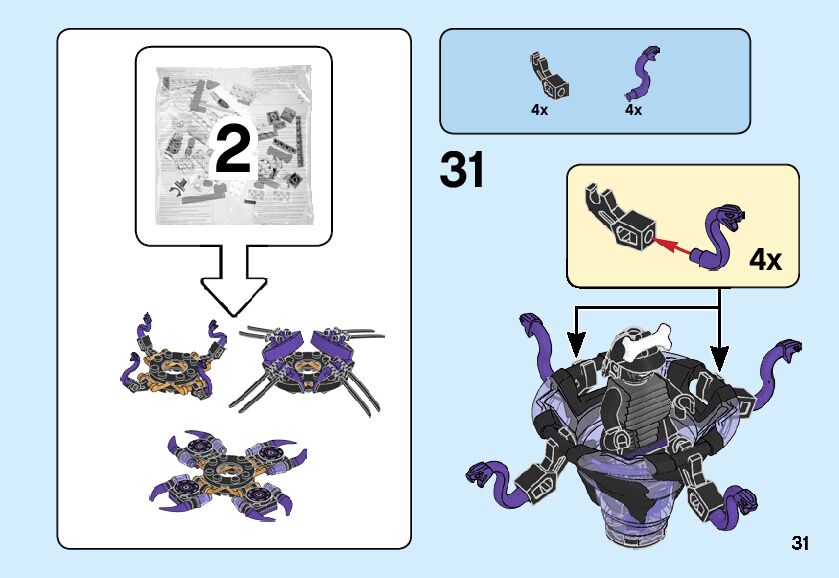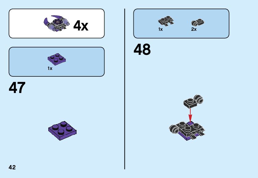 The assembly guide is prepared in a very understandable way for children and adult LEGO enthusiasts. A total of 52 picture galleries are shown, explaining the step-by-step construction stages for 1 different structures.