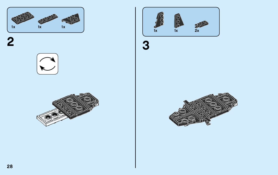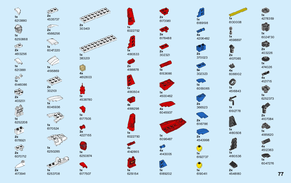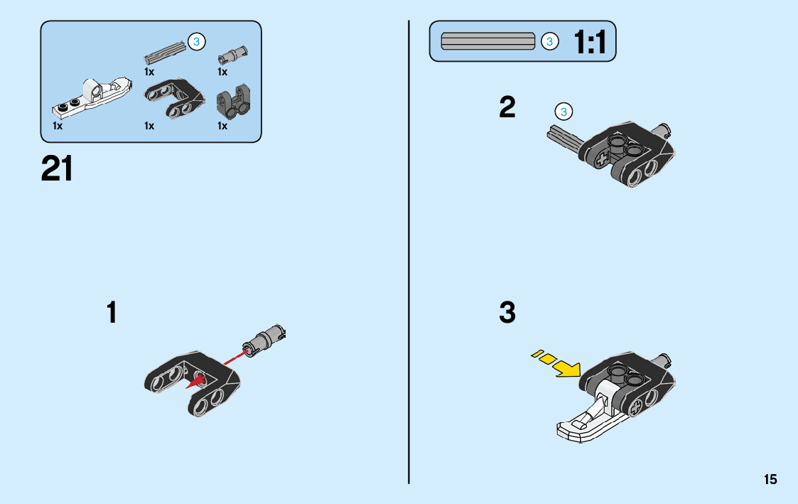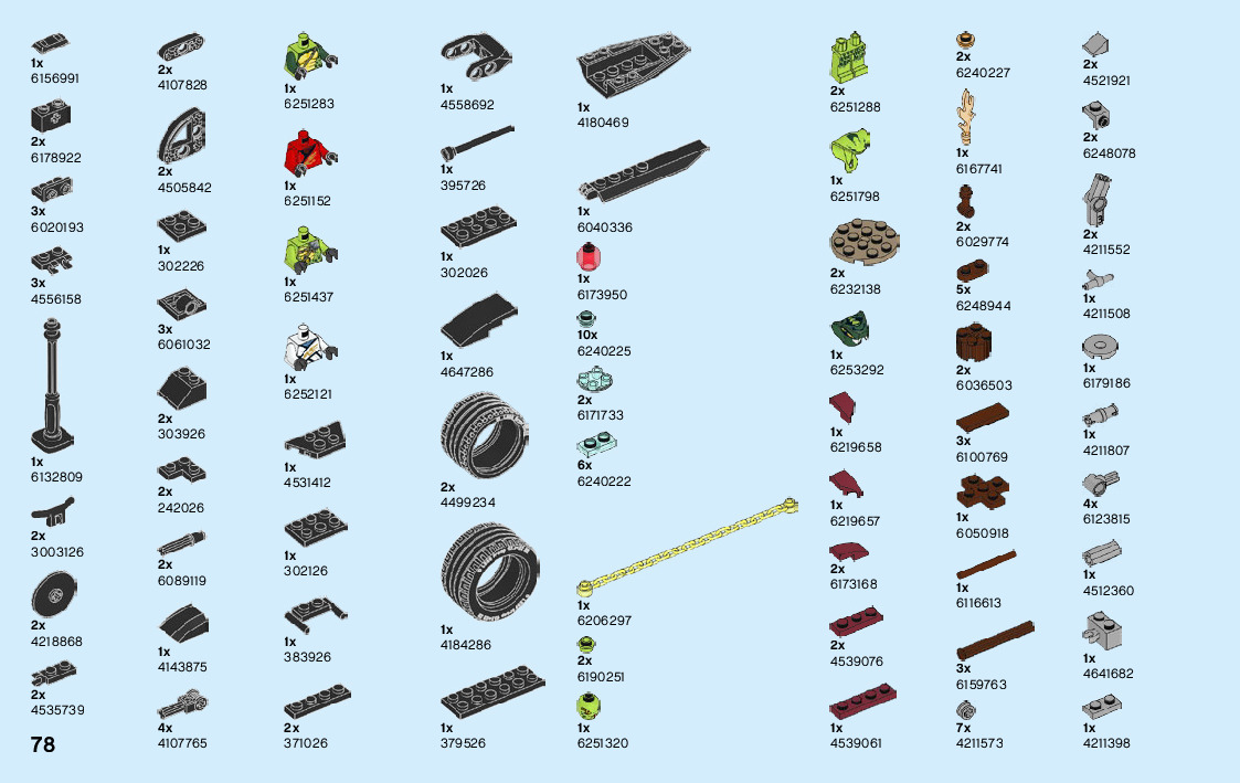The assembly guide is prepared in a very understandable way for children and adult LEGO enthusiasts. A total of 128 picture galleries are shown, explaining the step-by-step construction stages for 2 different structures.