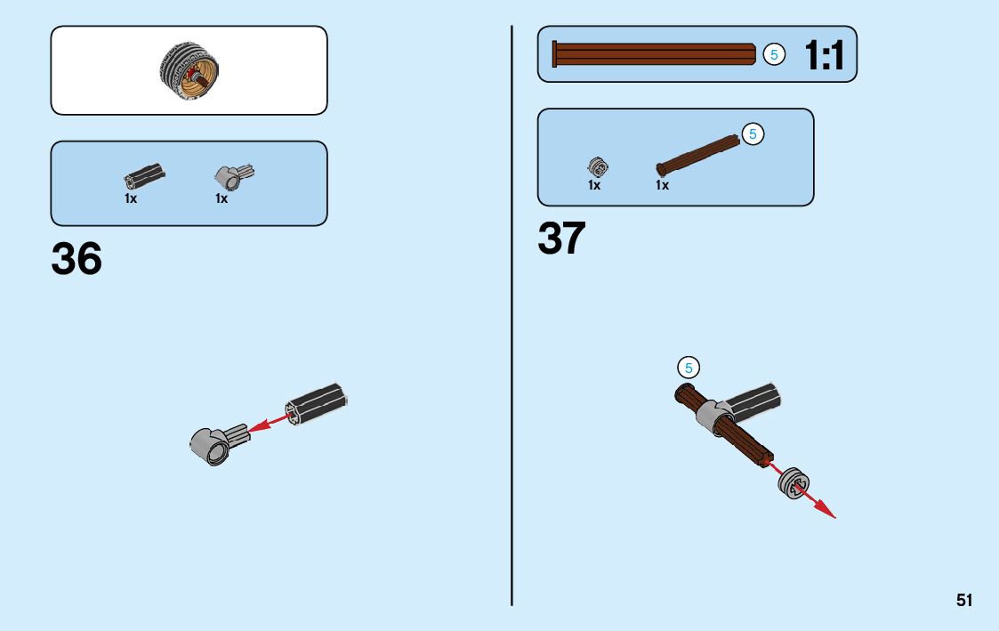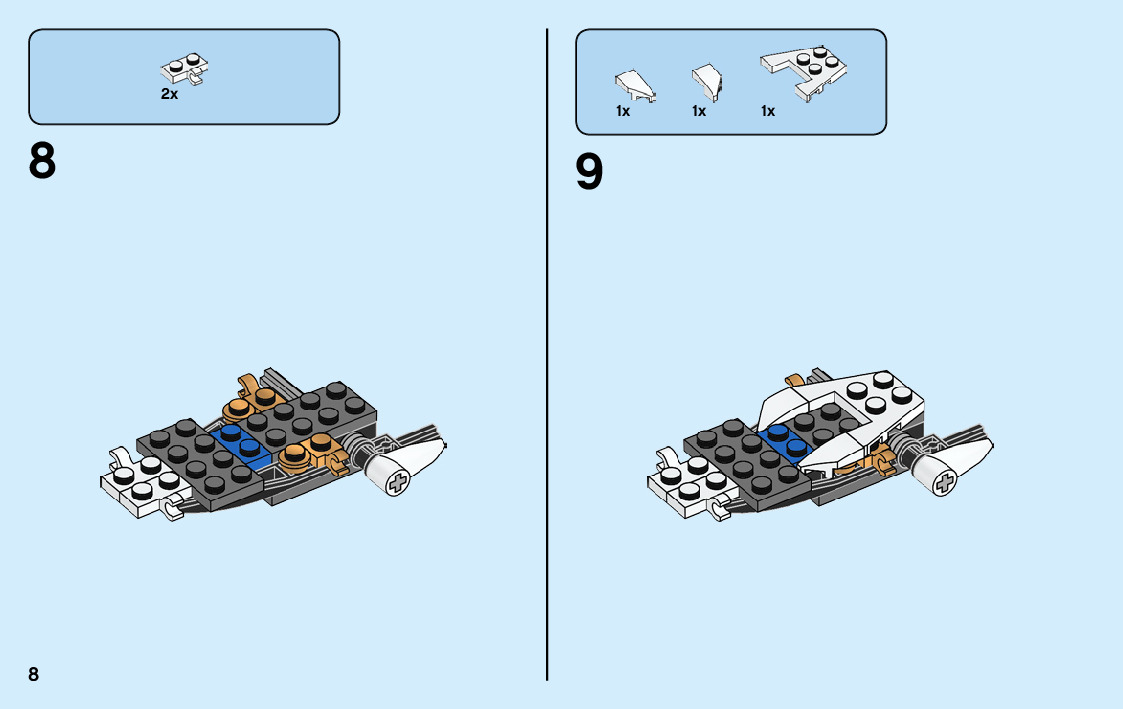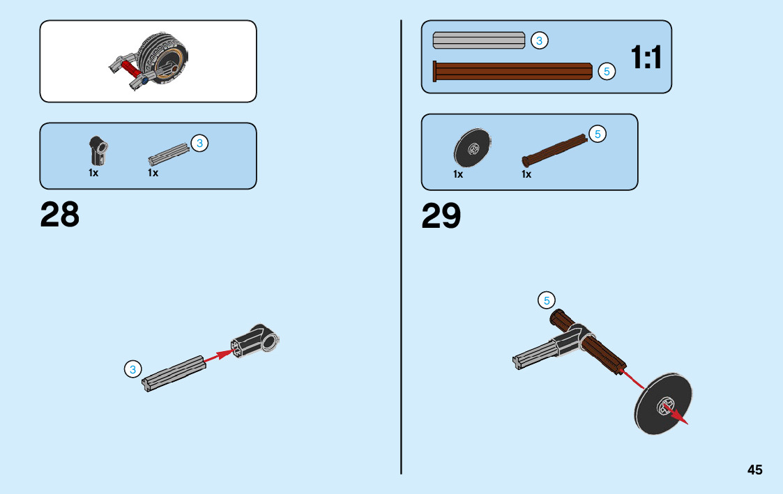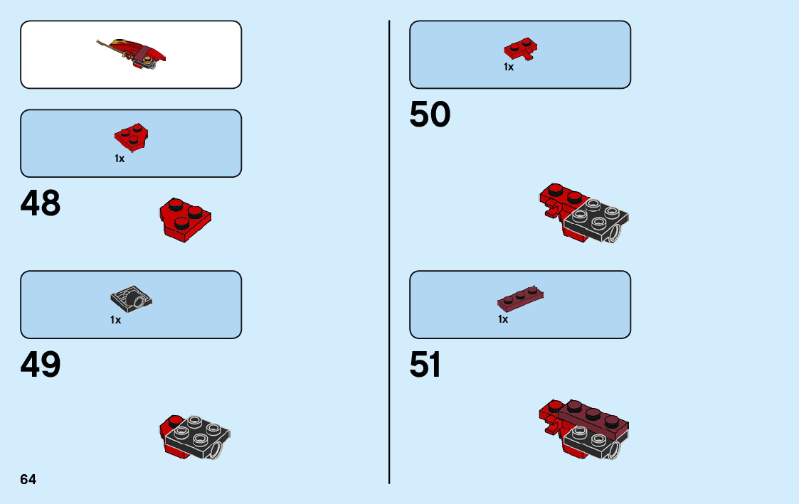 The assembly guide is prepared in a very understandable way for children and adult LEGO enthusiasts. A total of 128 picture galleries are shown, explaining the step-by-step construction stages for 2 different structures.