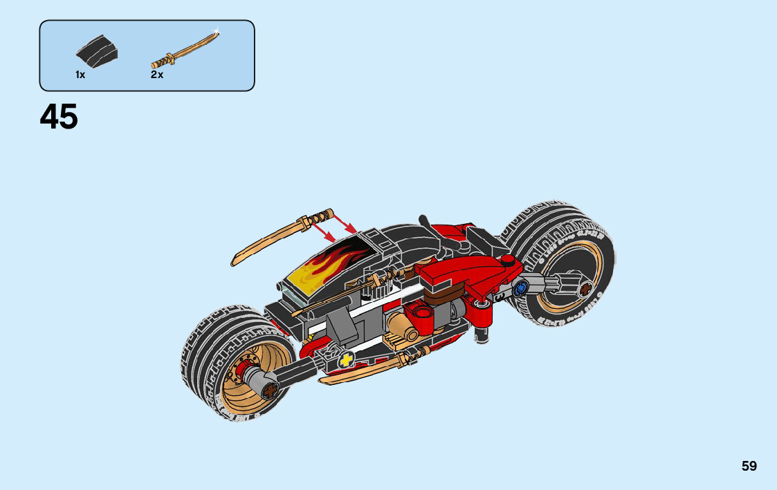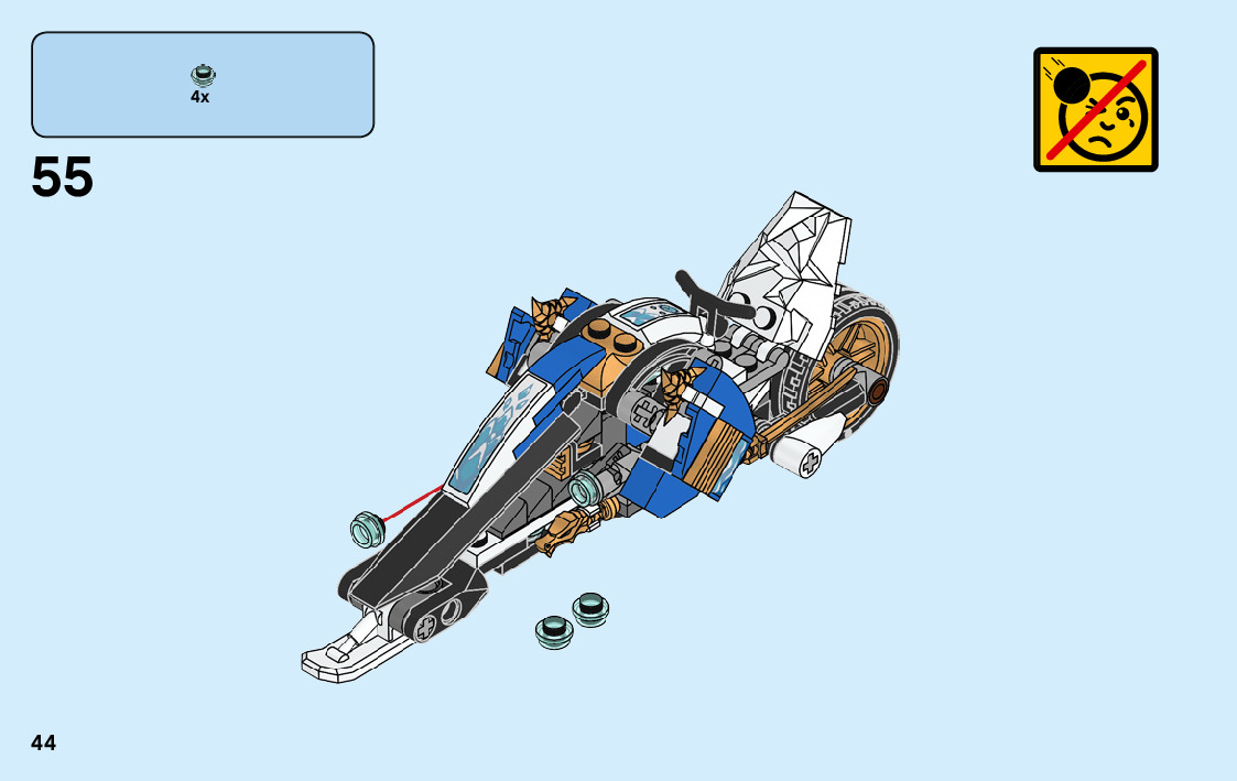 On this page you can find the original construction manual for the LEGO 70667 set. With the assembly manual you can easily learn how to build the 70667 Kai's Blade Cycle & Zane's Snowmobile step by step. The set was released in 2019.