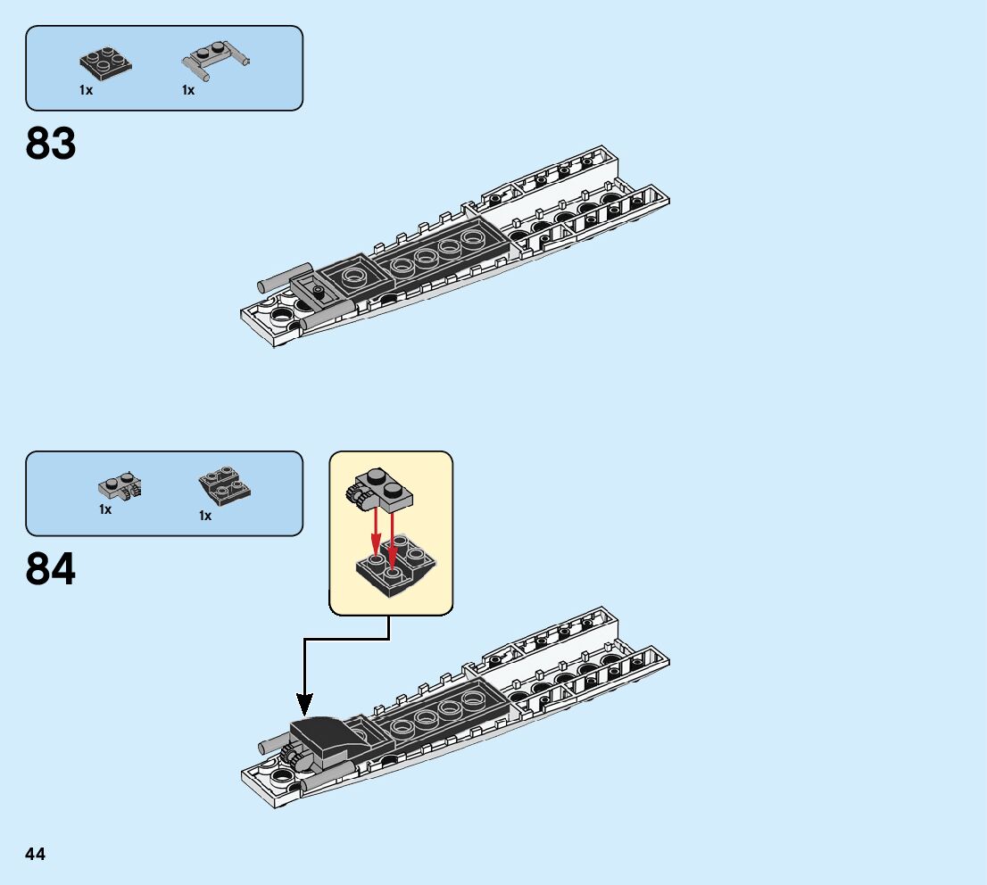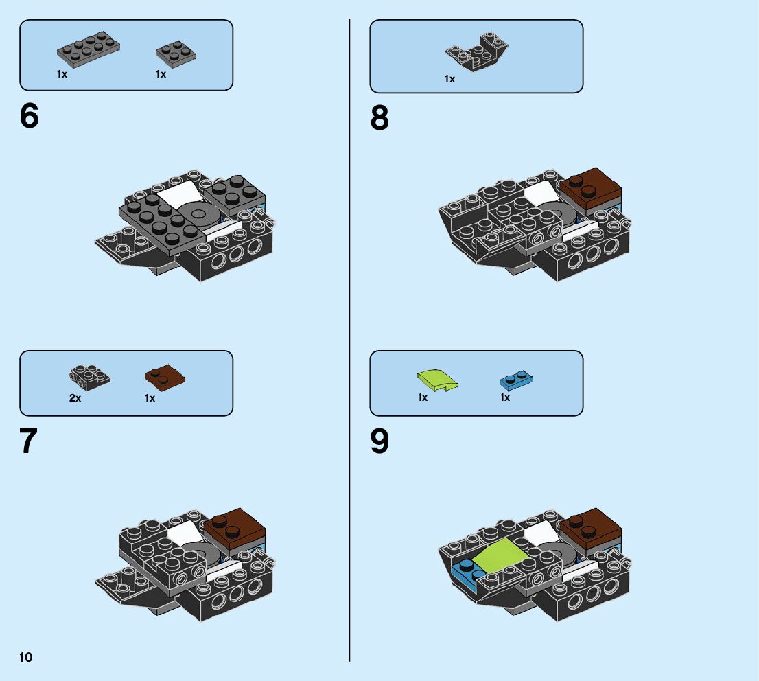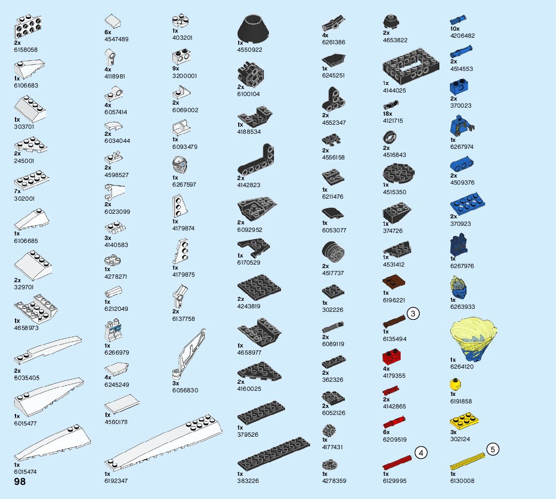 The assembly guide is prepared in a very understandable way for children and adult LEGO enthusiasts. A total of 100 picture galleries are shown, explaining the step-by-step construction stages for 1 different structures.