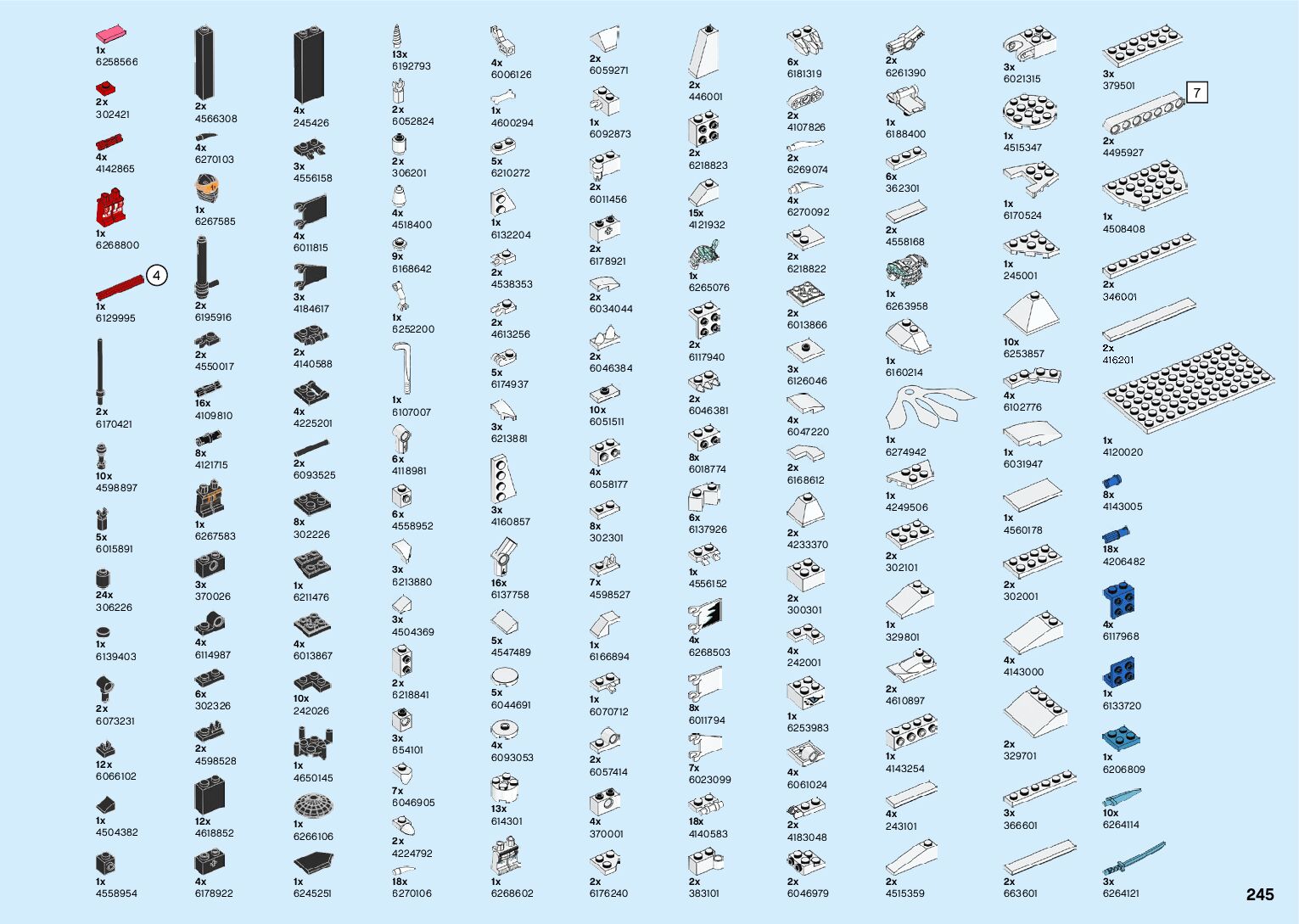 The assembly guide is prepared in a very understandable way for children and adult LEGO enthusiasts. A total of 248 picture galleries are shown, explaining the step-by-step construction stages for 1 different structures.