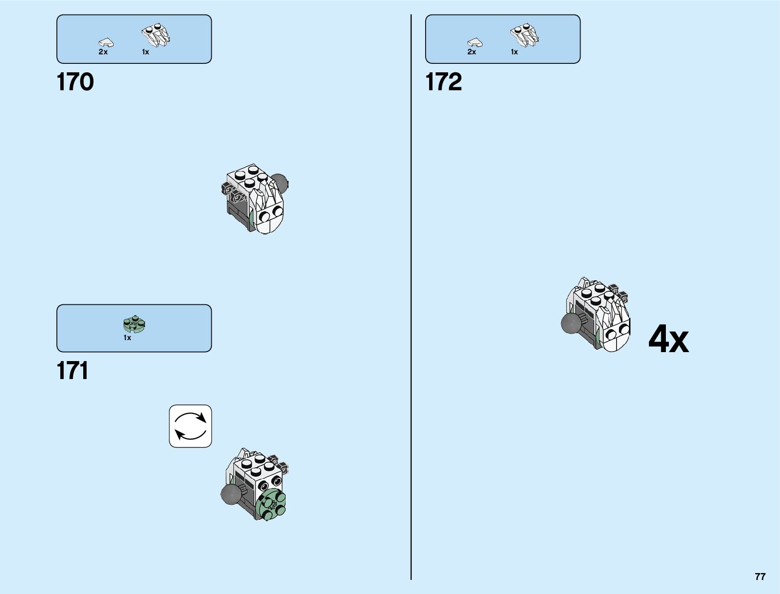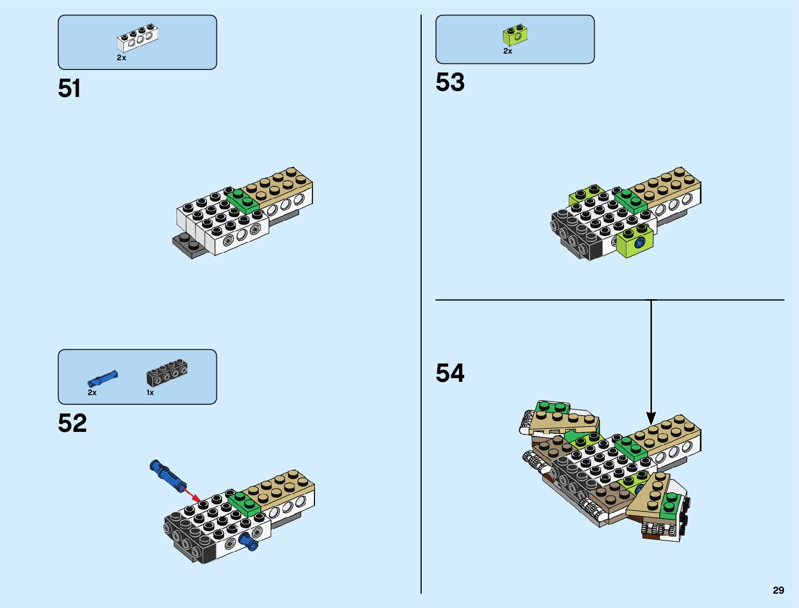 The assembly guide is prepared in a very understandable way for children and adult LEGO enthusiasts. A total of 160 picture galleries are shown, explaining the step-by-step construction stages for 1 different structures.