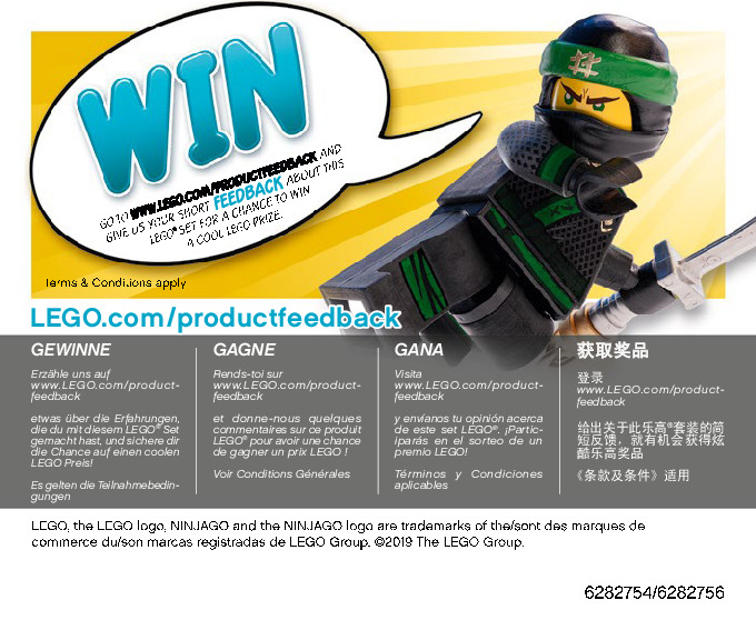 On this page you can find the original construction manual for the LEGO 70682 set. With the assembly manual you can easily learn how to build the 70682 Spinjitzu Slam - Jay step by step. The set was released in 2019.