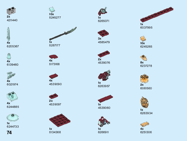 The assembly guide is prepared in a very understandable way for children and adult LEGO enthusiasts. A total of 76 picture galleries are shown, explaining the step-by-step construction stages for 1 different structures.