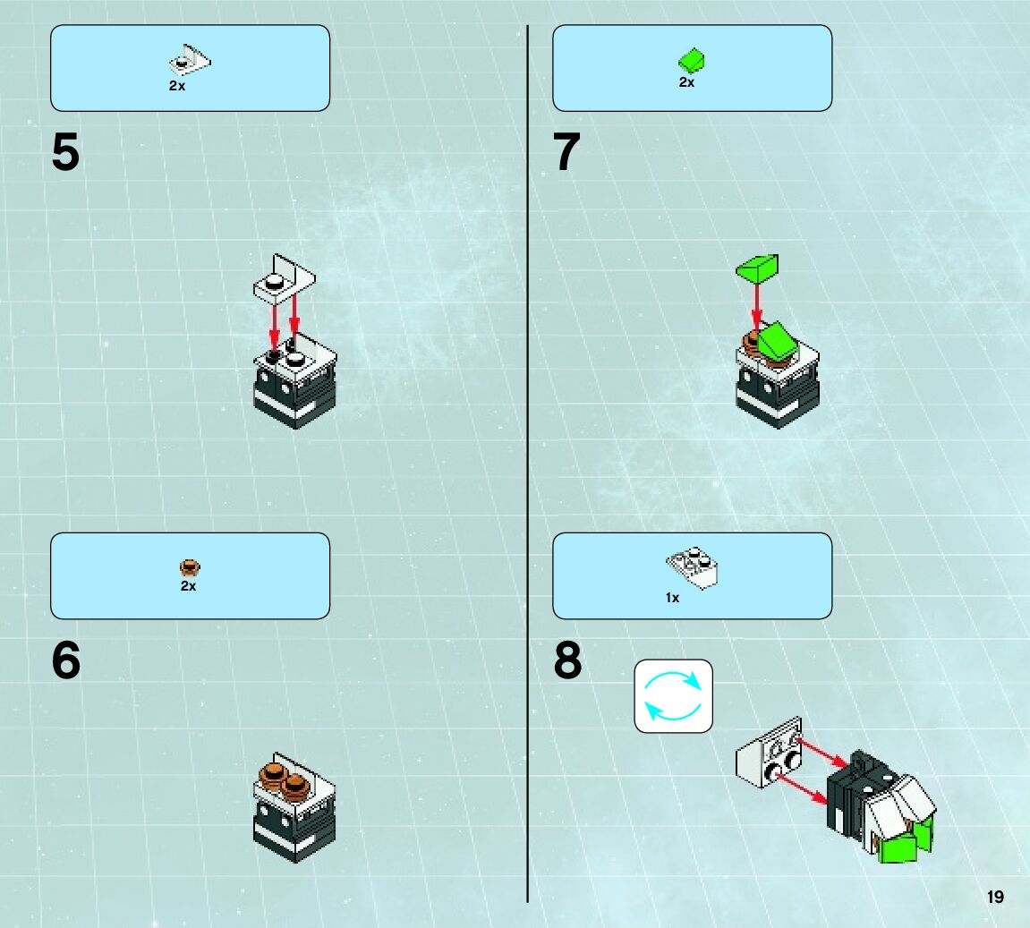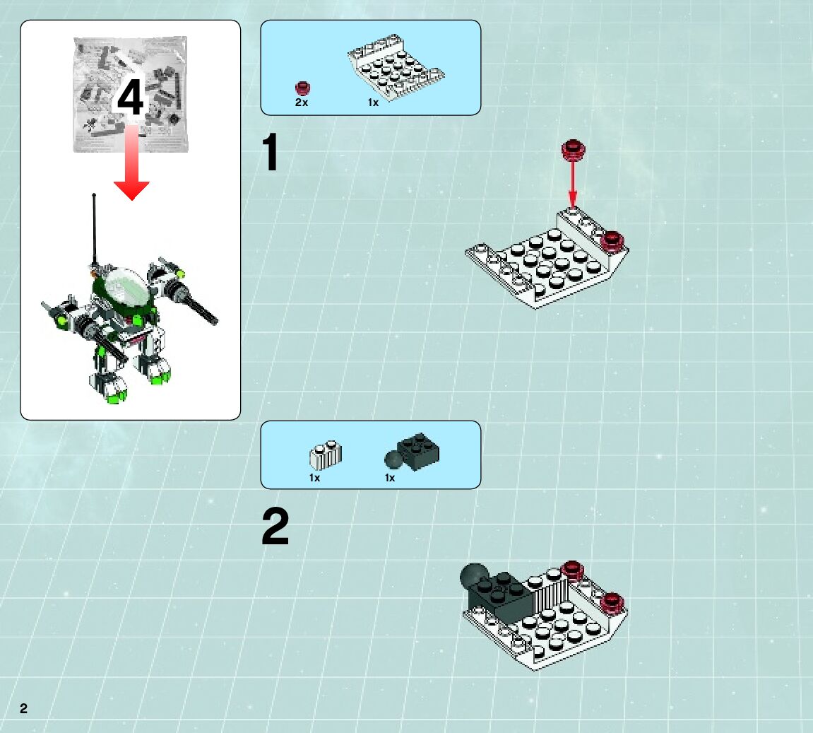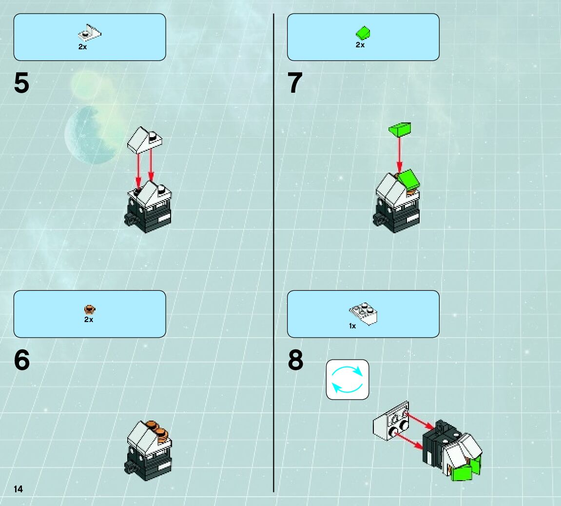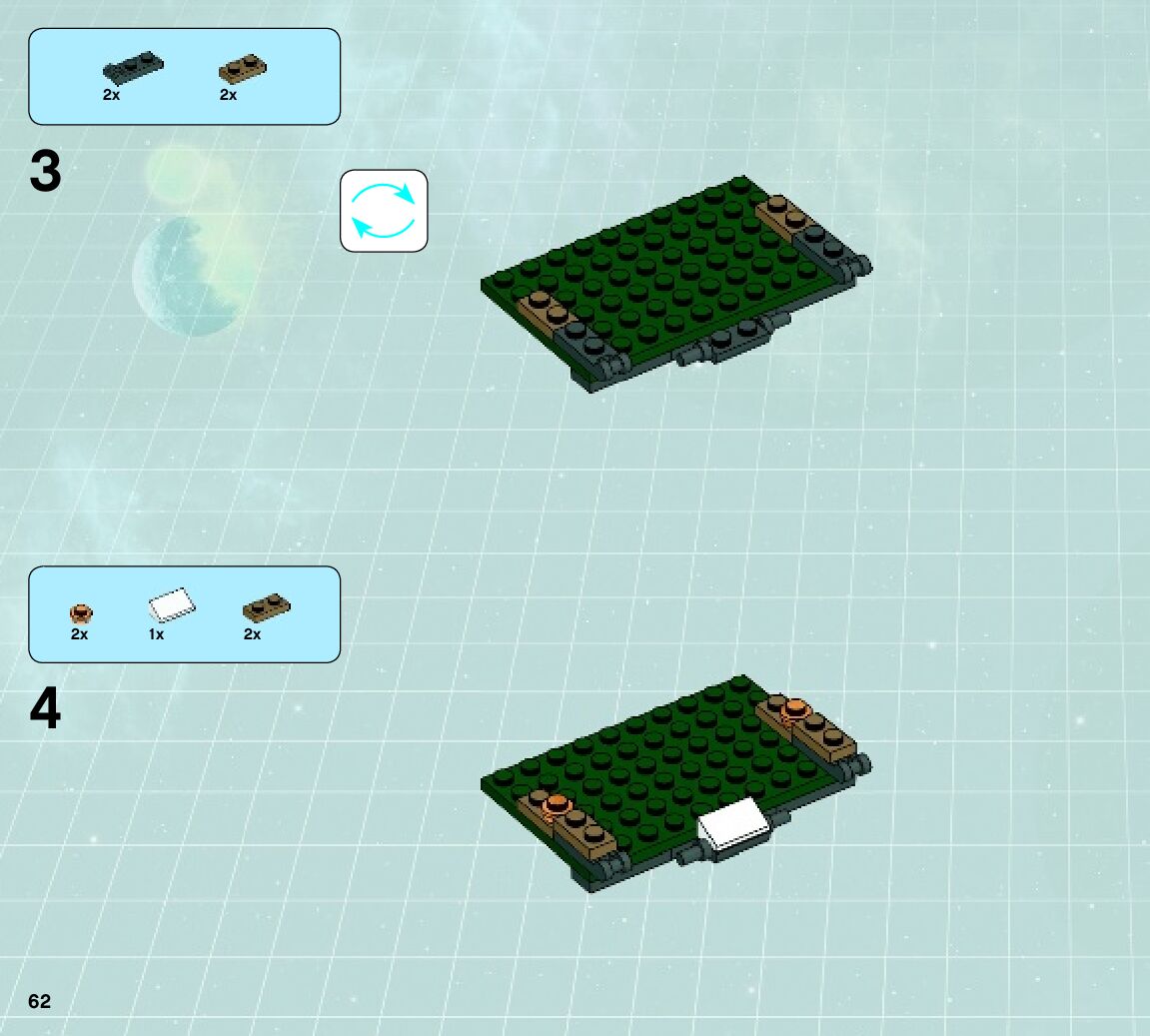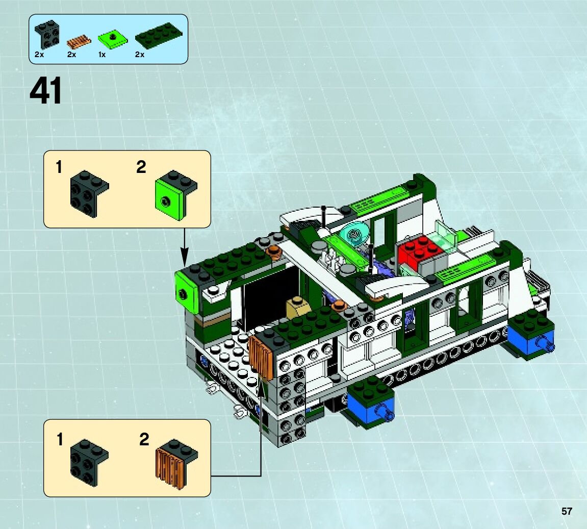 The assembly guide is prepared in a very understandable way for children and adult LEGO enthusiasts. A total of 580 picture galleries are shown, explaining the step-by-step construction stages for 2 different structures.
