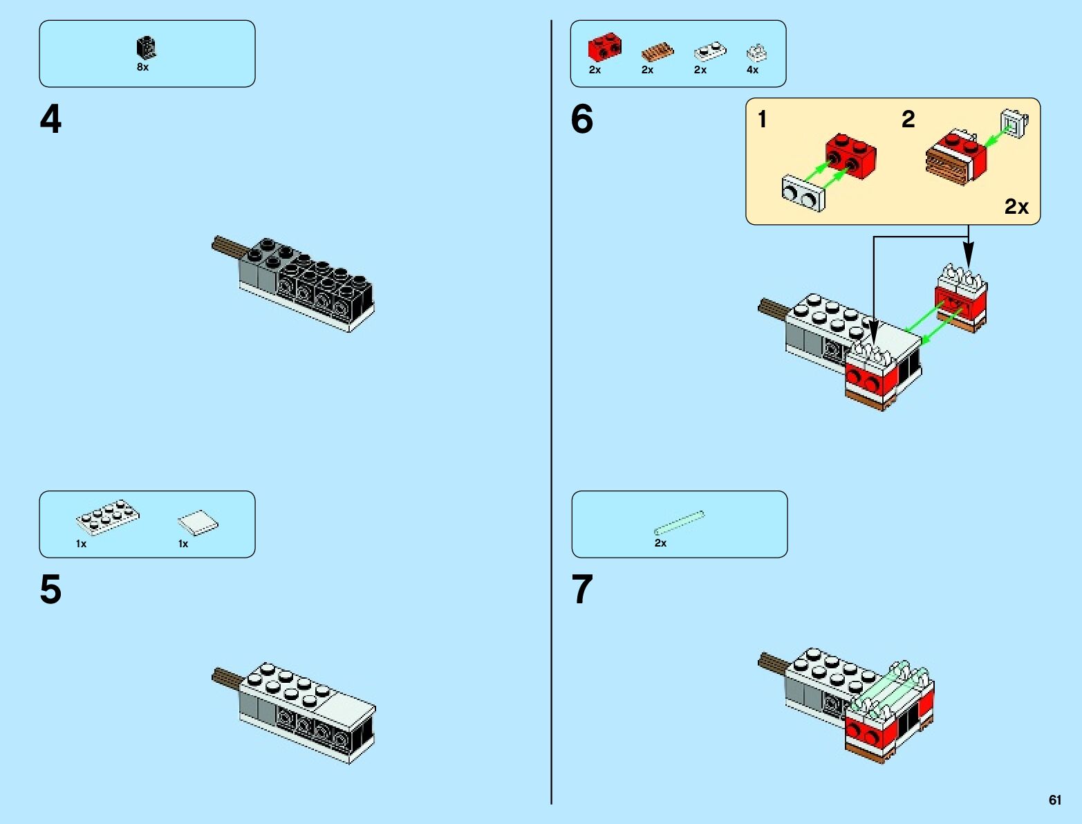 The assembly guide is prepared in a very understandable way for children and adult LEGO enthusiasts. A total of 80 picture galleries are shown, explaining the step-by-step construction stages for 1 different structures.
