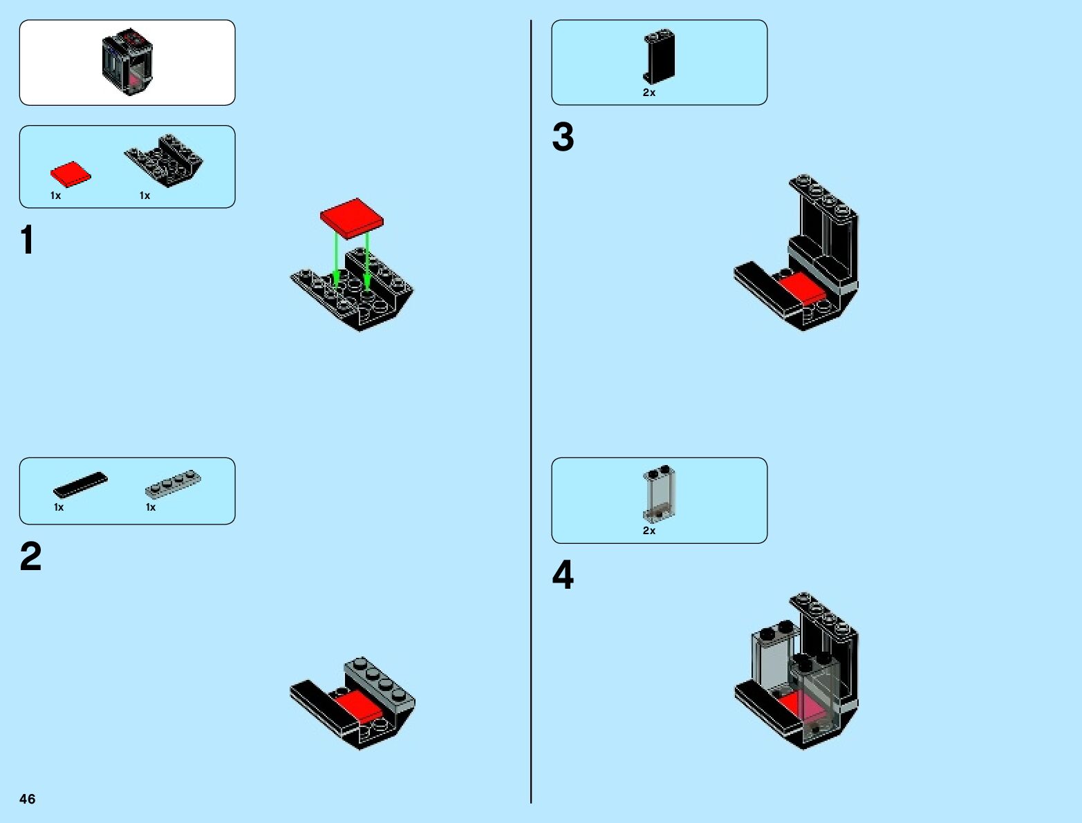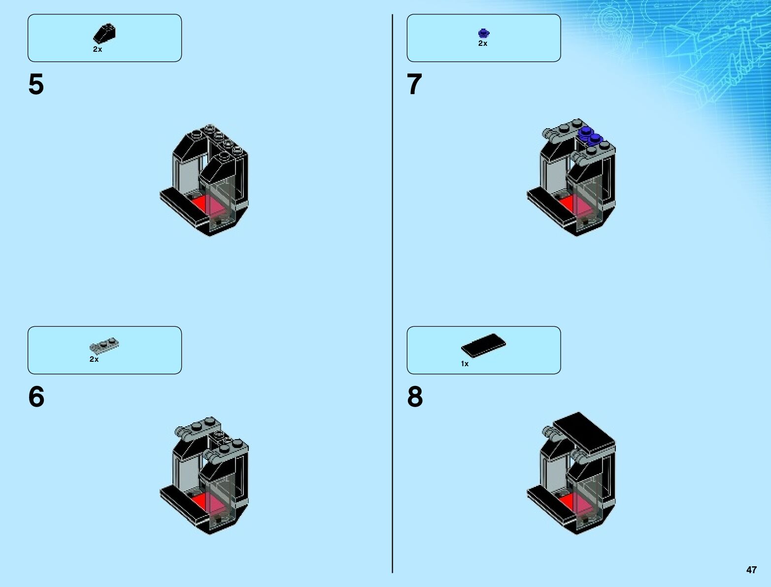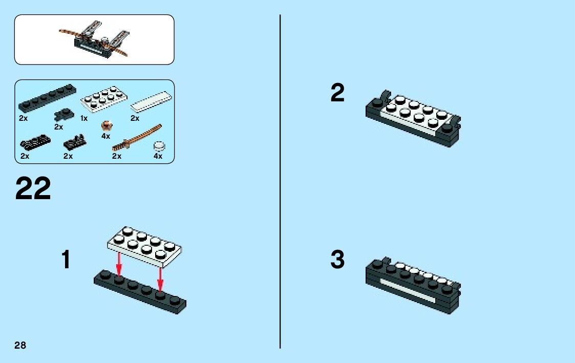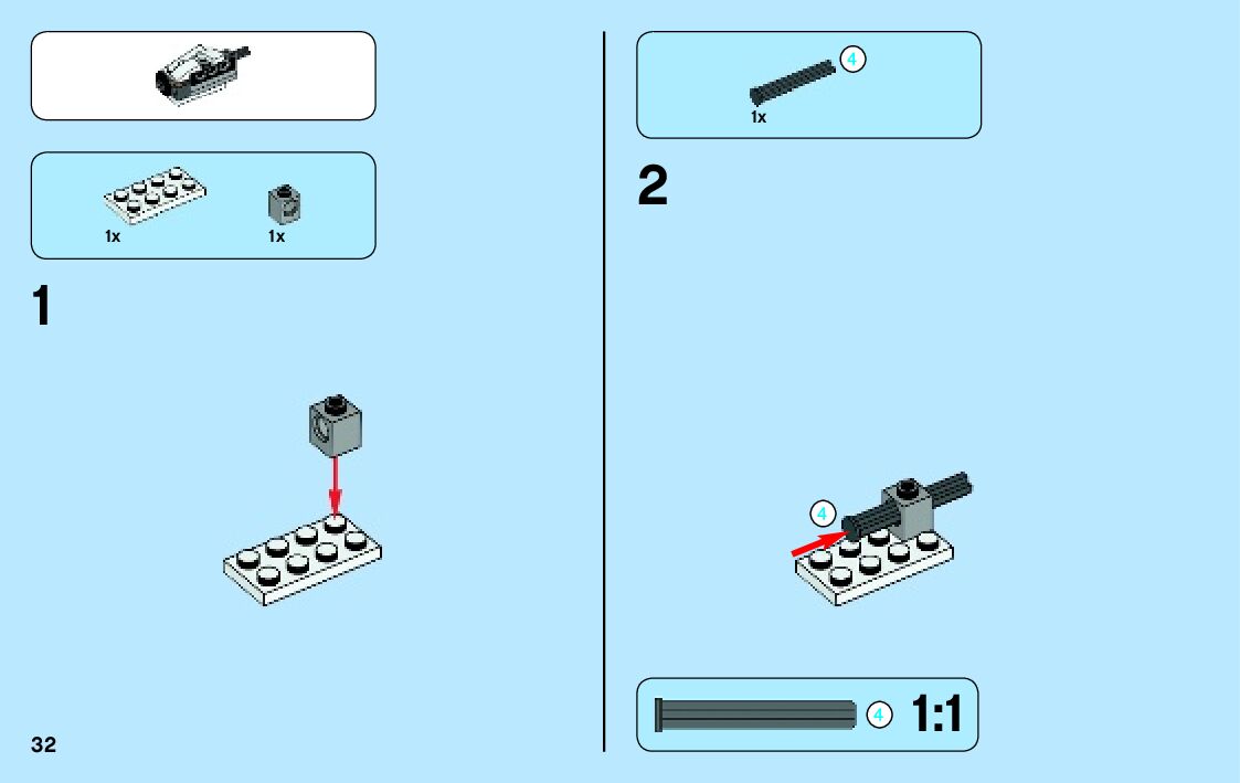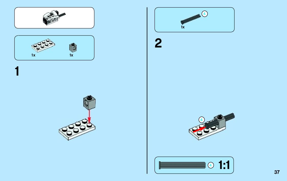 The assembly guide is prepared in a very understandable way for children and adult LEGO enthusiasts. A total of 136 picture galleries are shown, explaining the step-by-step construction stages for 2 different structures.