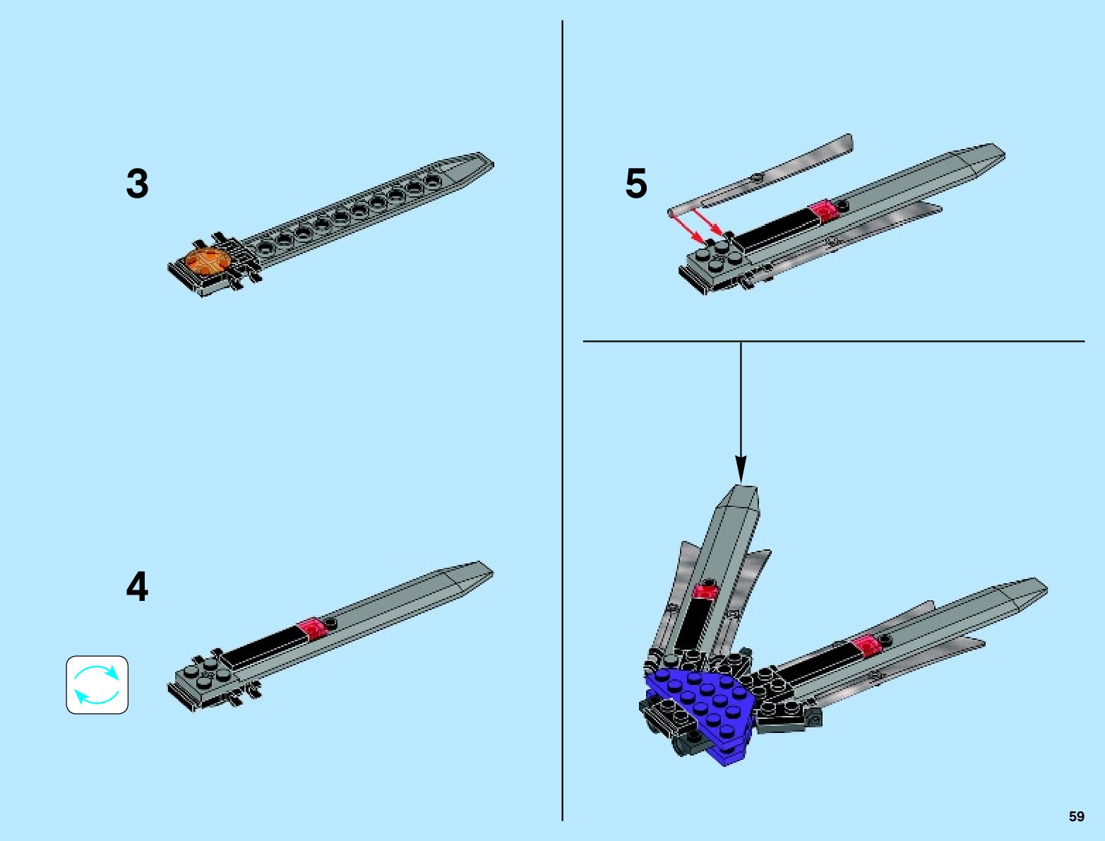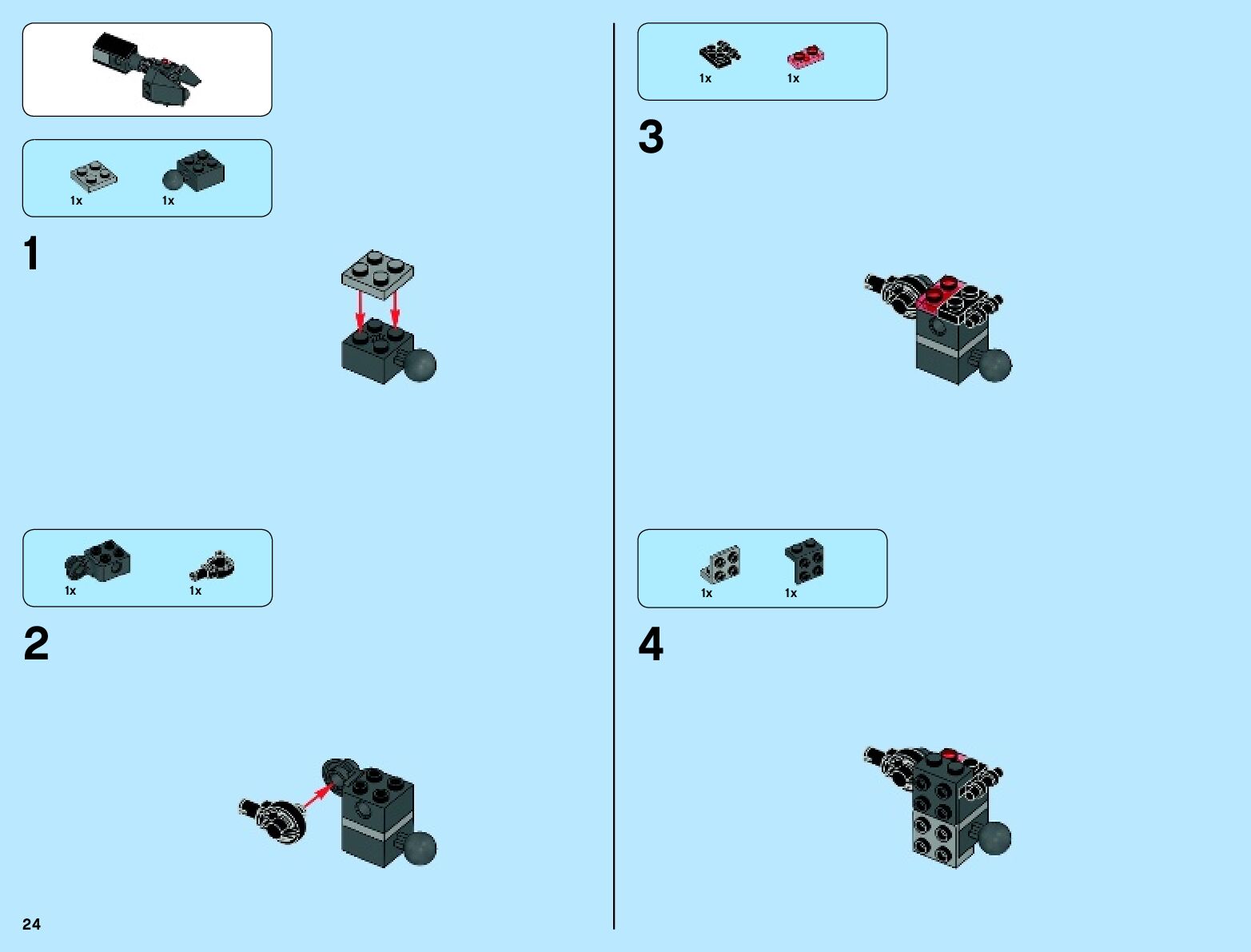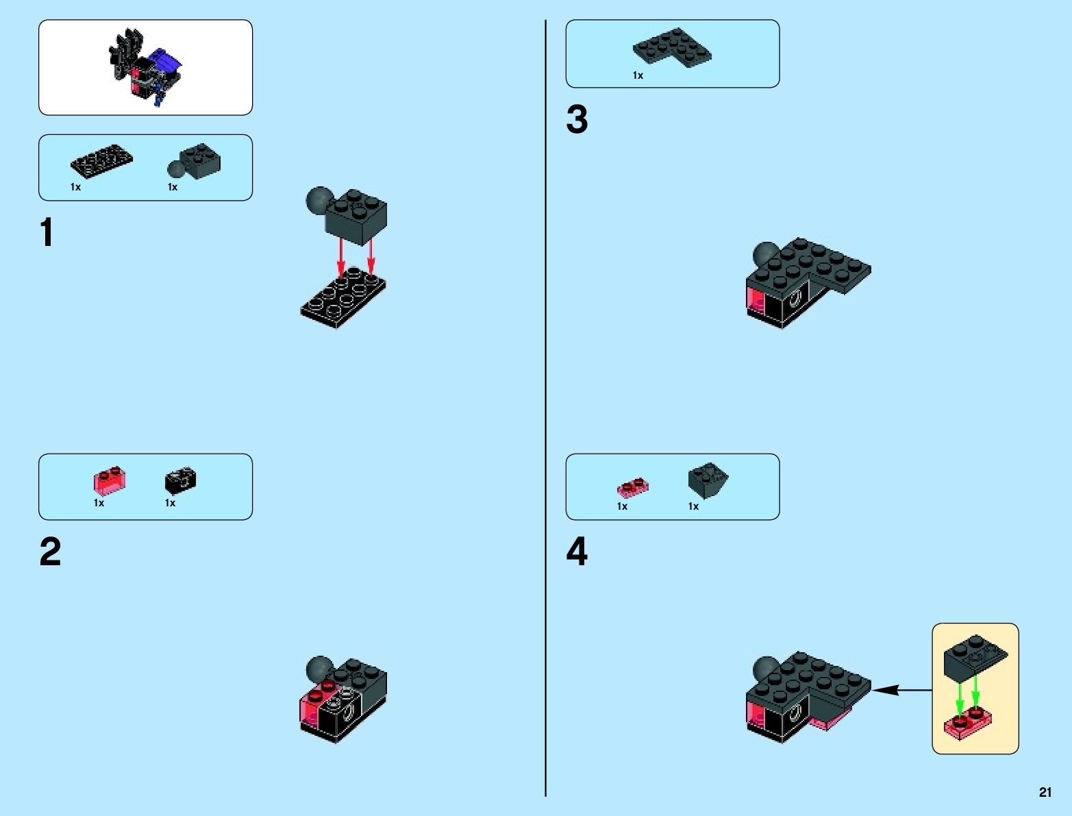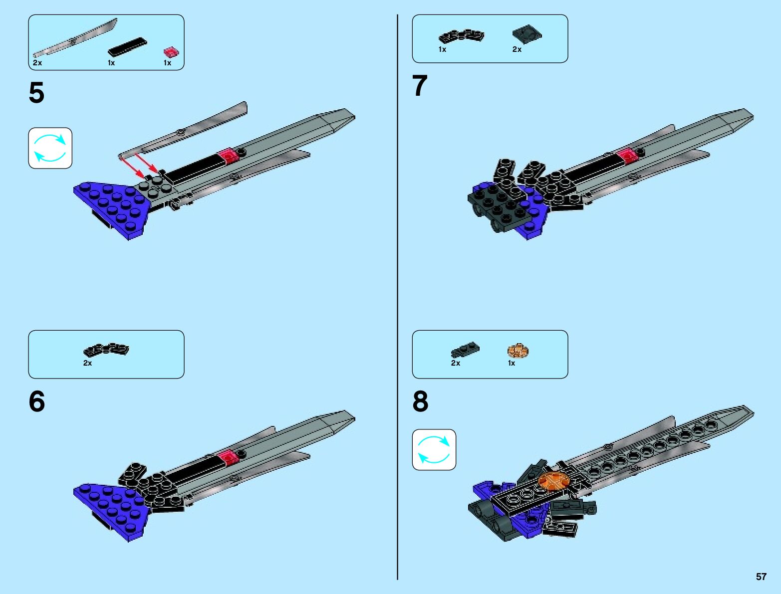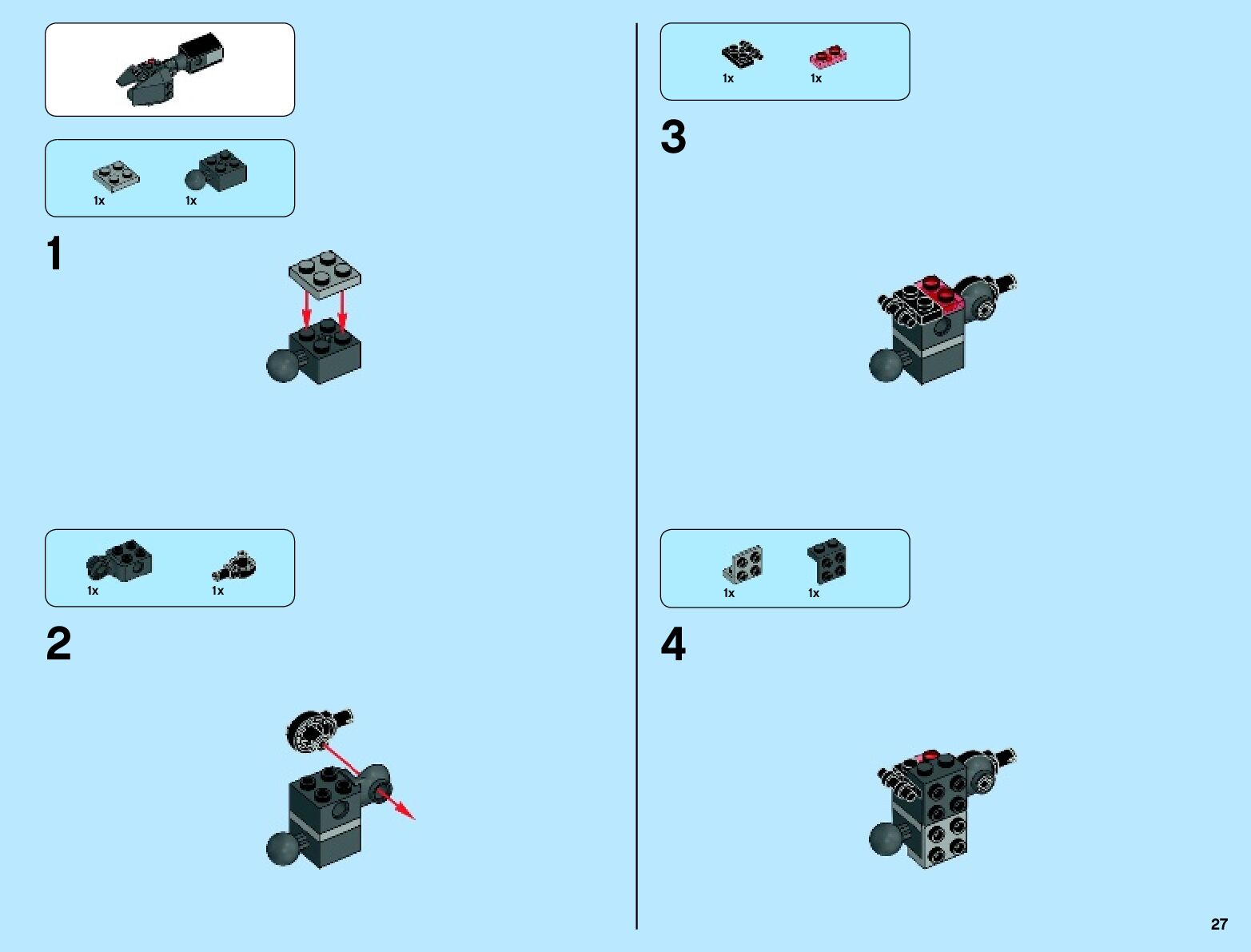 The assembly guide is prepared in a very understandable way for children and adult LEGO enthusiasts. A total of 136 picture galleries are shown, explaining the step-by-step construction stages for 2 different structures.
