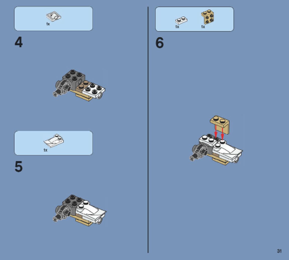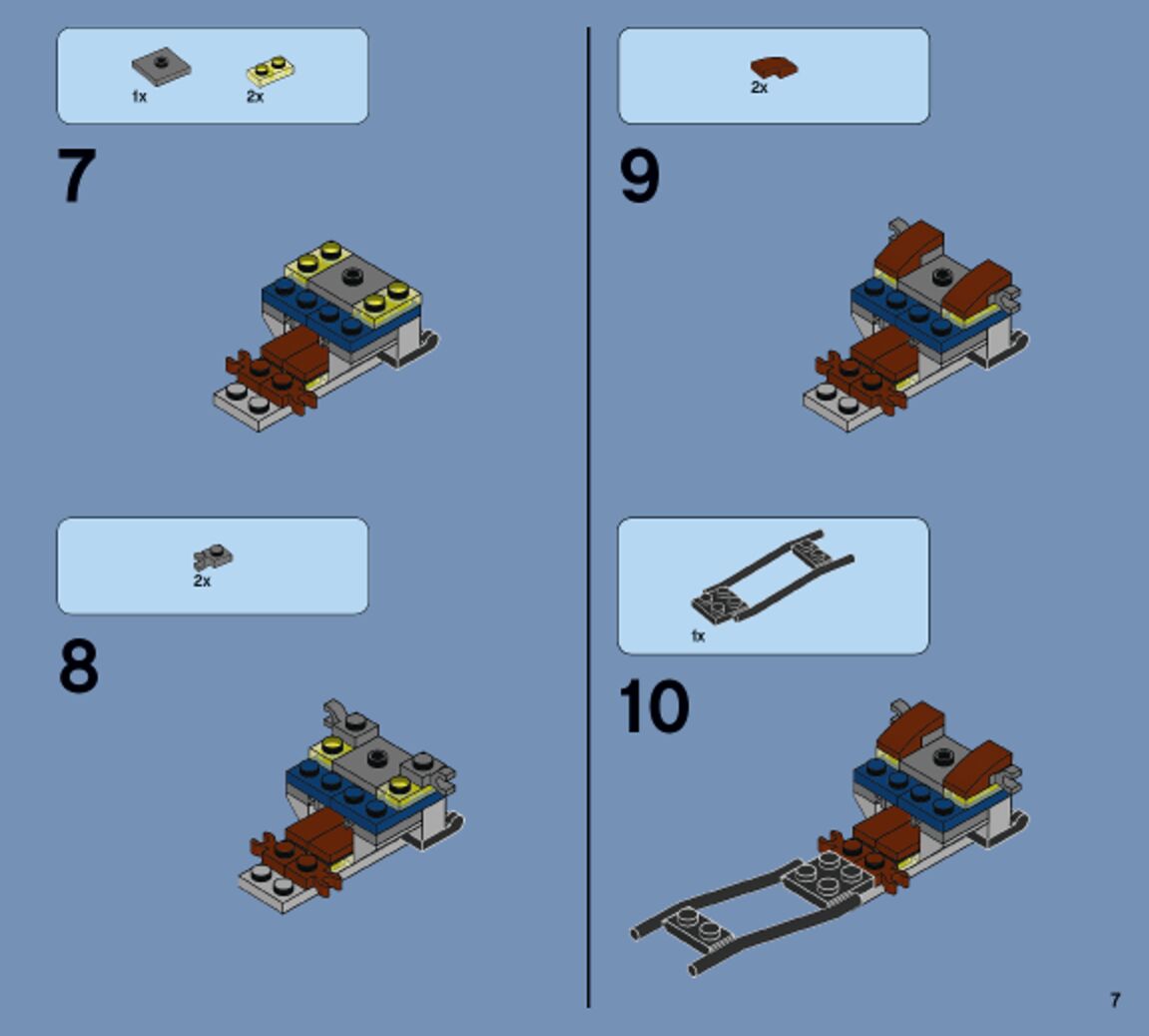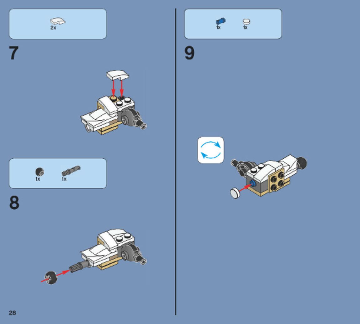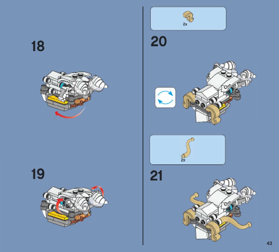 The assembly guide is prepared in a very understandable way for children and adult LEGO enthusiasts. A total of 112 picture galleries are shown, explaining the step-by-step construction stages for 2 different structures.