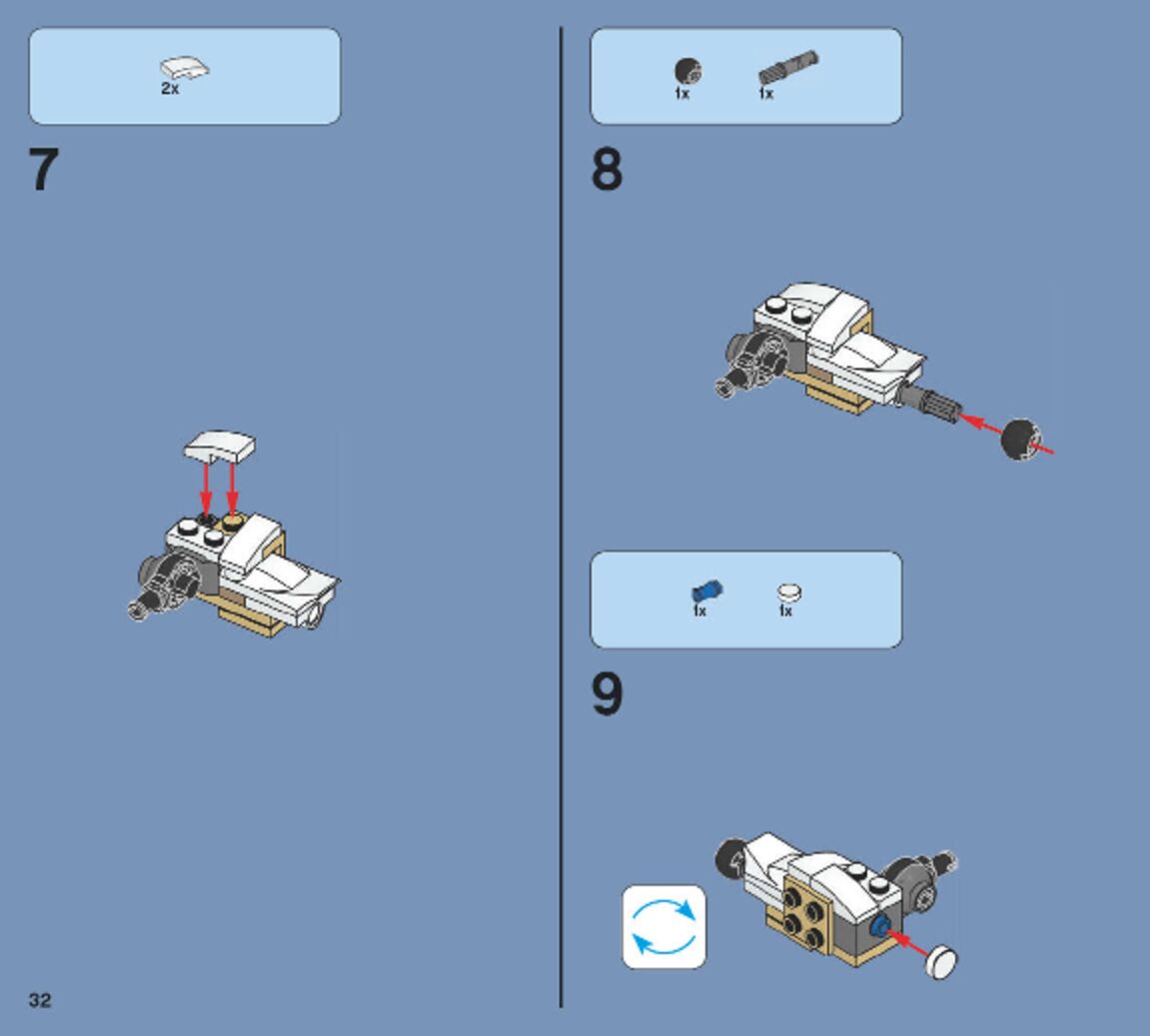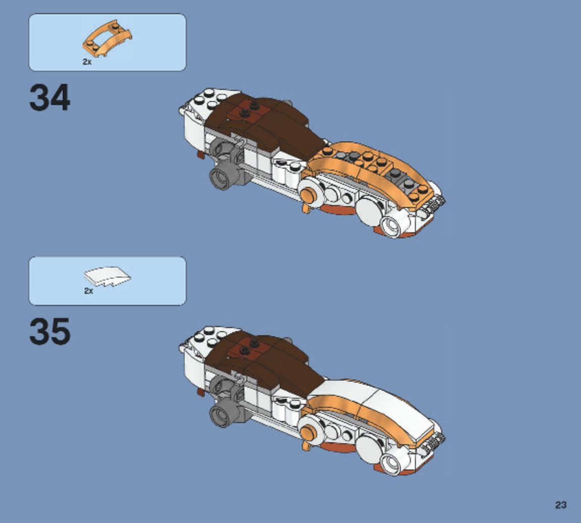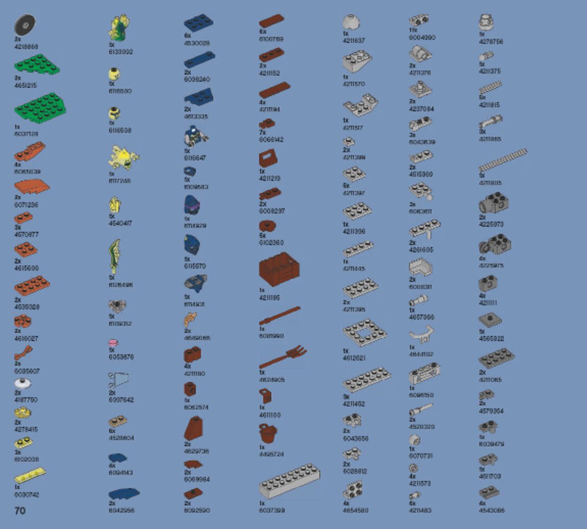 The assembly guide is prepared in a very understandable way for children and adult LEGO enthusiasts. A total of 112 picture galleries are shown, explaining the step-by-step construction stages for 2 different structures.