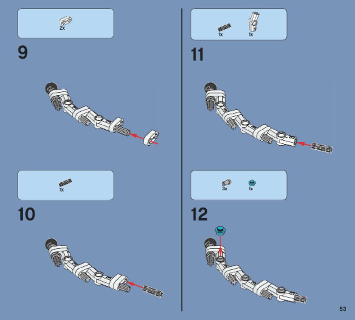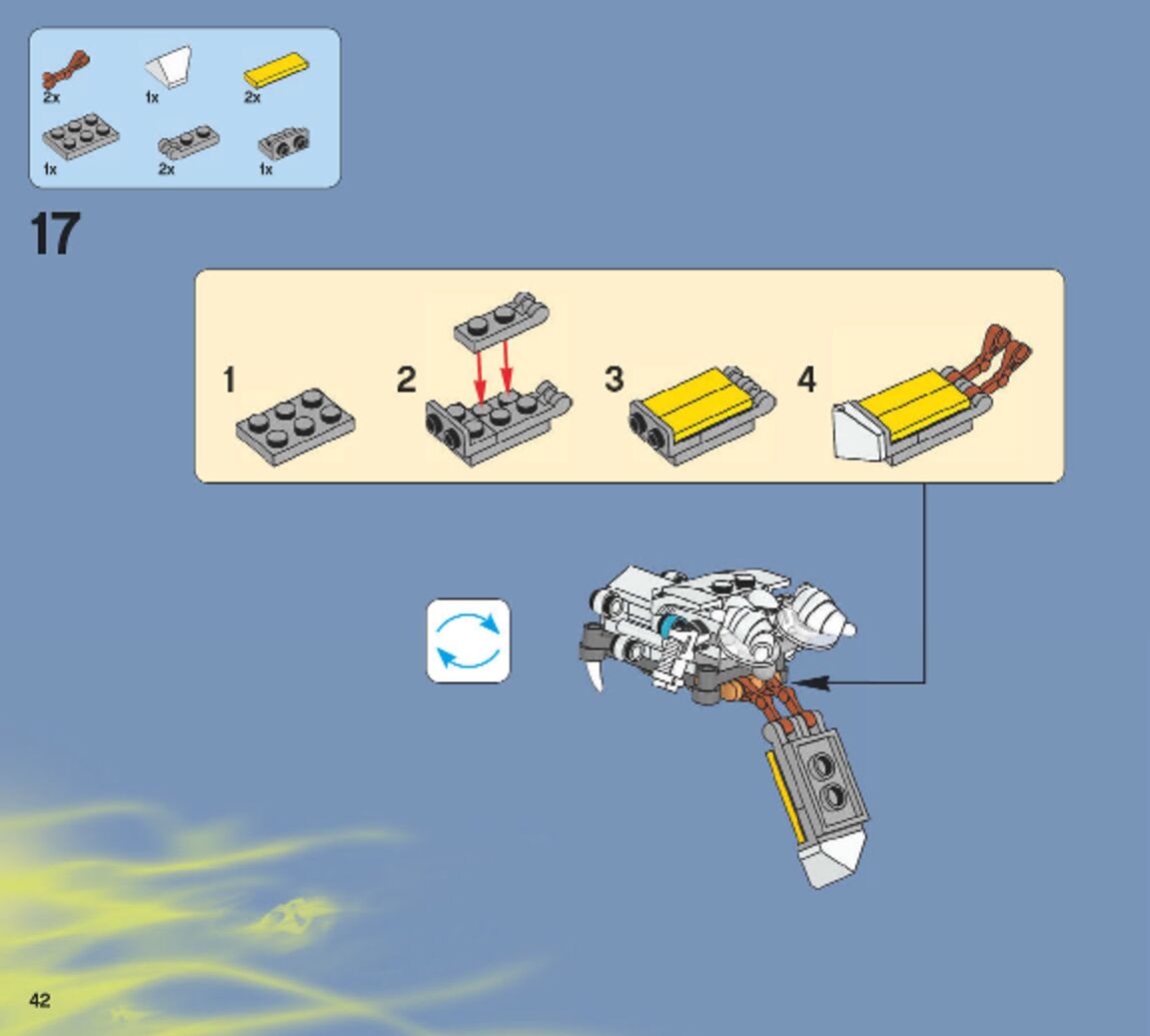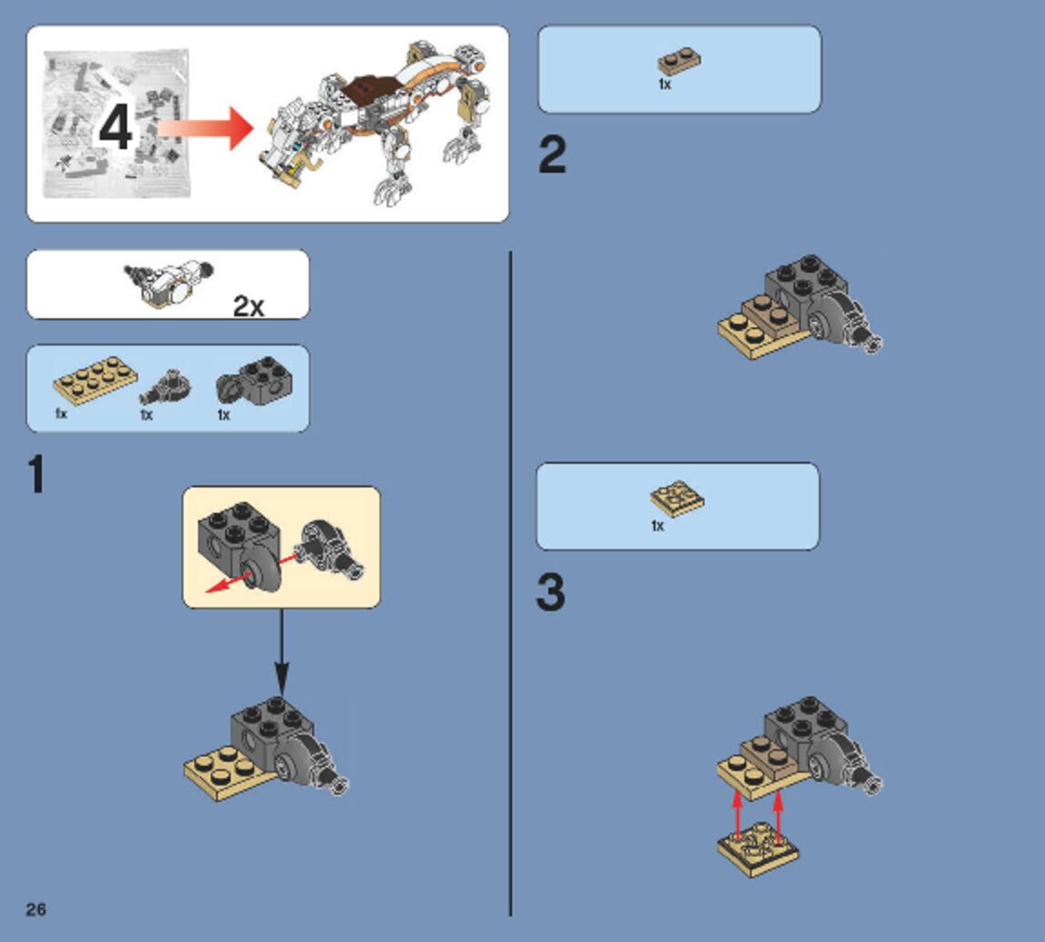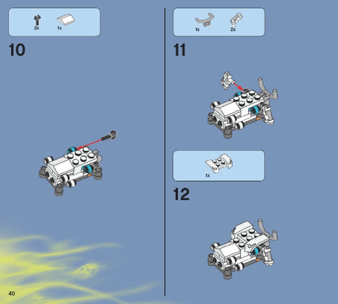 The assembly guide is prepared in a very understandable way for children and adult LEGO enthusiasts. A total of 112 picture galleries are shown, explaining the step-by-step construction stages for 2 different structures.