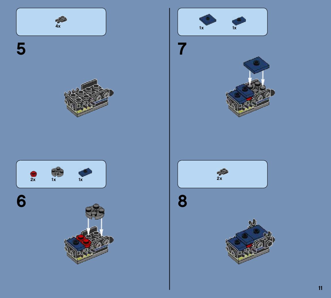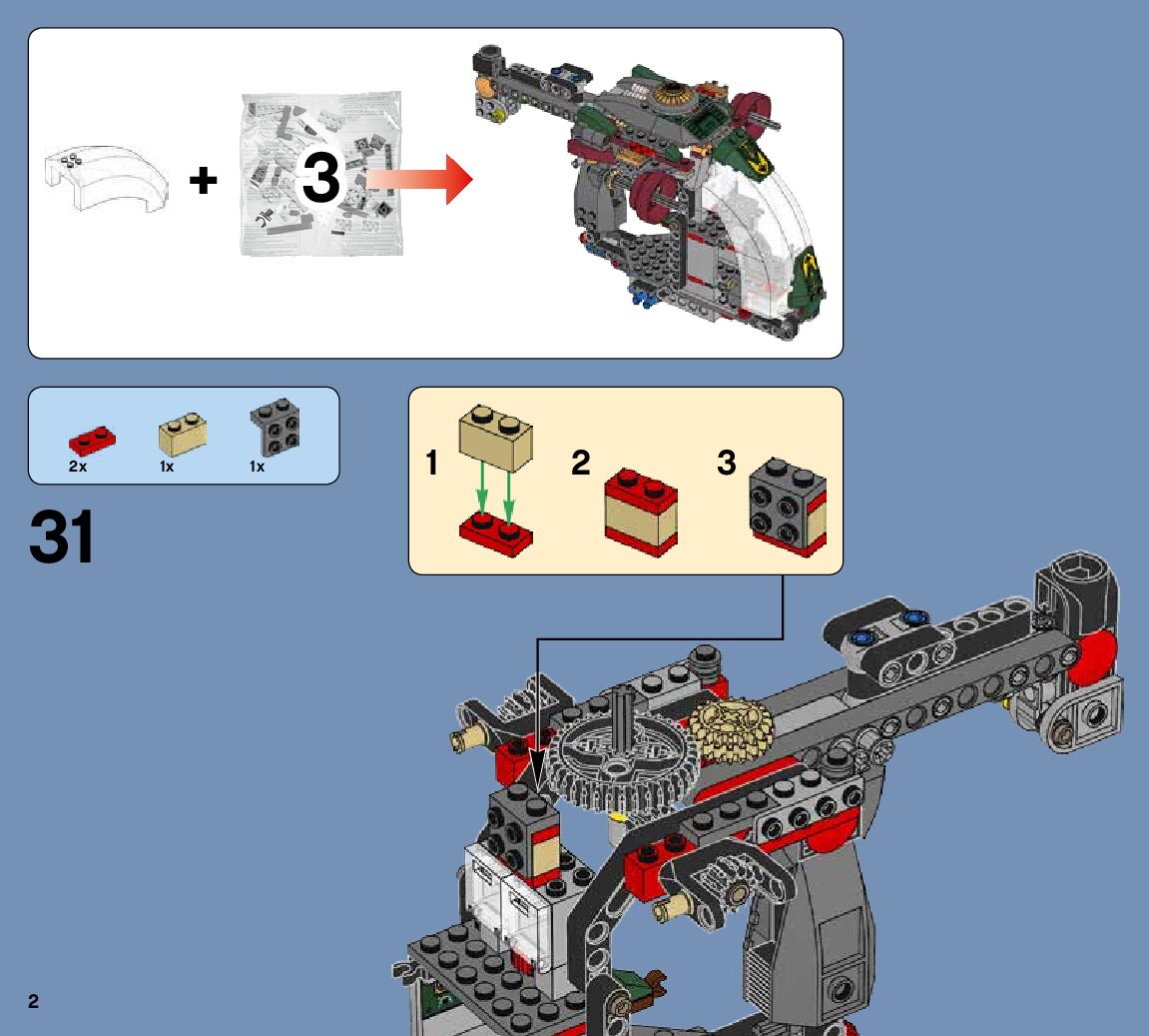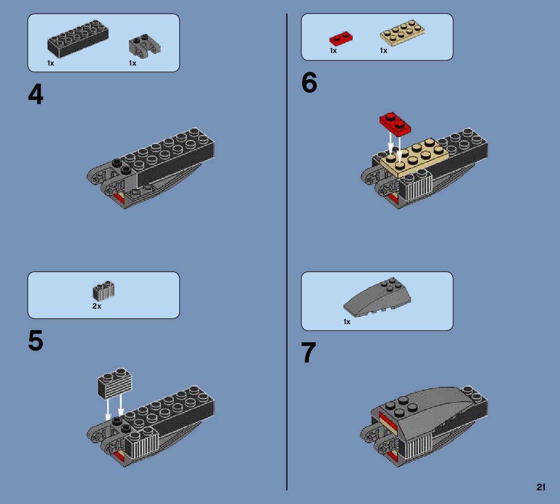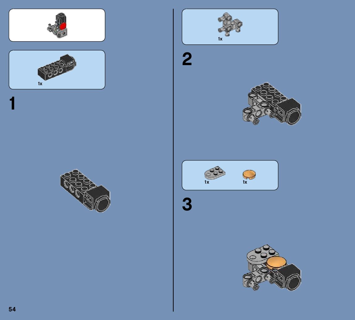 The assembly guide is prepared in a very understandable way for children and adult LEGO enthusiasts. A total of 144 picture galleries are shown, explaining the step-by-step construction stages for 2 different structures.