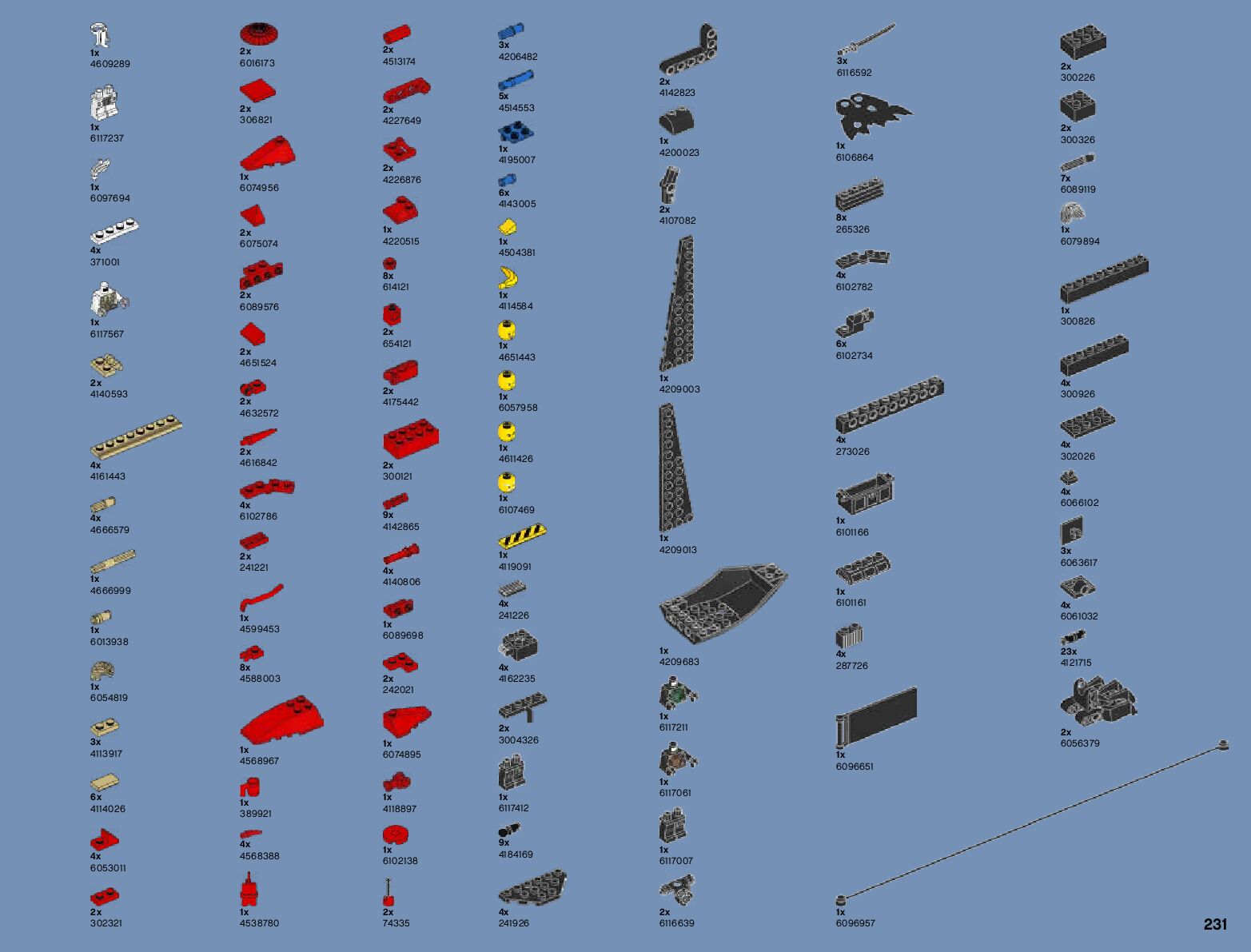 The assembly guide is prepared in a very understandable way for children and adult LEGO enthusiasts. A total of 236 picture galleries are shown, explaining the step-by-step construction stages for 1 different structures.