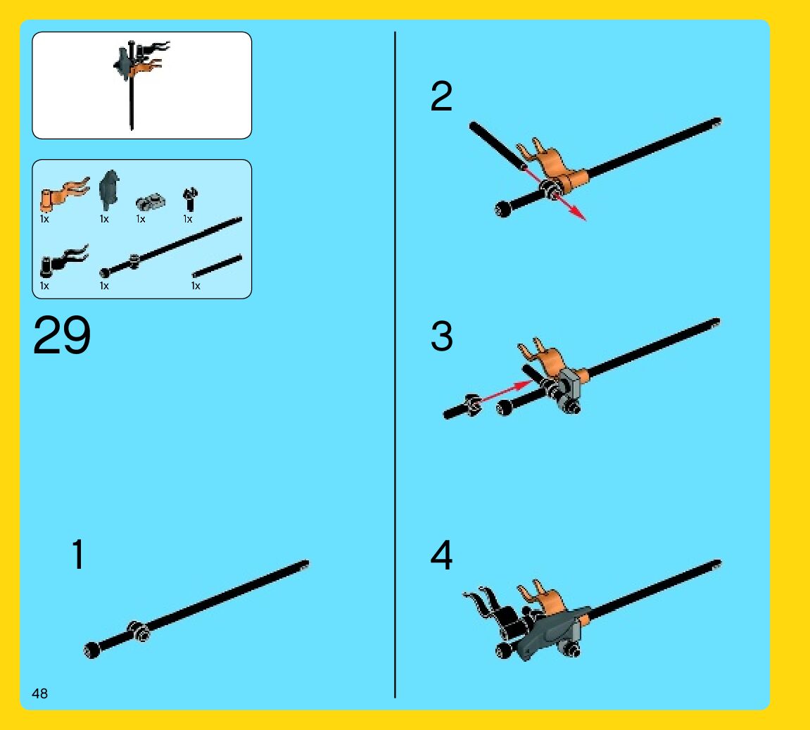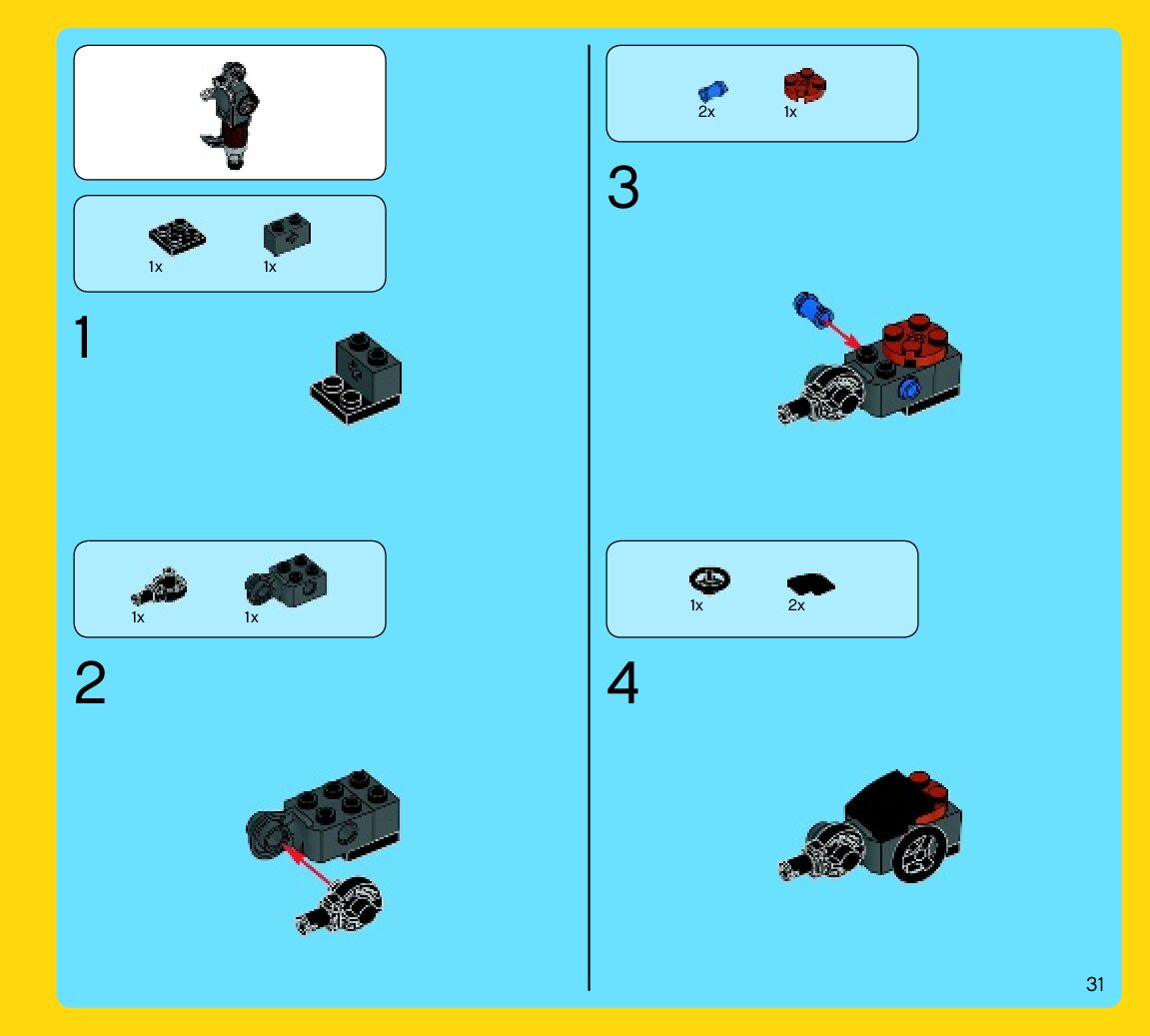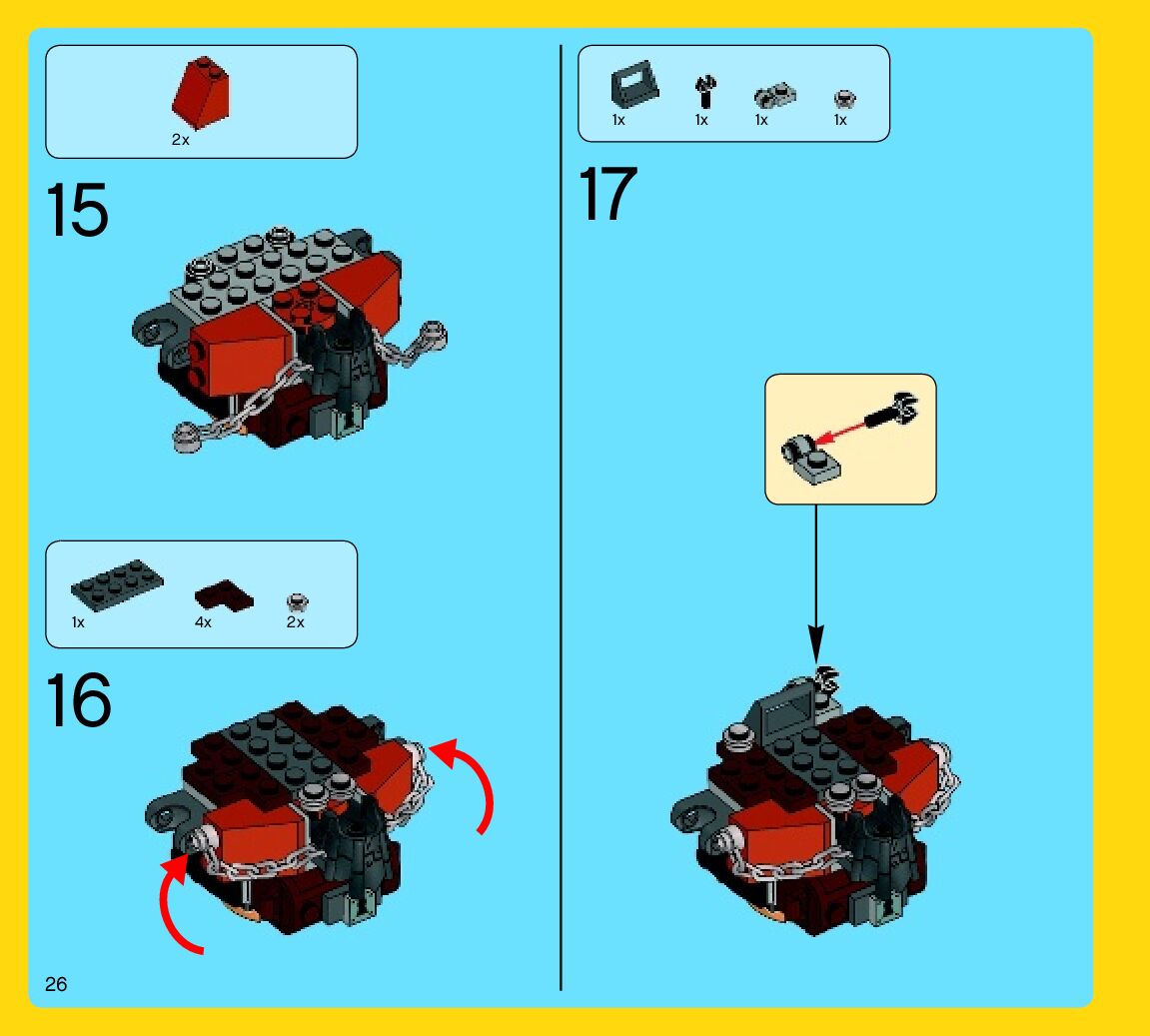 The assembly guide is prepared in a very understandable way for children and adult LEGO enthusiasts. A total of 300 picture galleries are shown, explaining the step-by-step construction stages for 1 different structures.