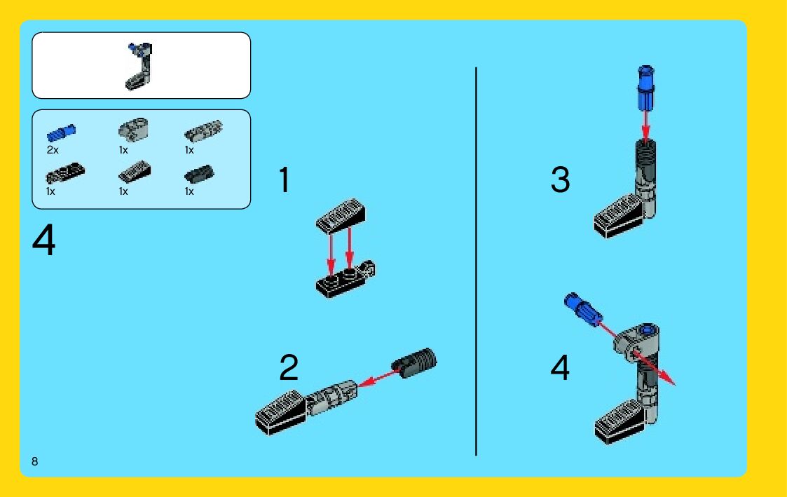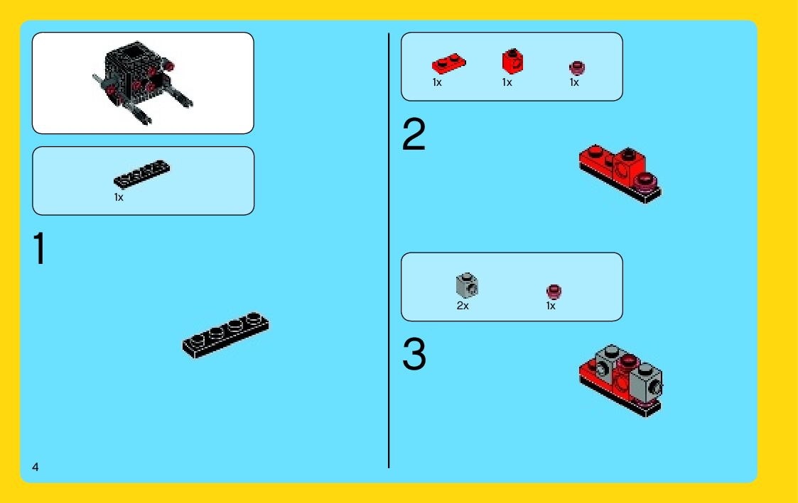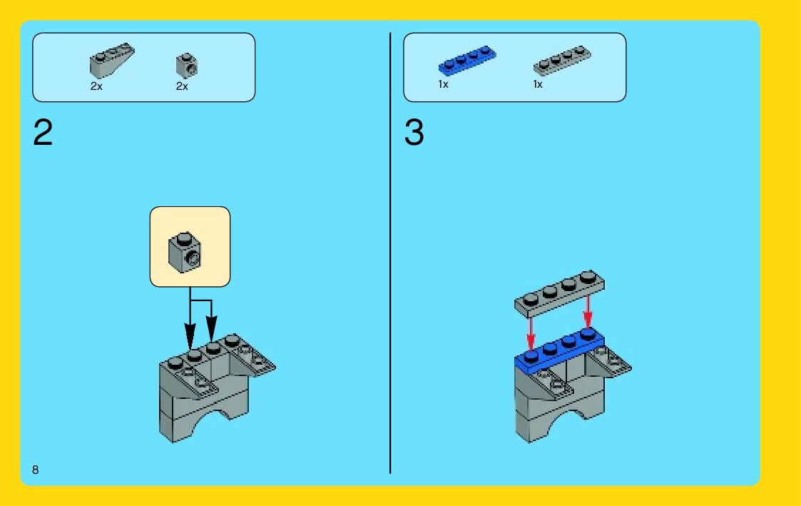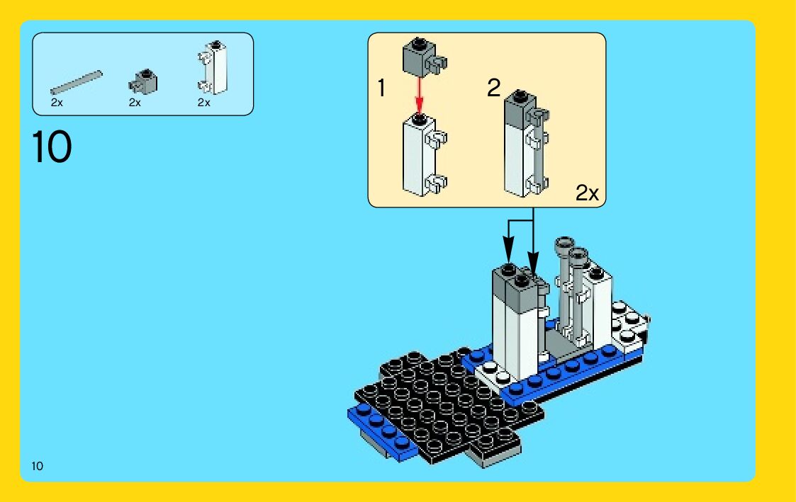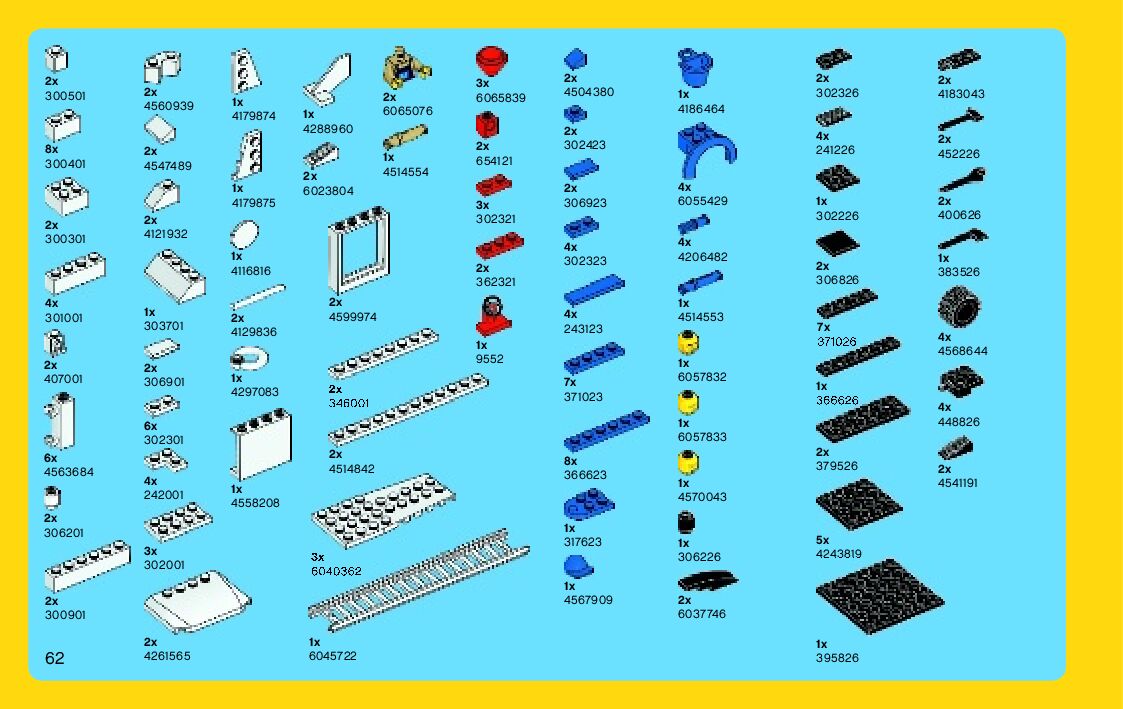 The assembly guide is prepared in a very understandable way for children and adult LEGO enthusiasts. A total of 656 picture galleries are shown, explaining the step-by-step construction stages for 3 different structures.
