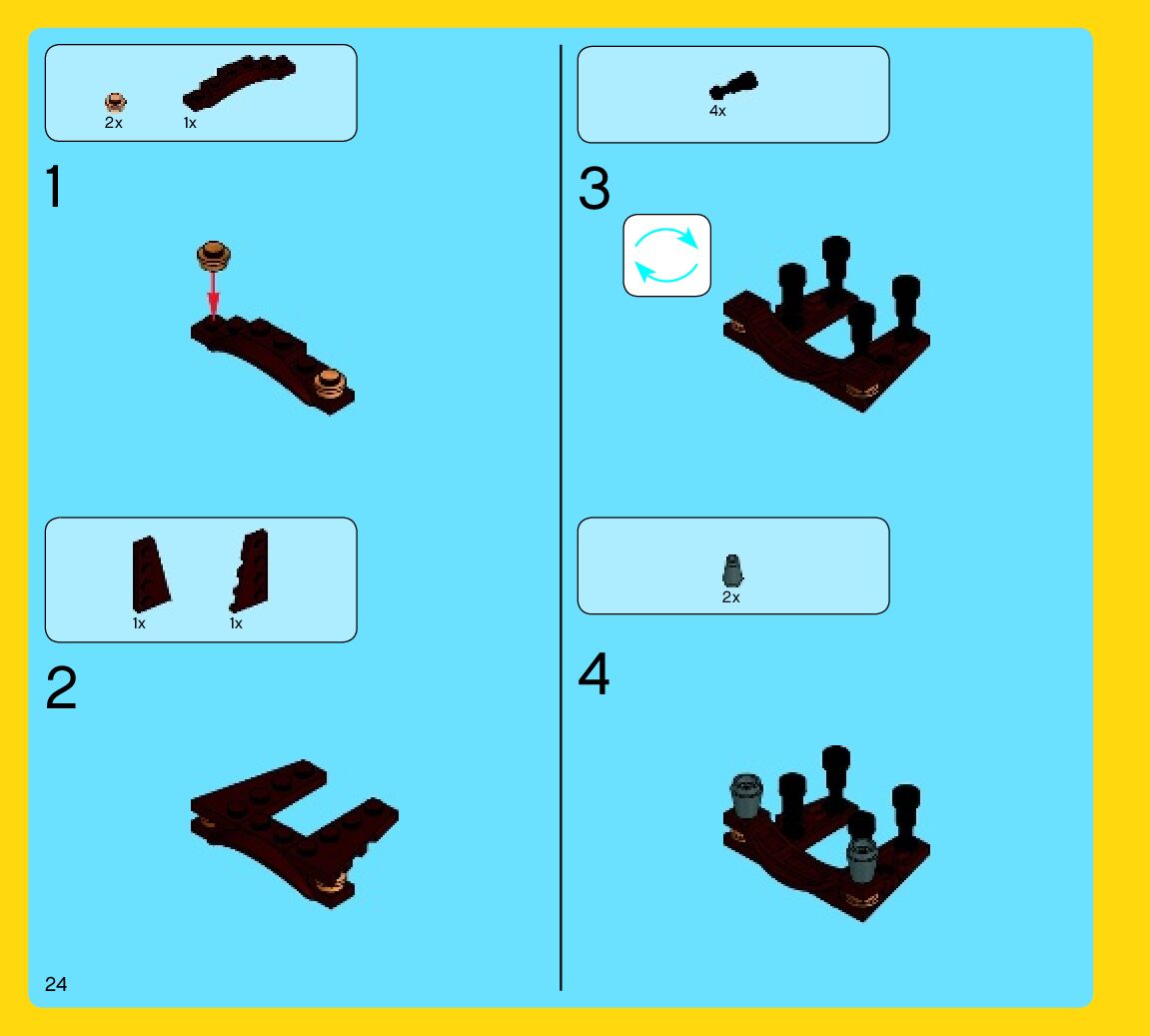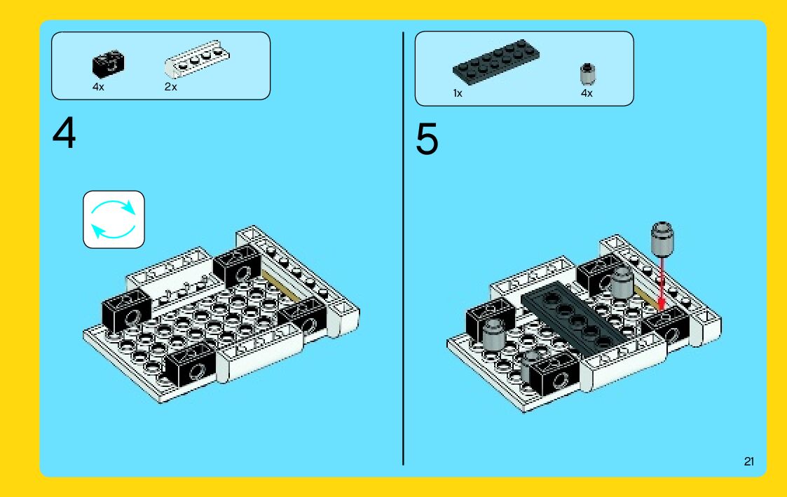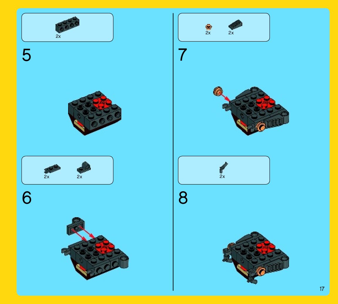 The assembly guide is prepared in a very understandable way for children and adult LEGO enthusiasts. A total of 384 picture galleries are shown, explaining the step-by-step construction stages for 2 different structures.
