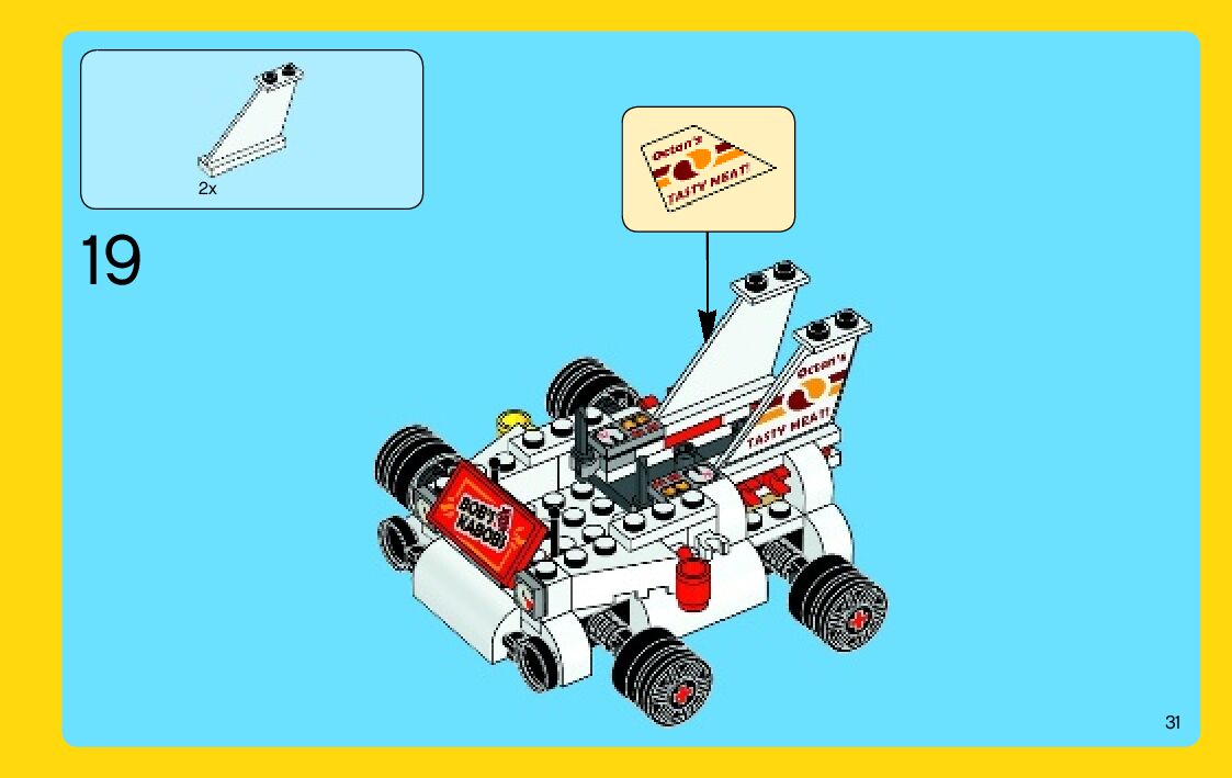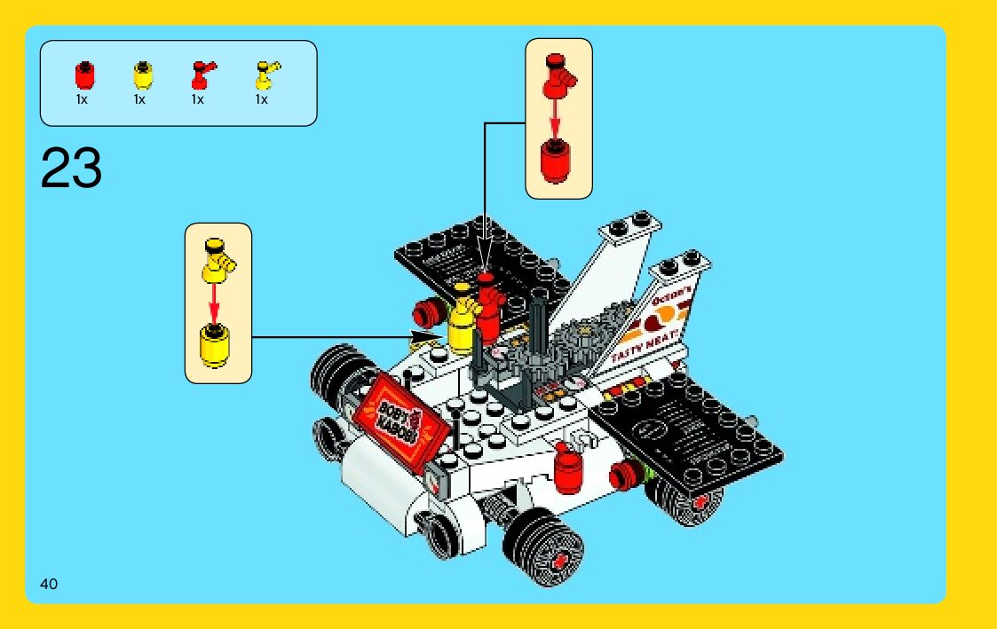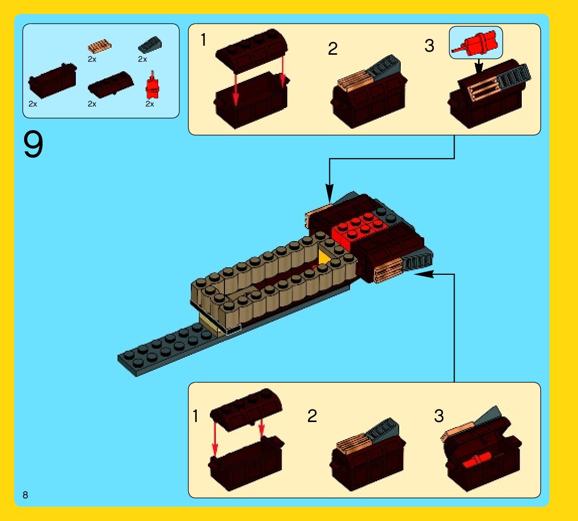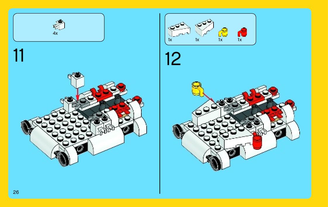 The assembly guide is prepared in a very understandable way for children and adult LEGO enthusiasts. A total of 384 picture galleries are shown, explaining the step-by-step construction stages for 2 different structures.