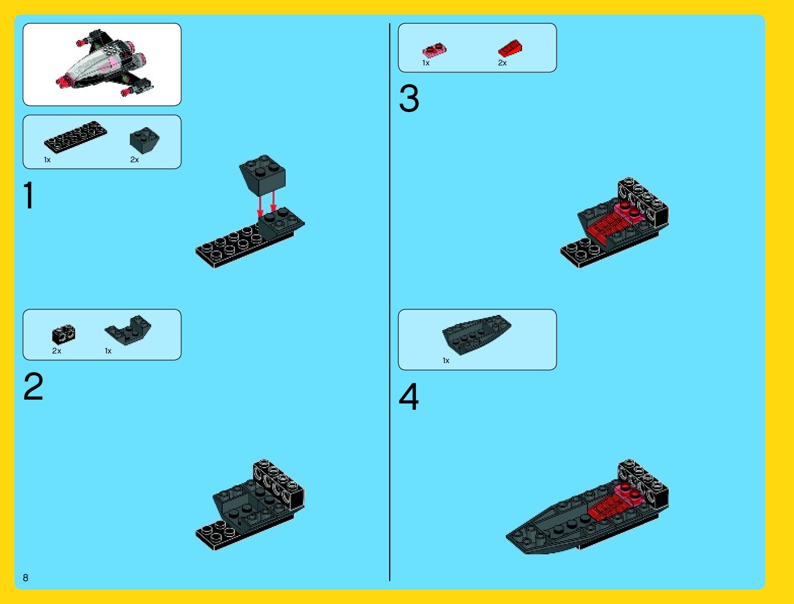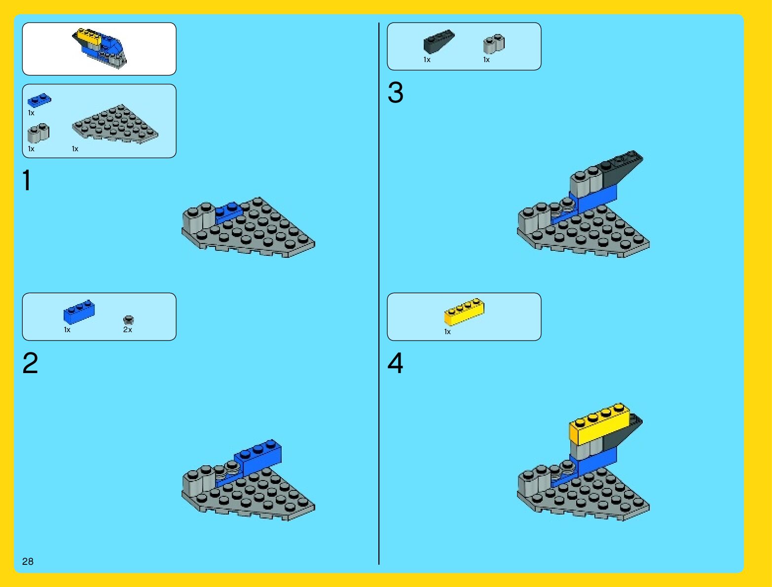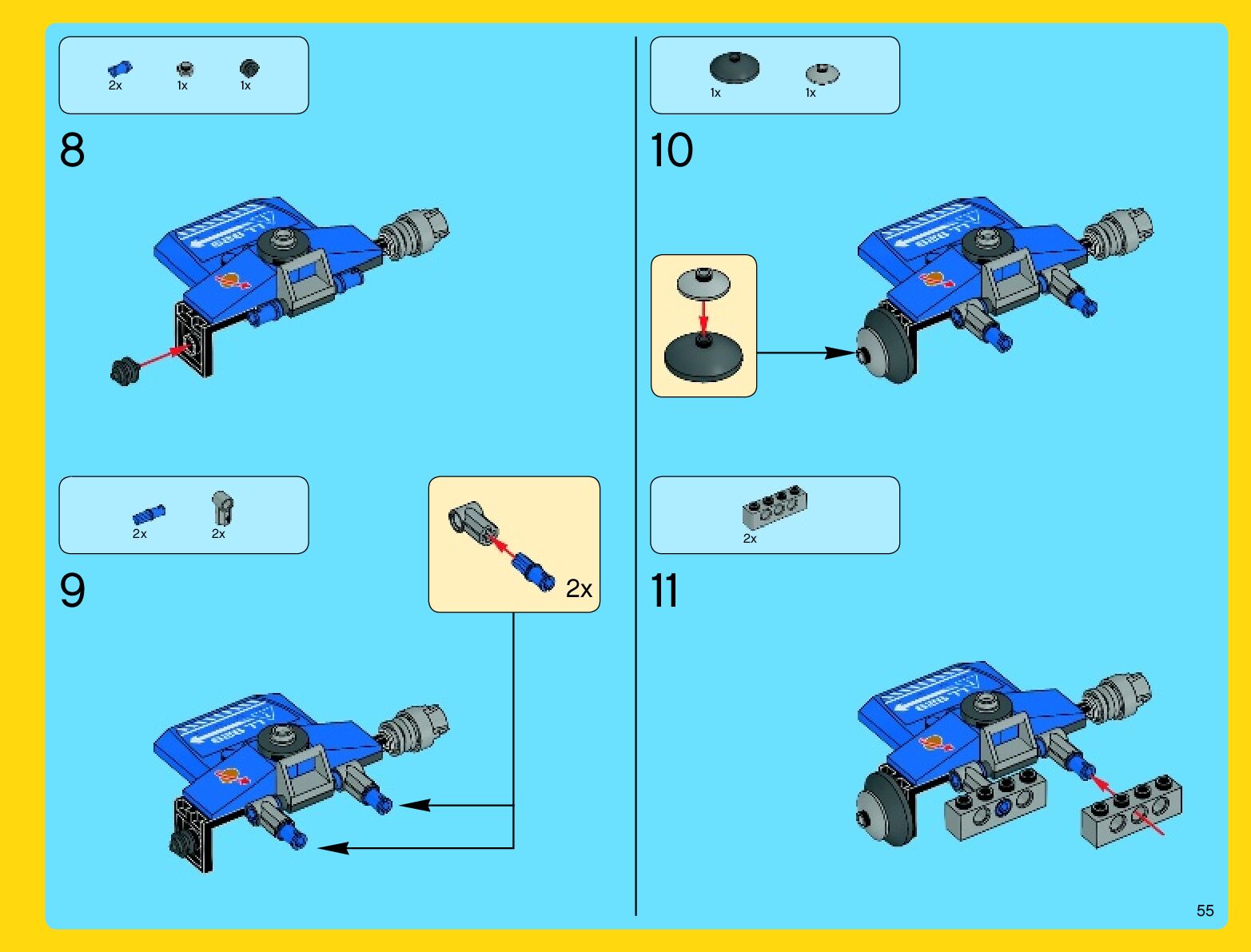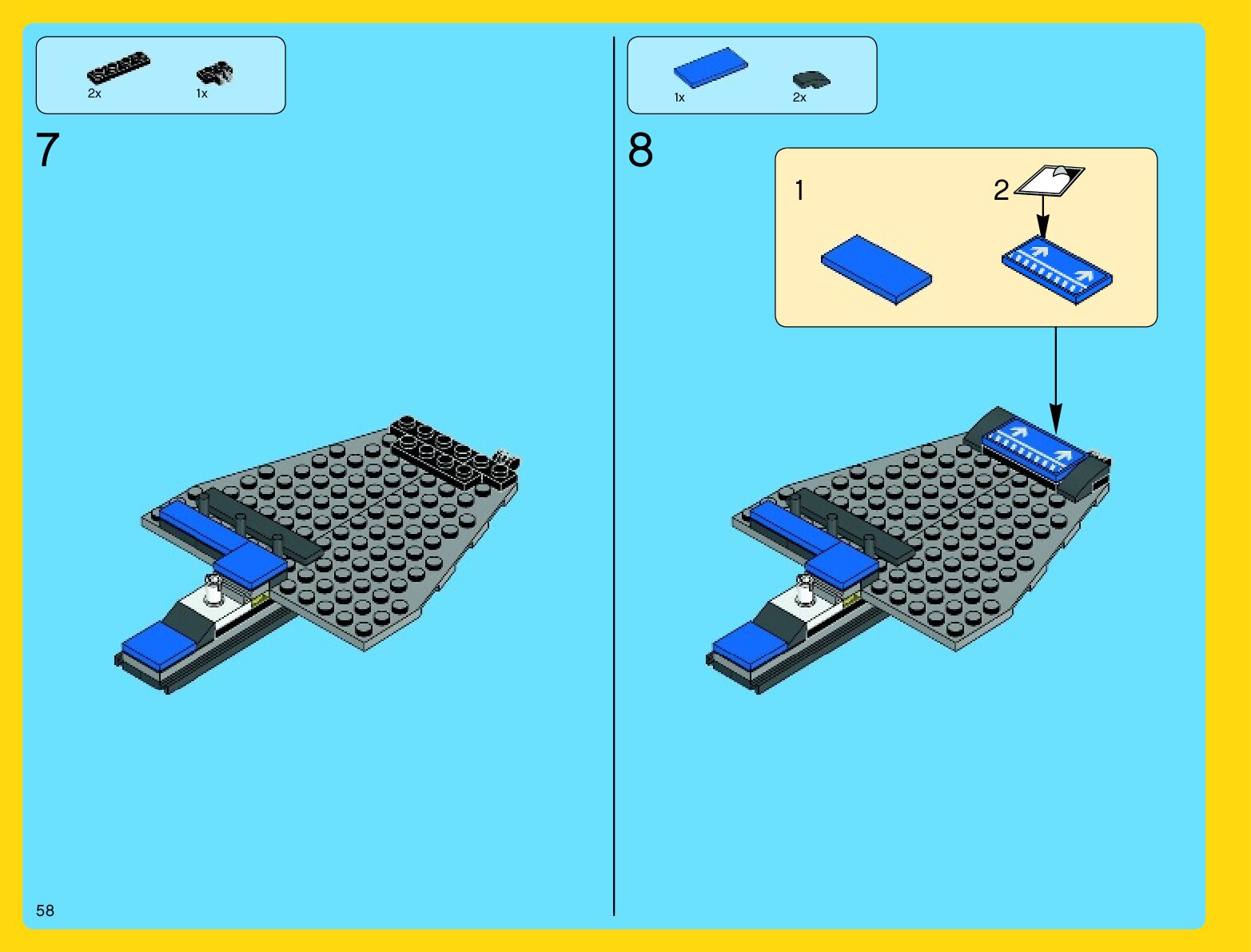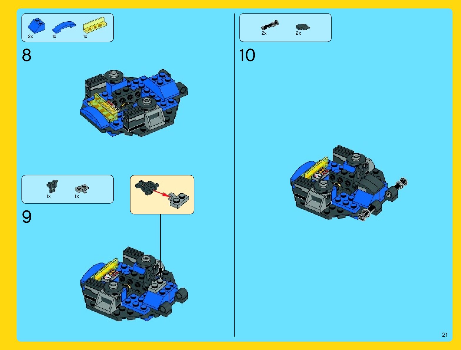 The assembly guide is prepared in a very understandable way for children and adult LEGO enthusiasts. A total of 912 picture galleries are shown, explaining the step-by-step construction stages for 2 different structures.