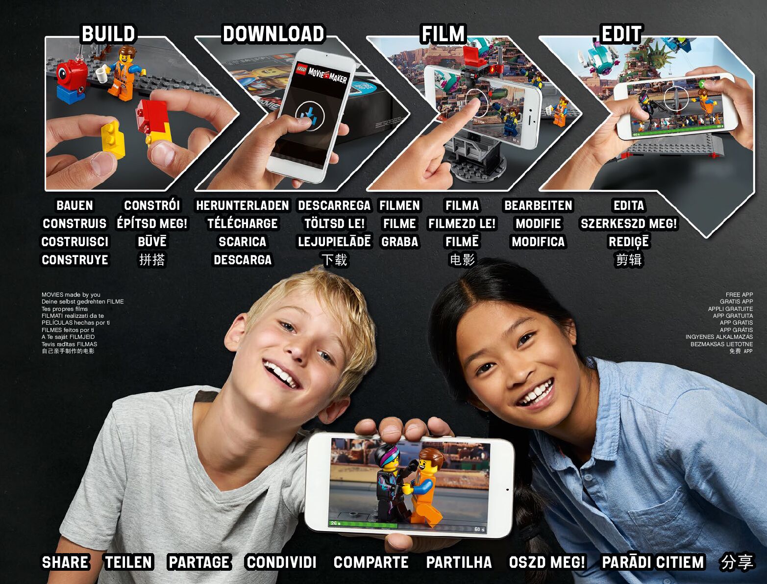On this page you can find the original construction manual for the LEGO 70820 set. With the assembly manual you can easily learn how to build the 70820 LEGO® Movie Maker step by step. The set was released in 2019.