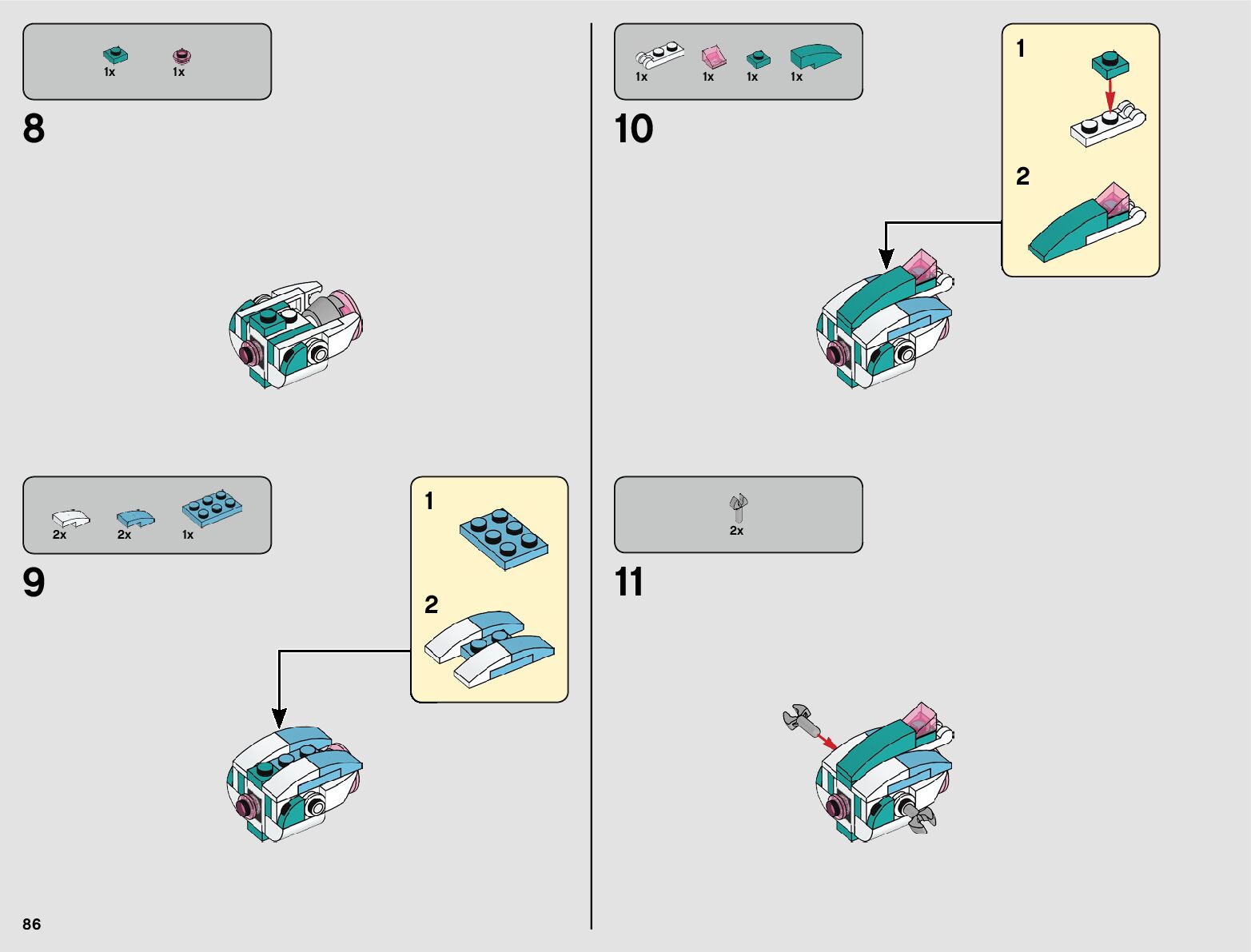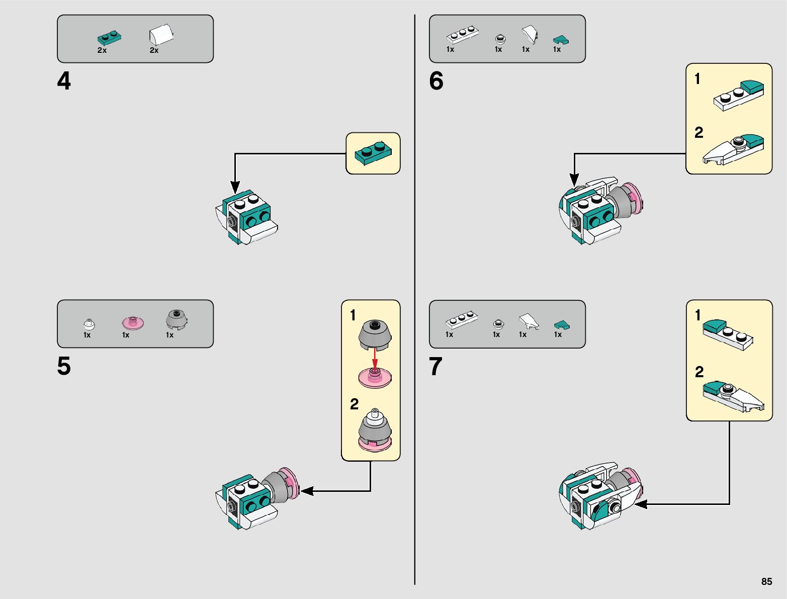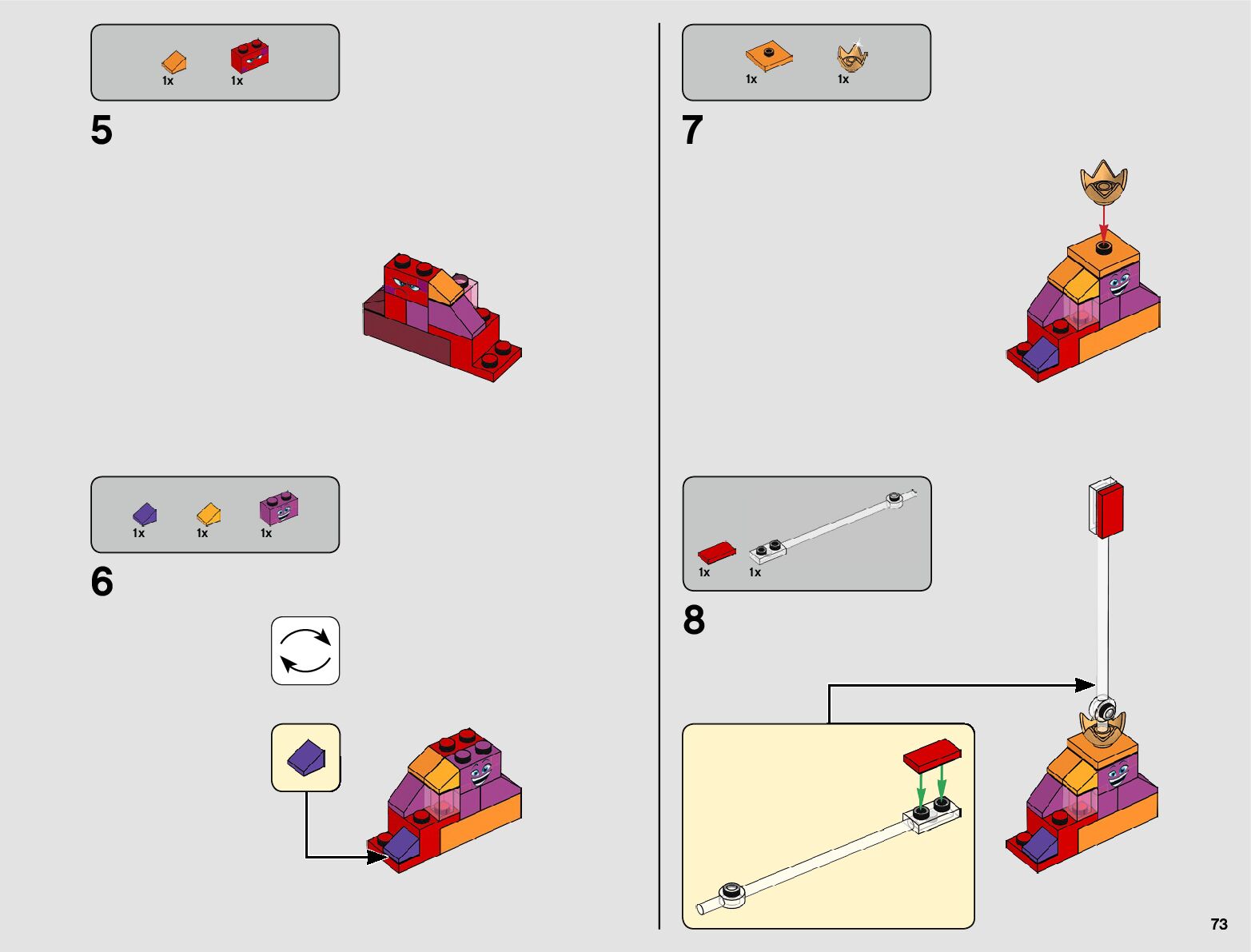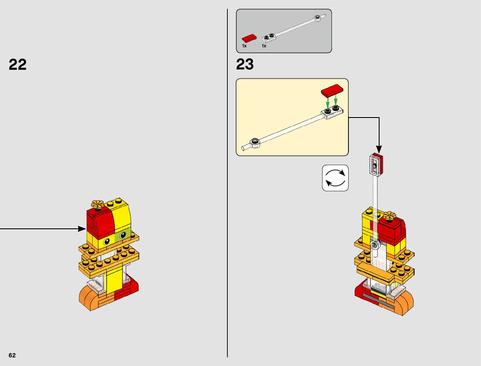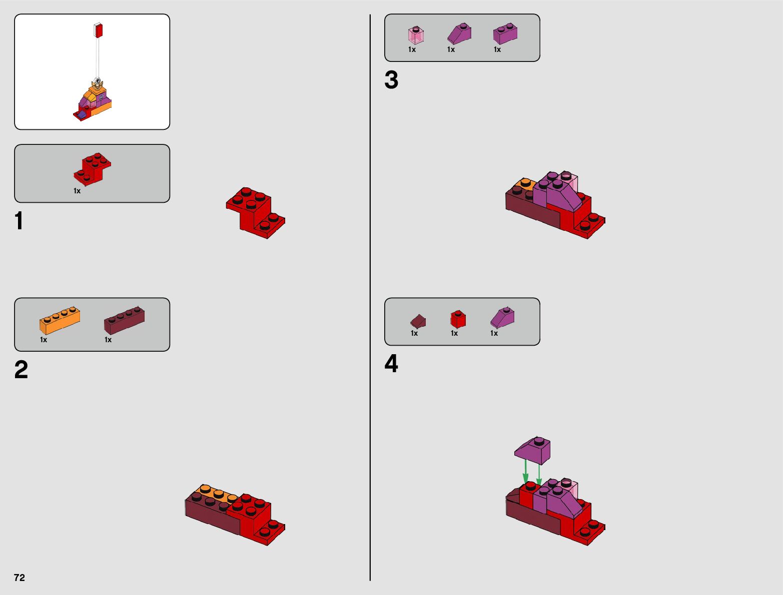 The assembly guide is prepared in a very understandable way for children and adult LEGO enthusiasts. A total of 96 picture galleries are shown, explaining the step-by-step construction stages for 1 different structures.