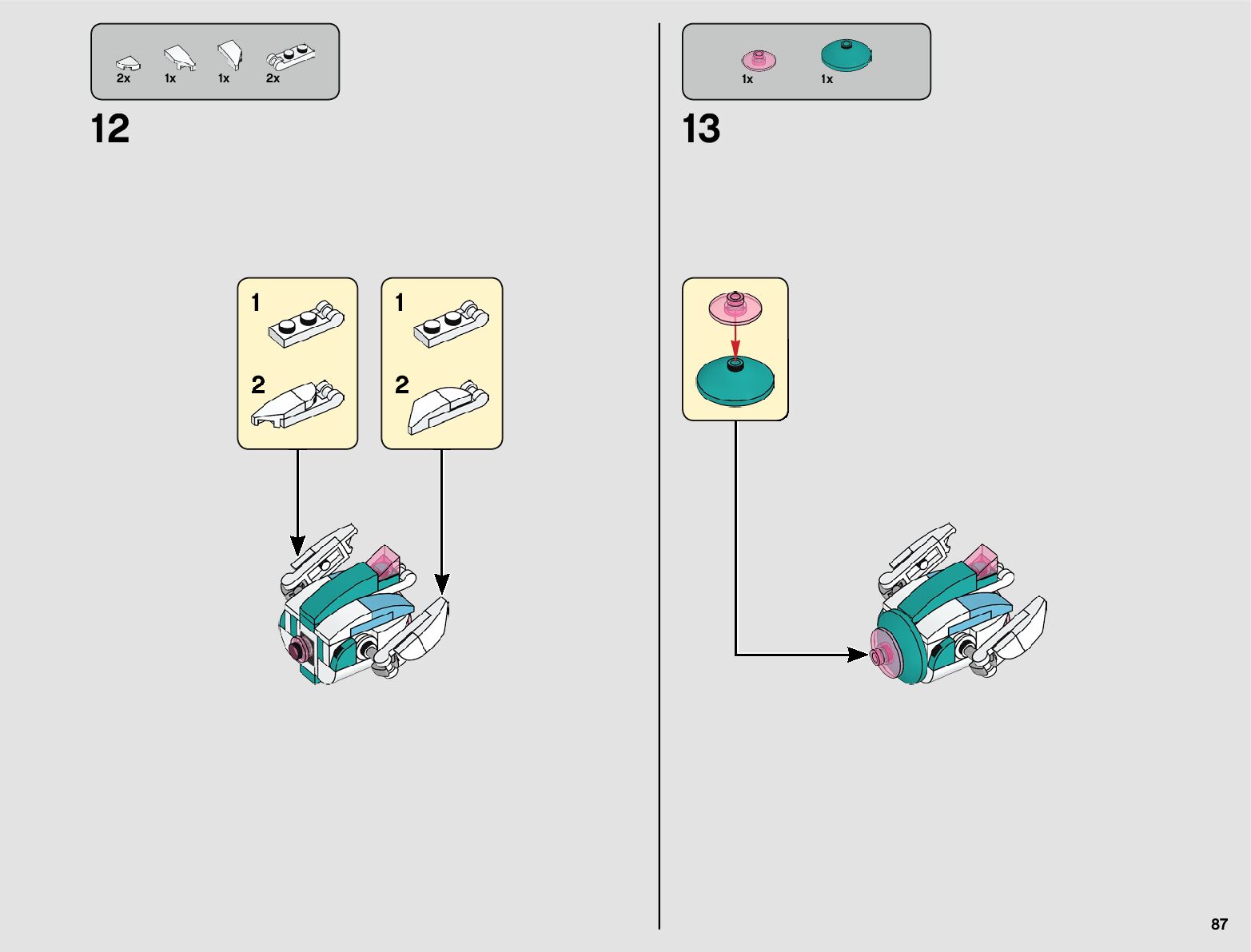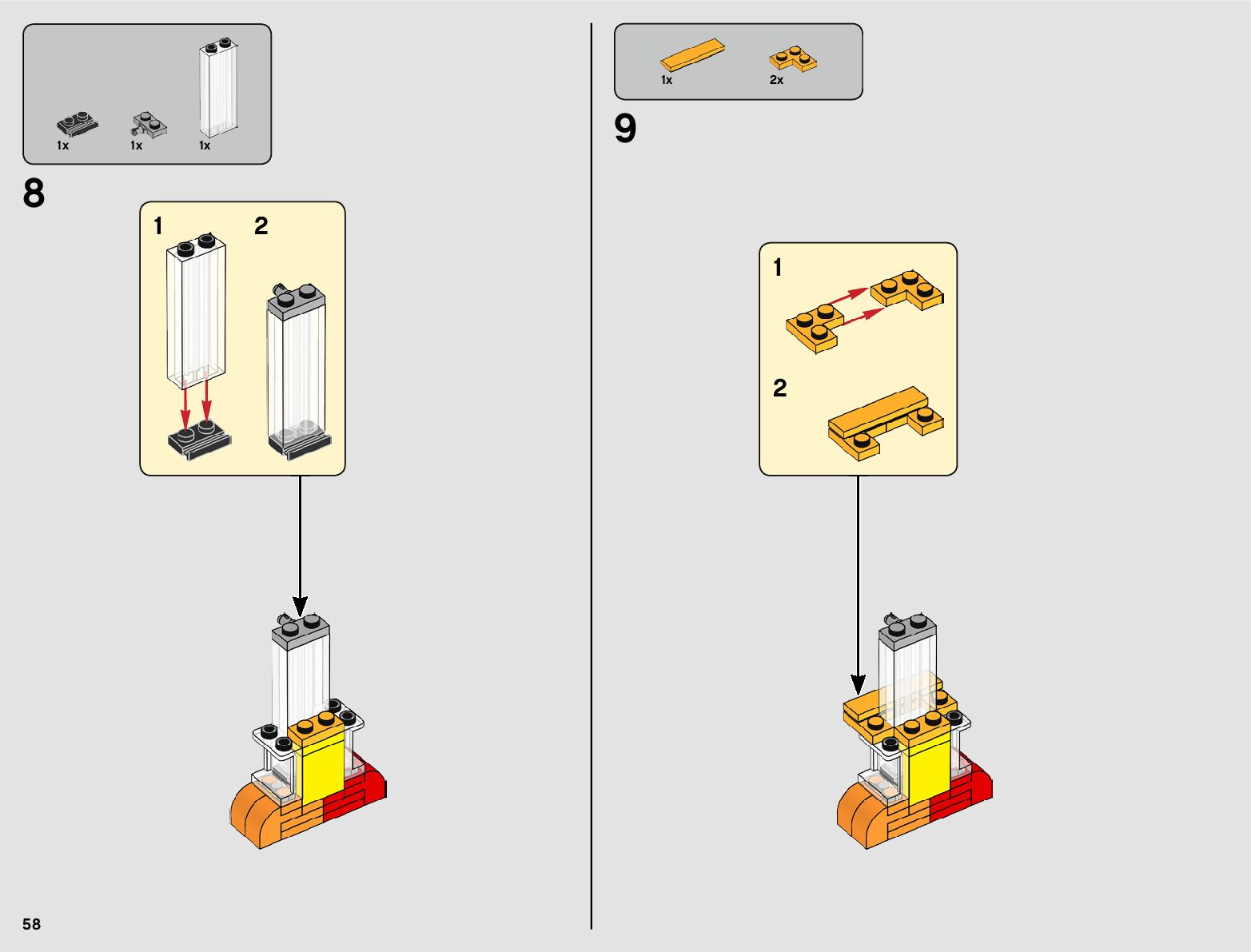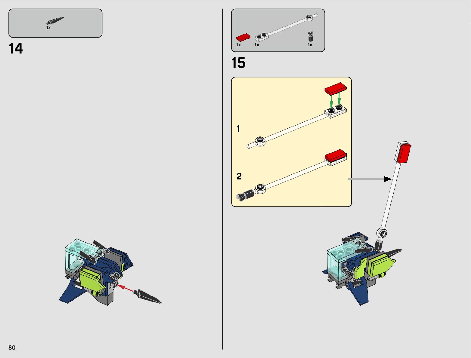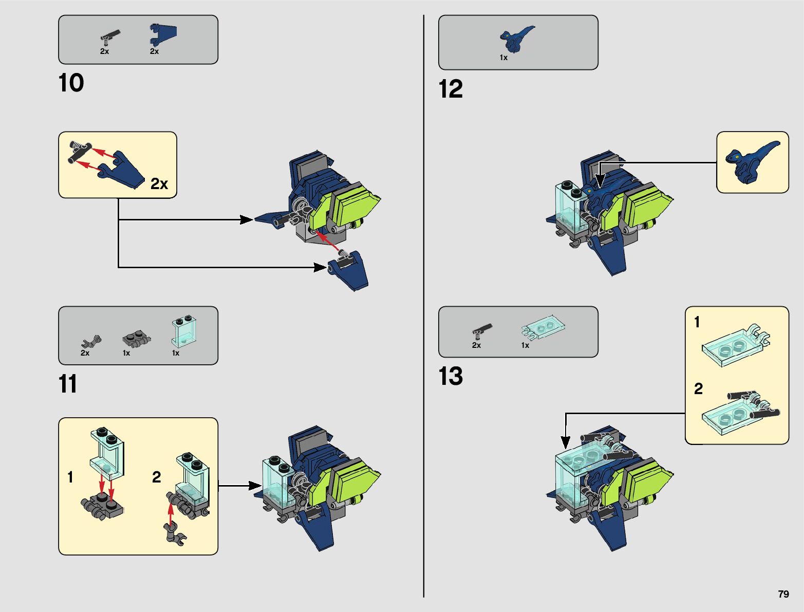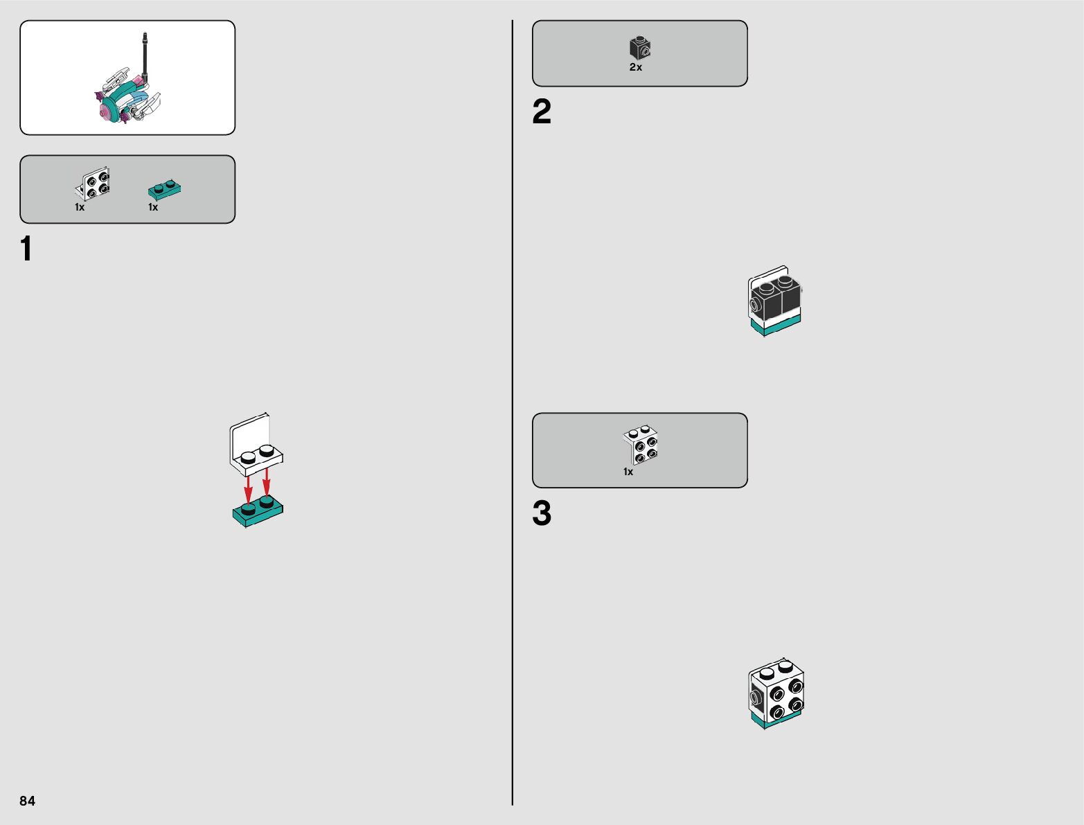 The assembly guide is prepared in a very understandable way for children and adult LEGO enthusiasts. A total of 96 picture galleries are shown, explaining the step-by-step construction stages for 1 different structures.