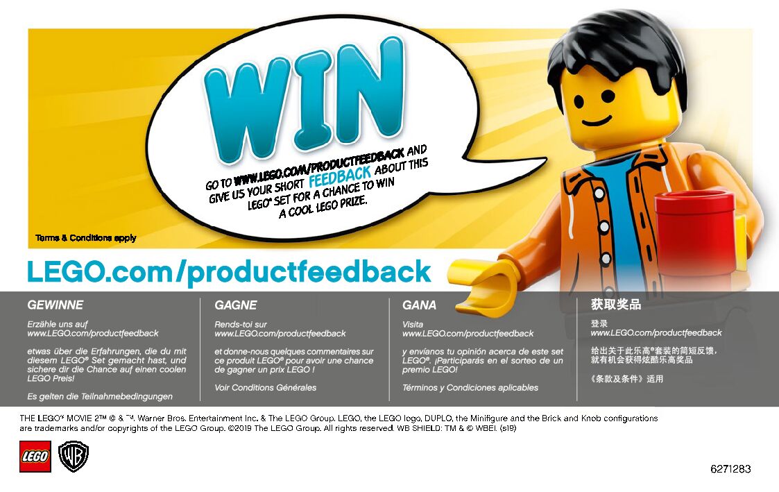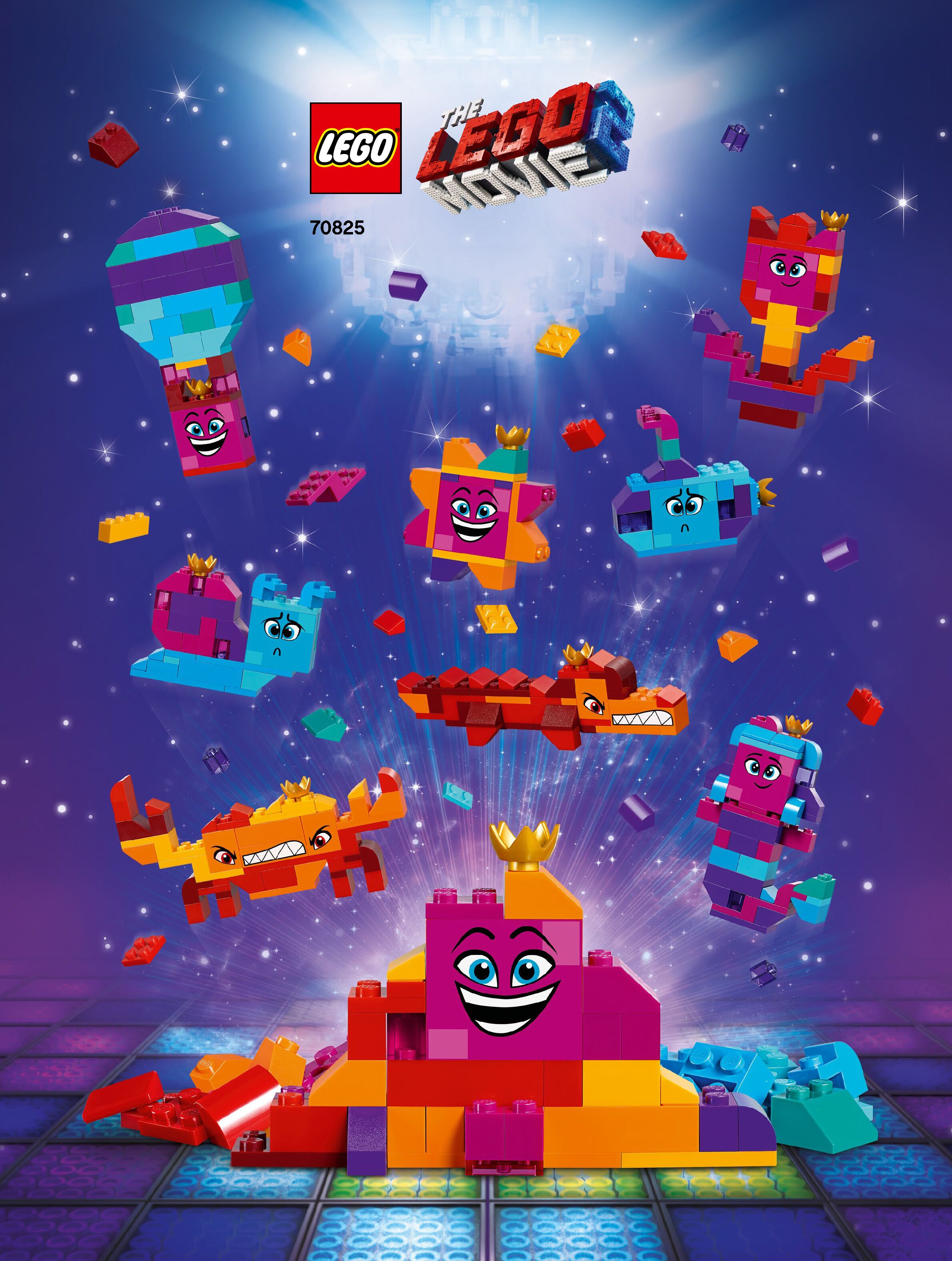 On this page you can find the original construction manual for the LEGO 70825 set. With the assembly manual you can easily learn how to build the 70825 Queen Watevra’s Build Whatever Box! step by step. The set was released in 2019.