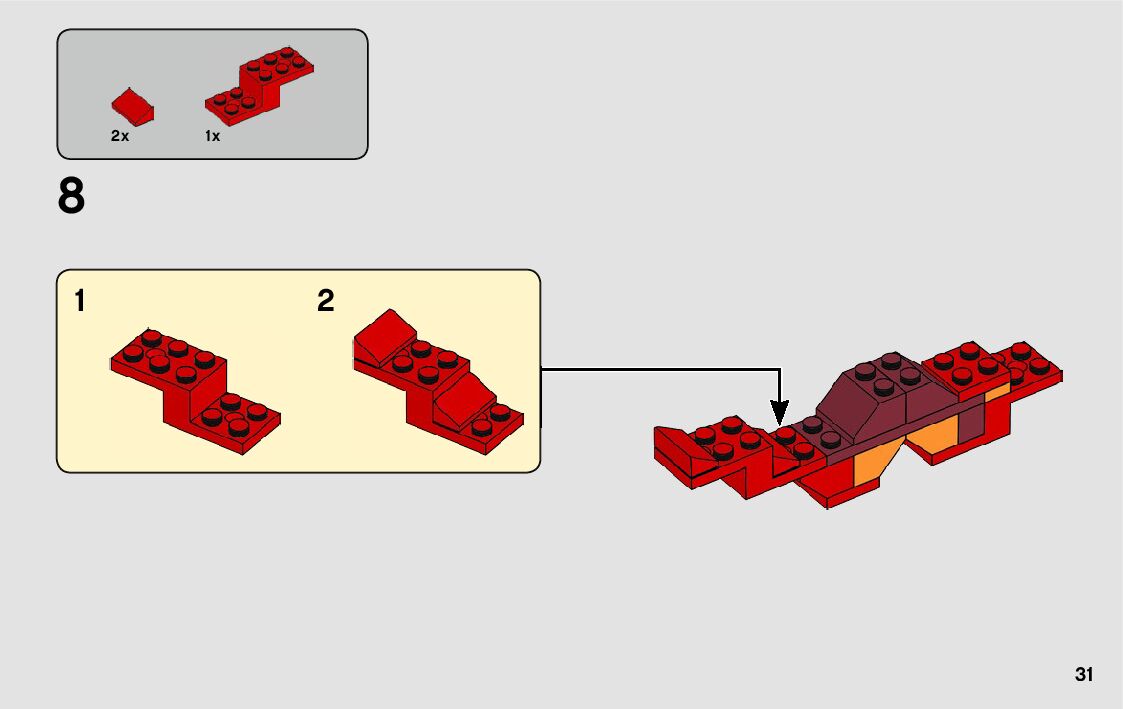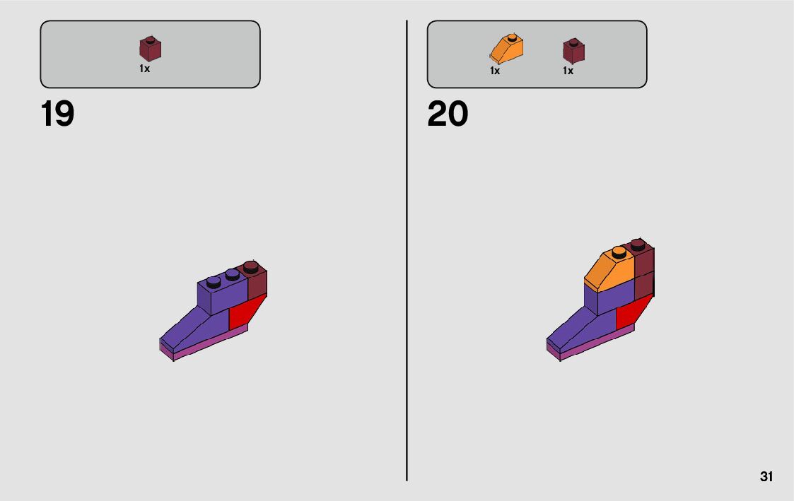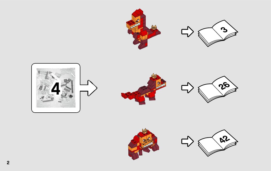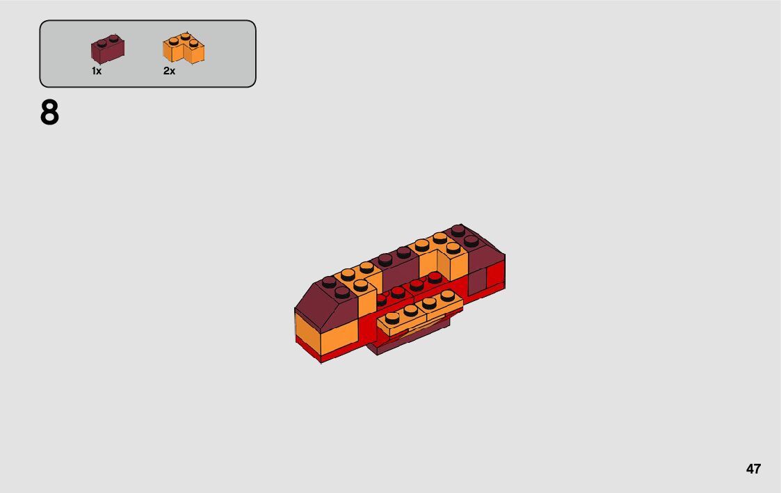 The assembly guide is prepared in a very understandable way for children and adult LEGO enthusiasts. A total of 262 picture galleries are shown, explaining the step-by-step construction stages for 6 different structures.