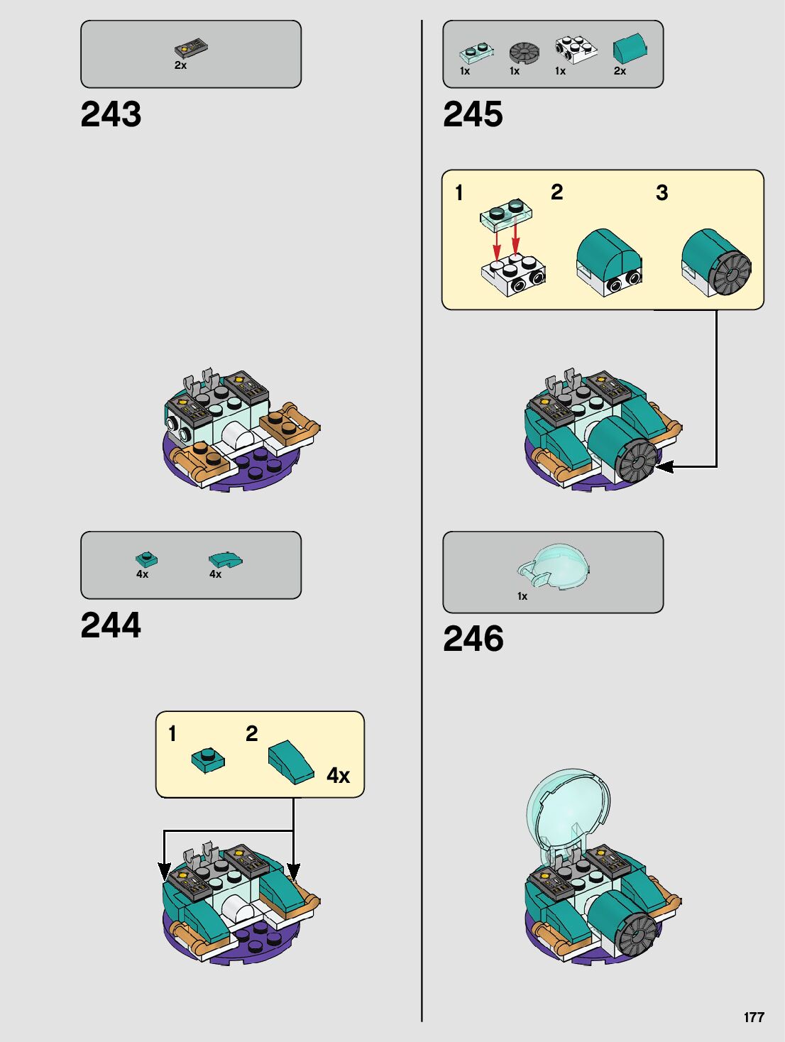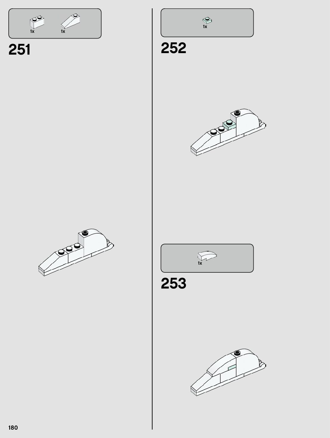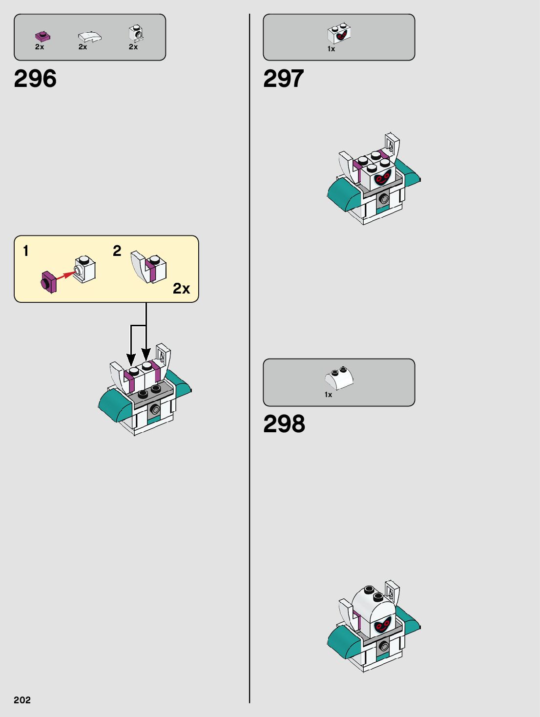 The assembly guide is prepared in a very understandable way for children and adult LEGO enthusiasts. A total of 212 picture galleries are shown, explaining the step-by-step construction stages for 1 different structures.