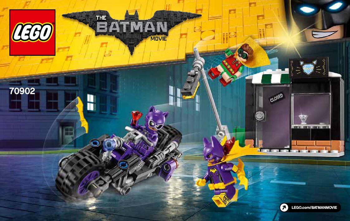 On this page you can find the original construction manual for the LEGO 70902 set. With the assembly manual you can easily learn how to build the 70902 Catwoman Catcycle Chase step by step. The set was released in 2017.
