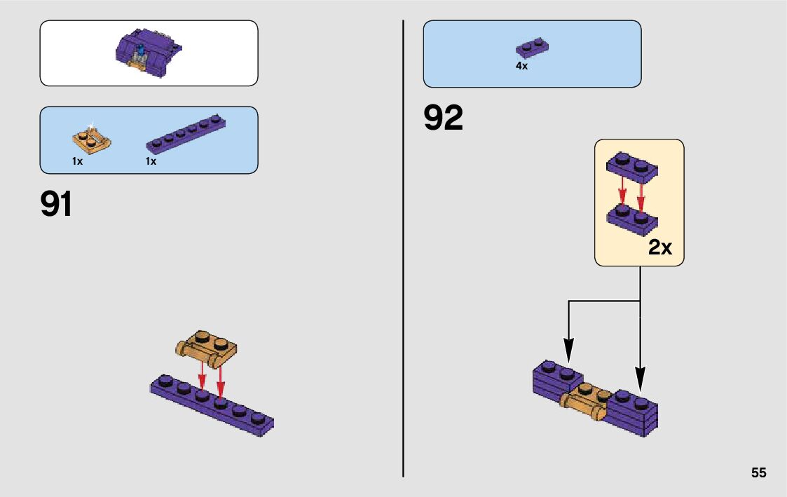 The assembly guide is prepared in a very understandable way for children and adult LEGO enthusiasts. A total of 528 picture galleries are shown, explaining the step-by-step construction stages for 2 different structures.