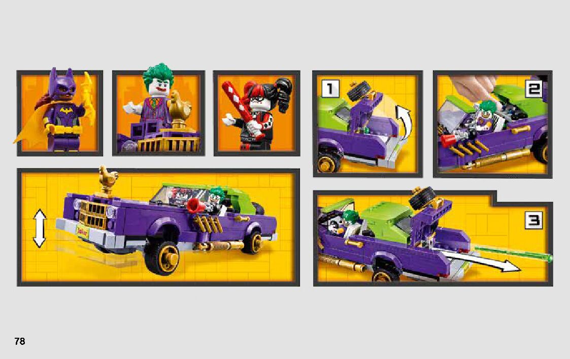 On this page you can find the original construction manual for the LEGO 70906 set. With the assembly manual you can easily learn how to build the 70906 The Joker Notorious Lowrider step by step. The set was released in 2016.