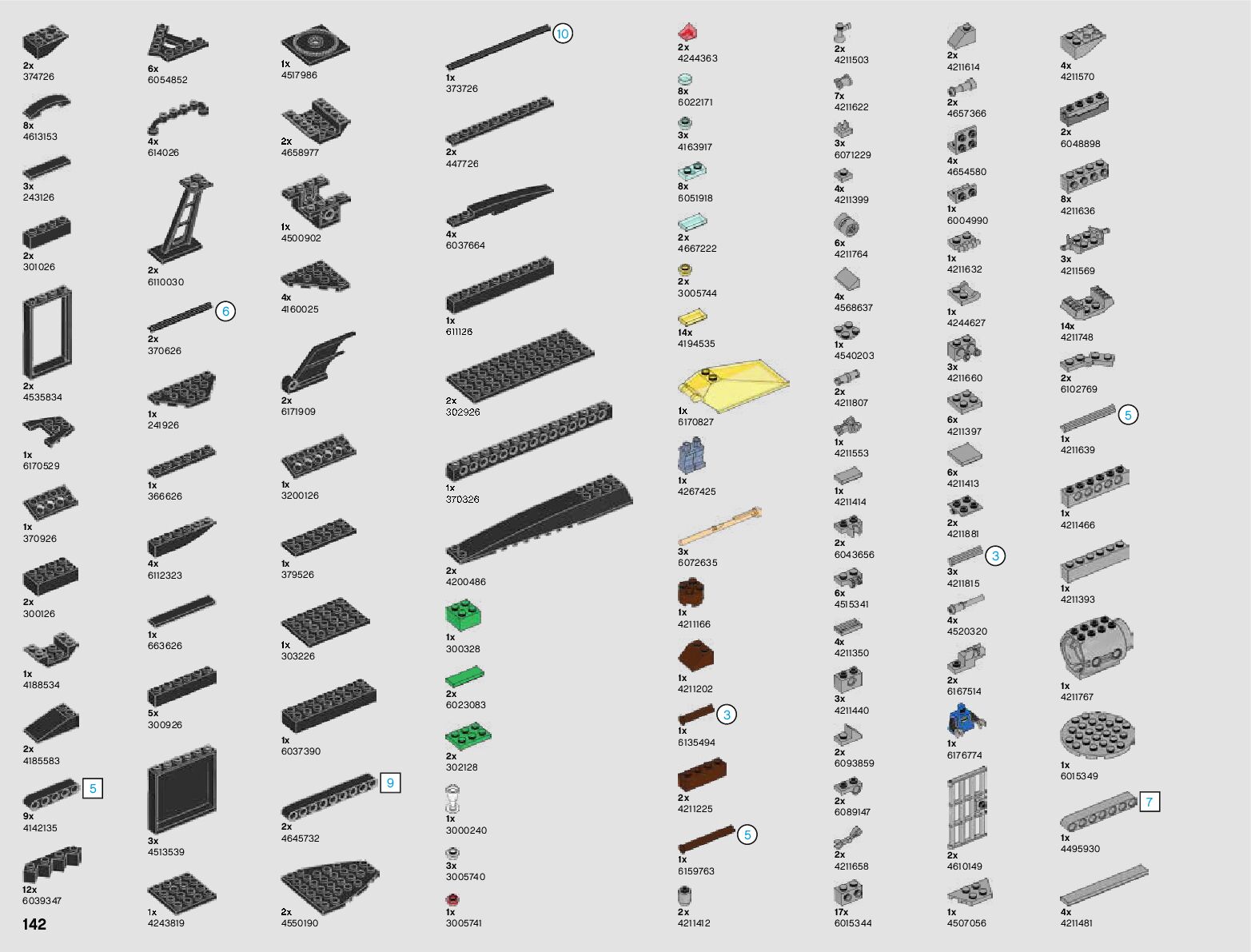 The assembly guide is prepared in a very understandable way for children and adult LEGO enthusiasts. A total of 576 picture galleries are shown, explaining the step-by-step construction stages for 1 different structures.