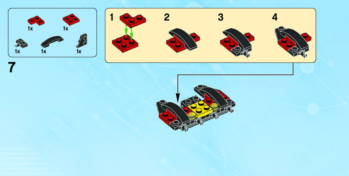 The assembly guide is prepared in a very understandable way for children and adult LEGO enthusiasts. A total of 756 picture galleries are shown, explaining the step-by-step construction stages for 4 different structures.