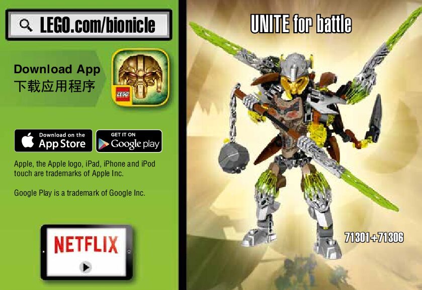 On this page you can find the original construction manual for the LEGO 71301 set. With the assembly manual you can easily learn how to build the 71301 Ketar Creature of Stone step by step. The set was released in 2016.