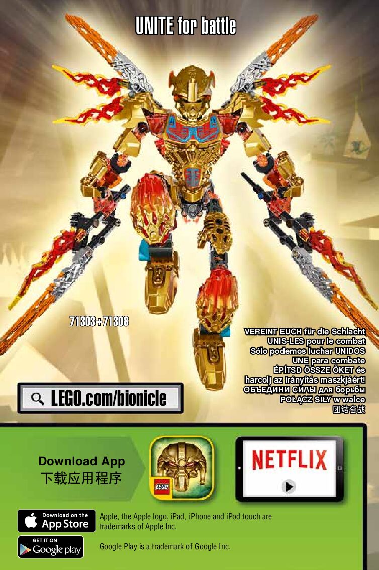 On this page you can find the original construction manual for the LEGO 71308 set. With the assembly manual you can easily learn how to build the 71308 Tahu Uniter of Fire step by step. The set was released in 2016.