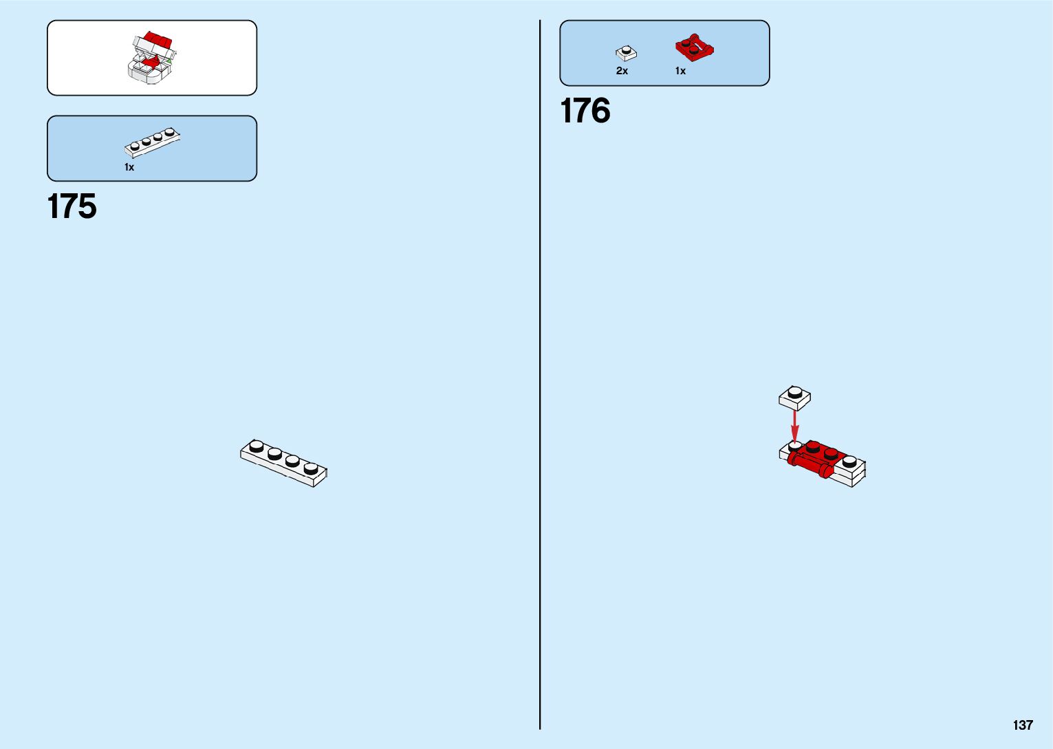 The assembly guide is prepared in a very understandable way for children and adult LEGO enthusiasts. A total of 1770 picture galleries are shown, explaining the step-by-step construction stages for 3 different structures.