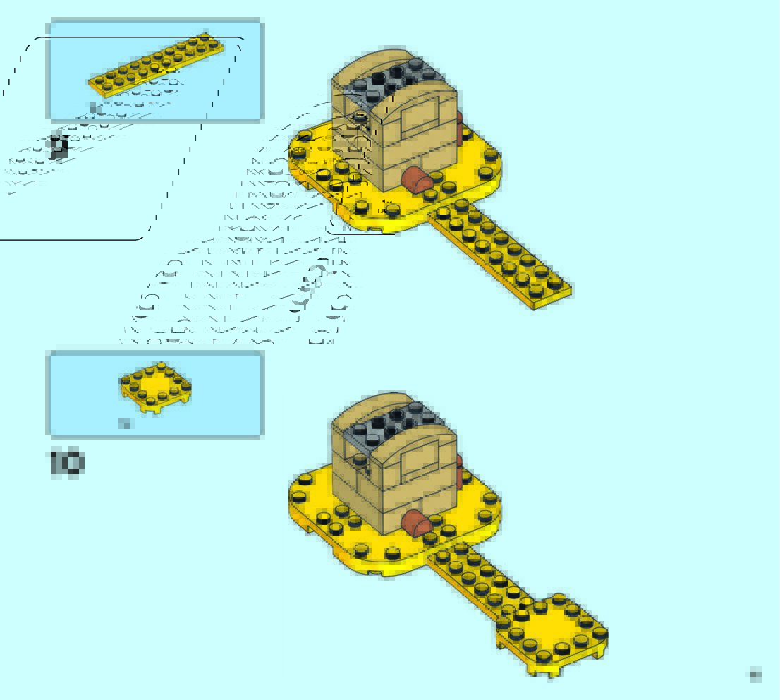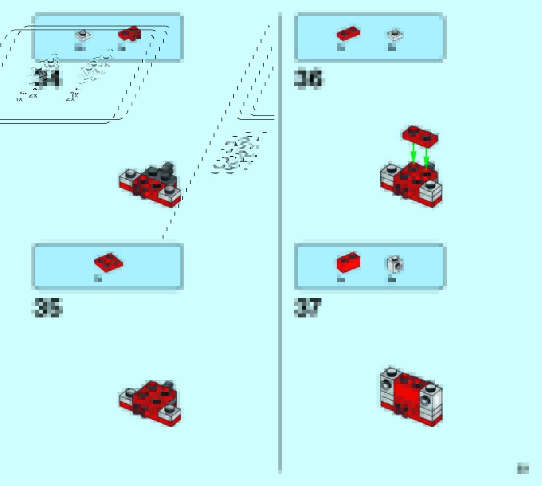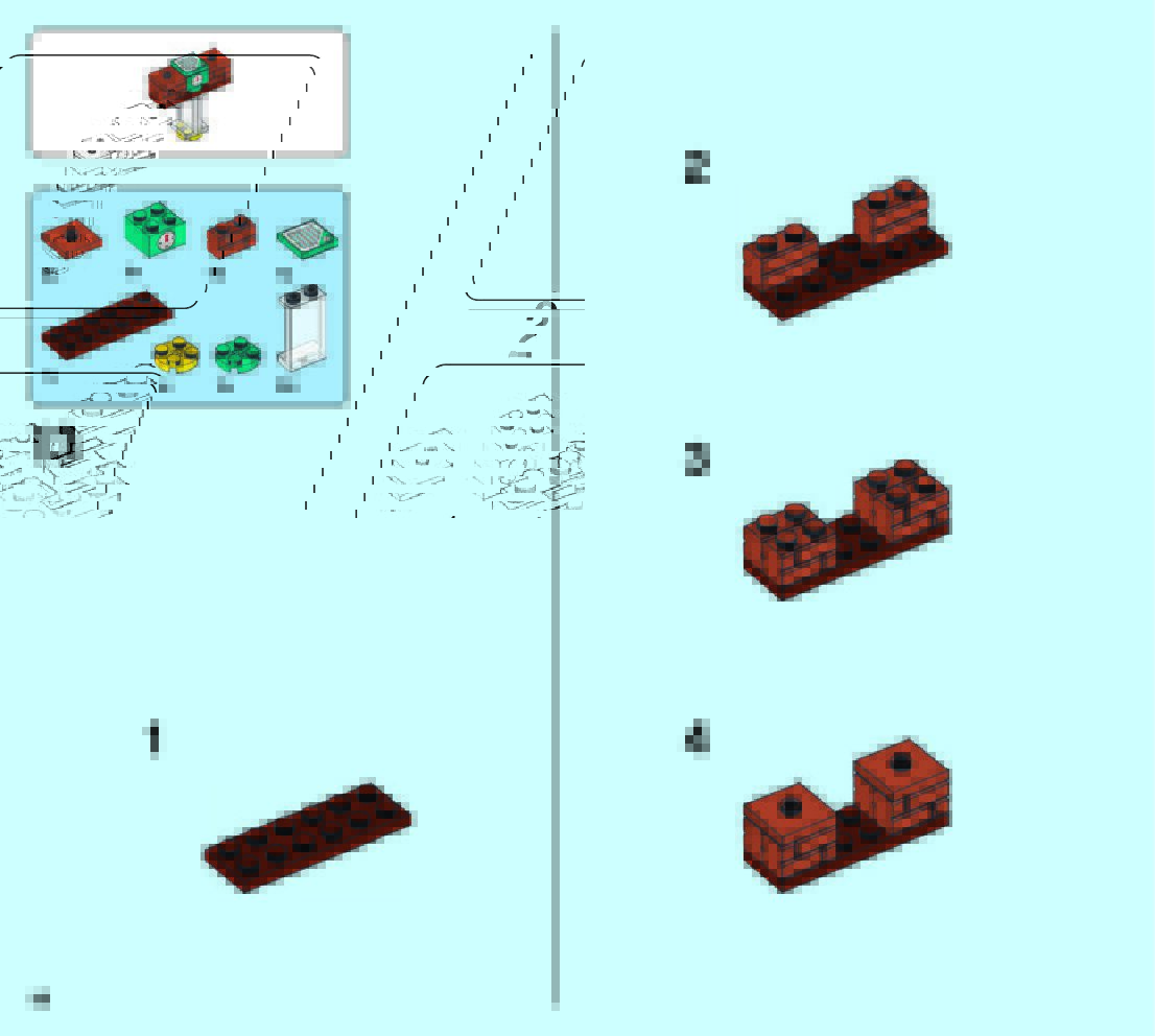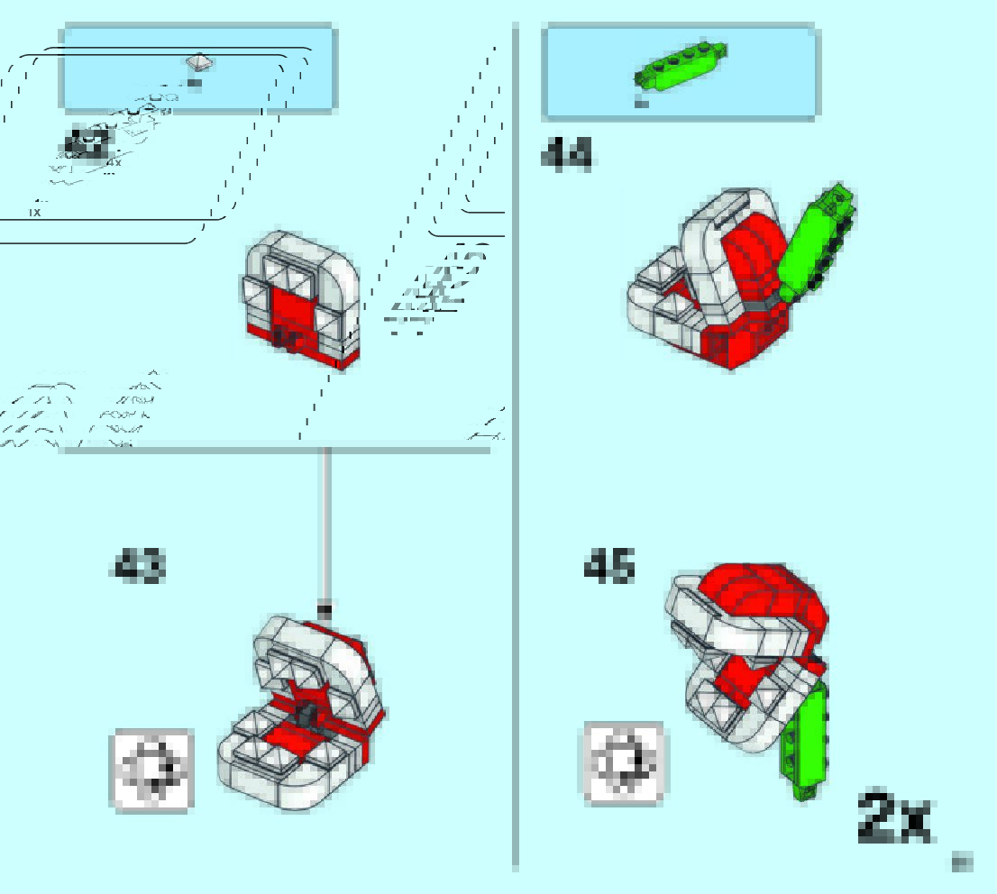 The assembly guide is prepared in a very understandable way for children and adult LEGO enthusiasts. A total of 49 picture galleries are shown, explaining the step-by-step construction stages for 2 different structures.