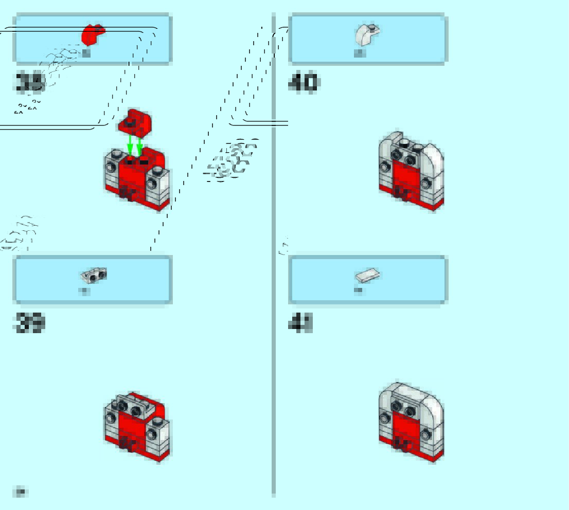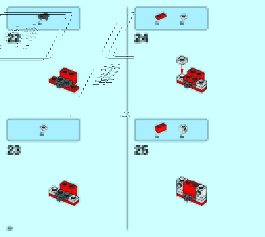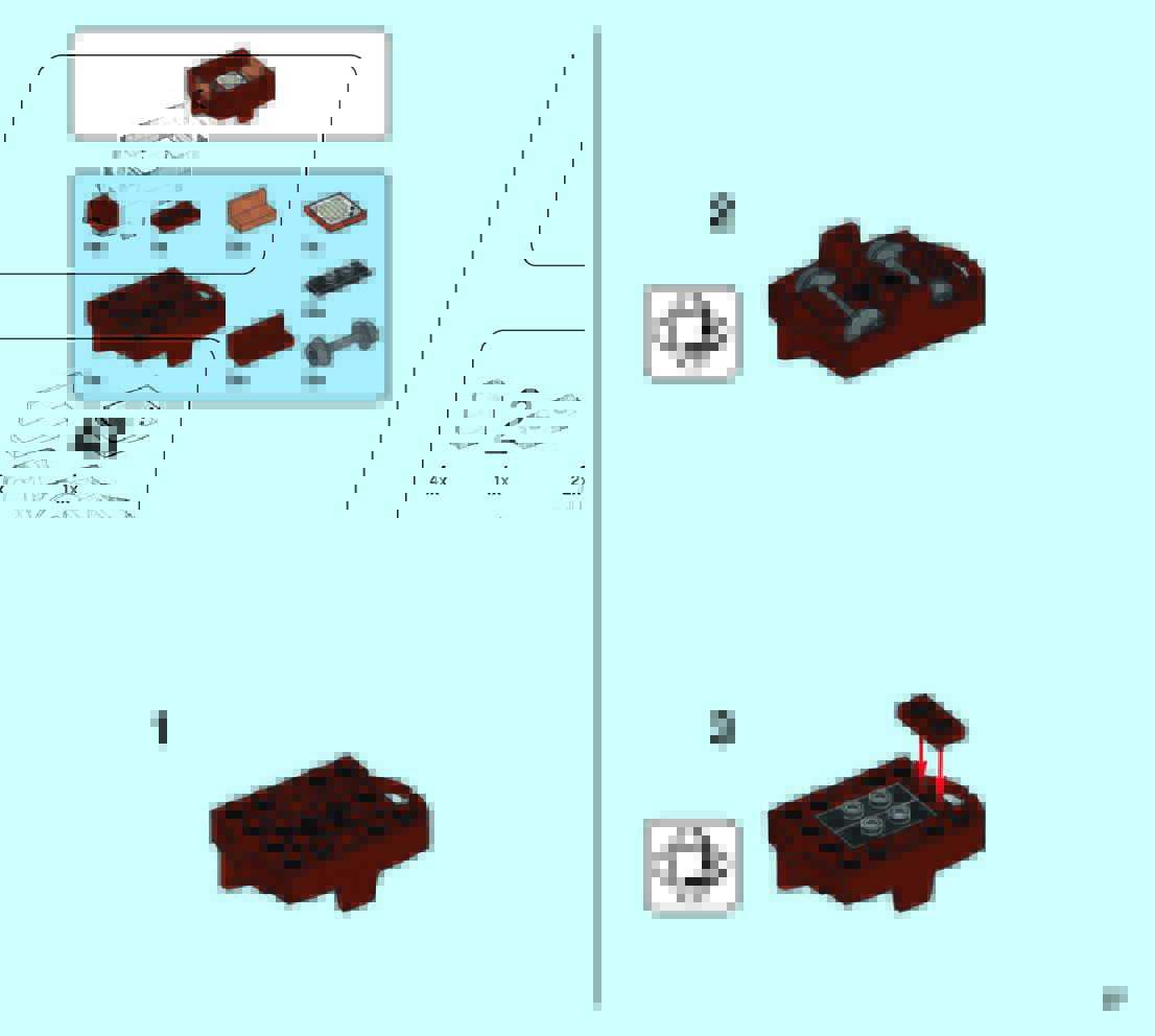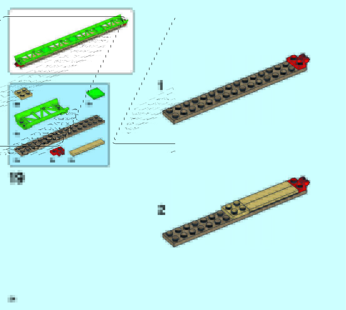 The assembly guide is prepared in a very understandable way for children and adult LEGO enthusiasts. A total of 49 picture galleries are shown, explaining the step-by-step construction stages for 2 different structures.