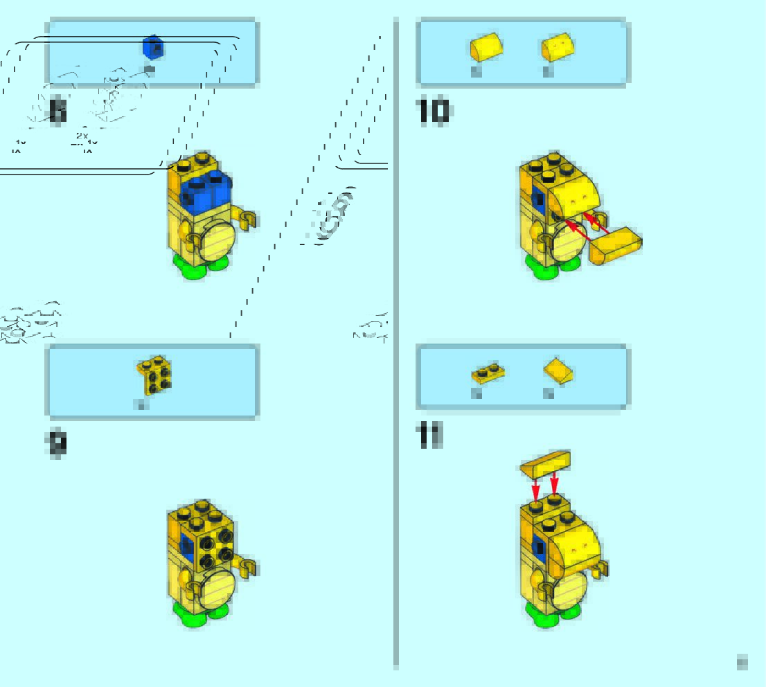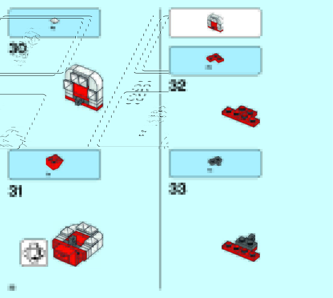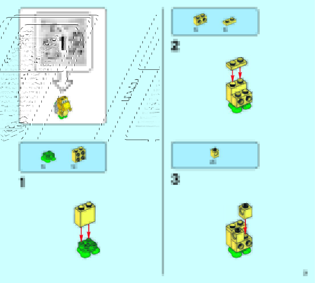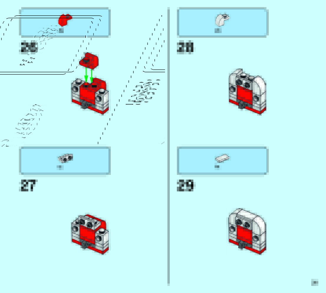 The assembly guide is prepared in a very understandable way for children and adult LEGO enthusiasts. A total of 49 picture galleries are shown, explaining the step-by-step construction stages for 2 different structures.