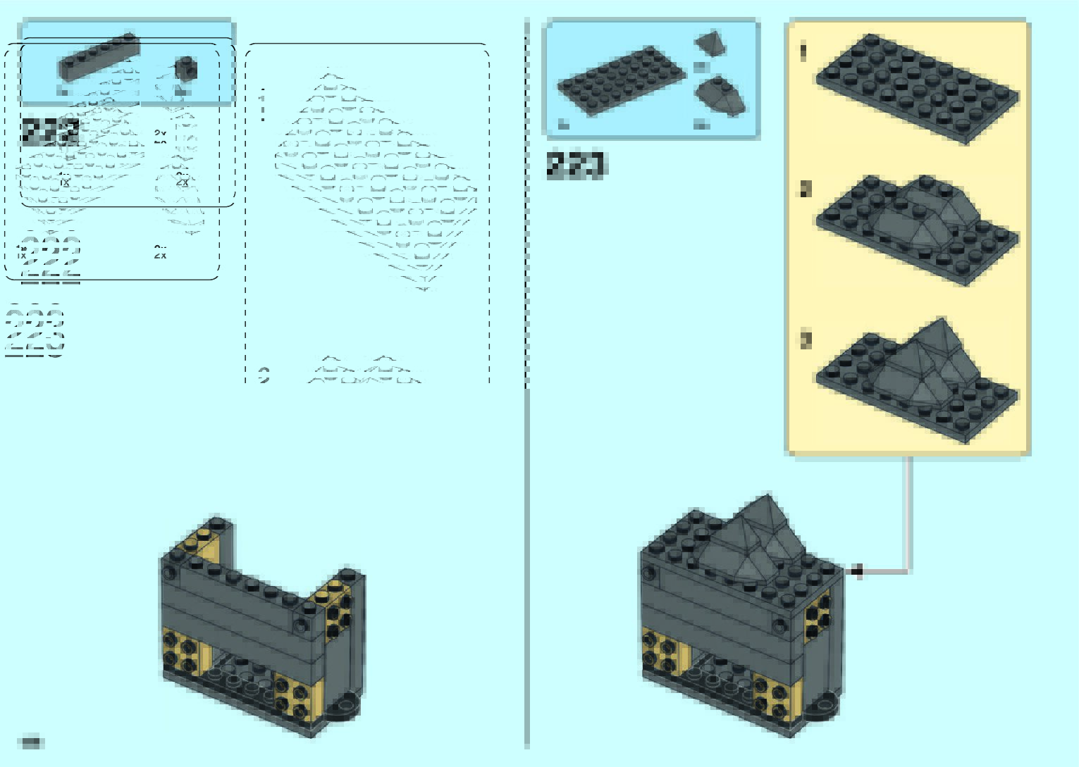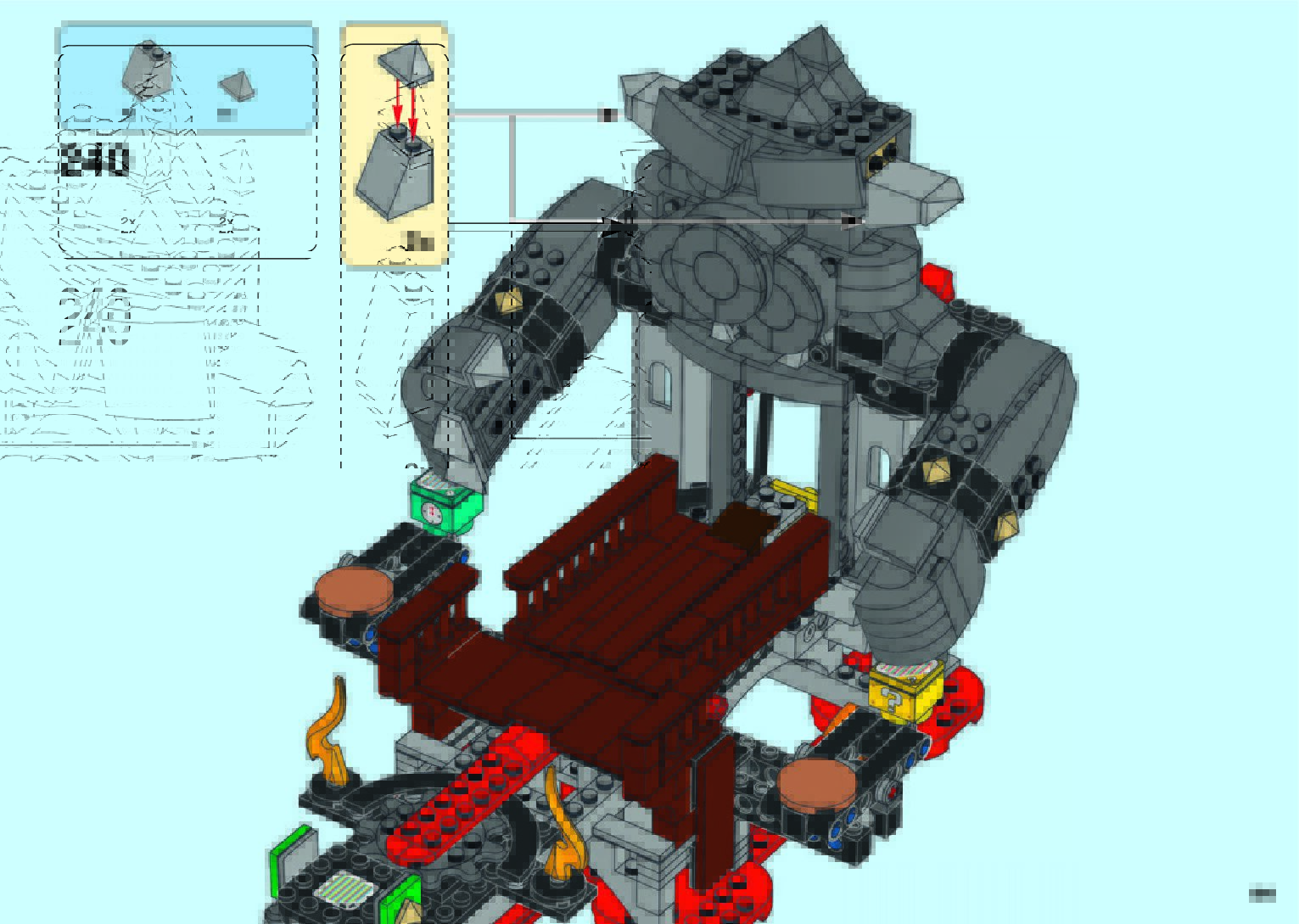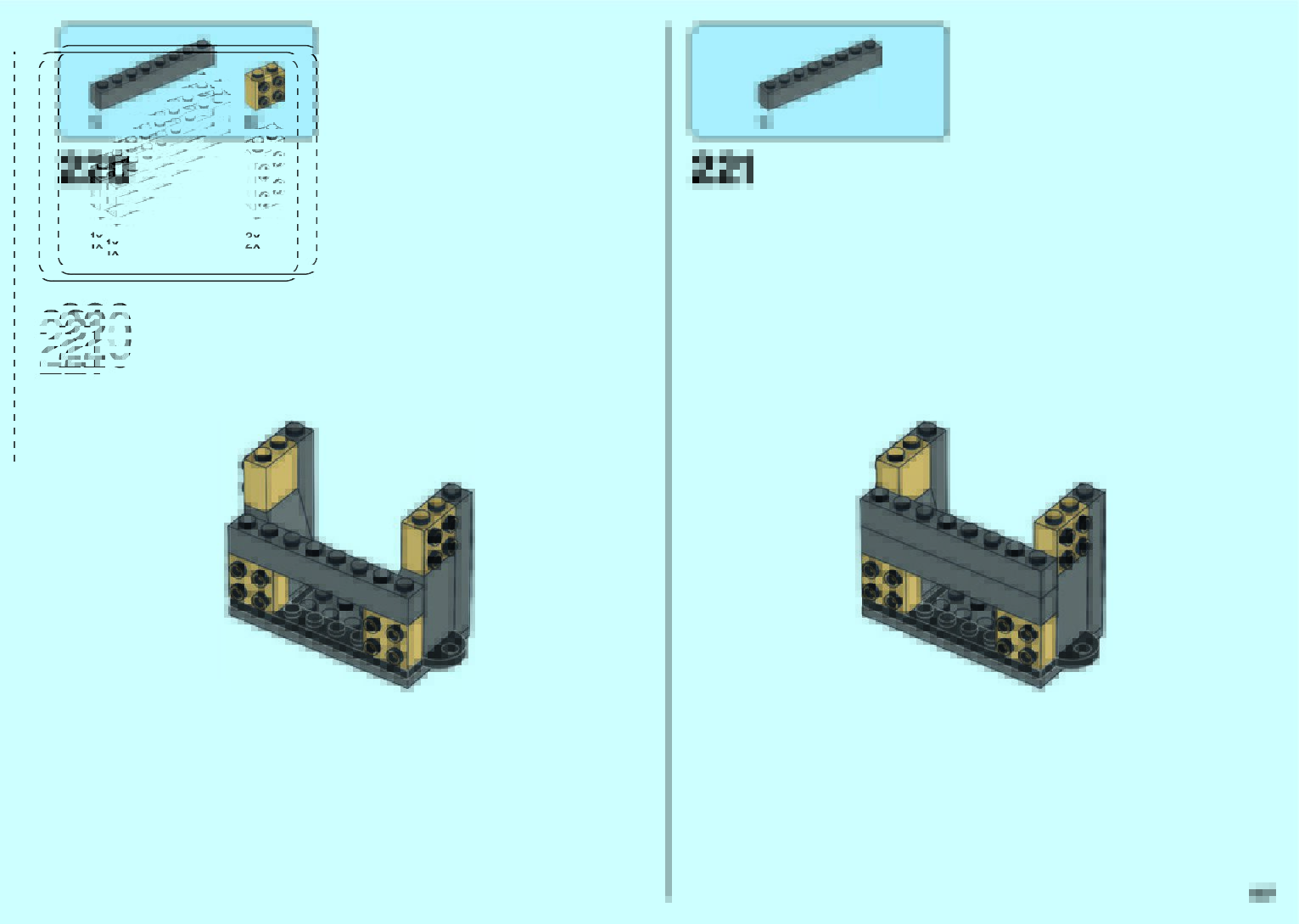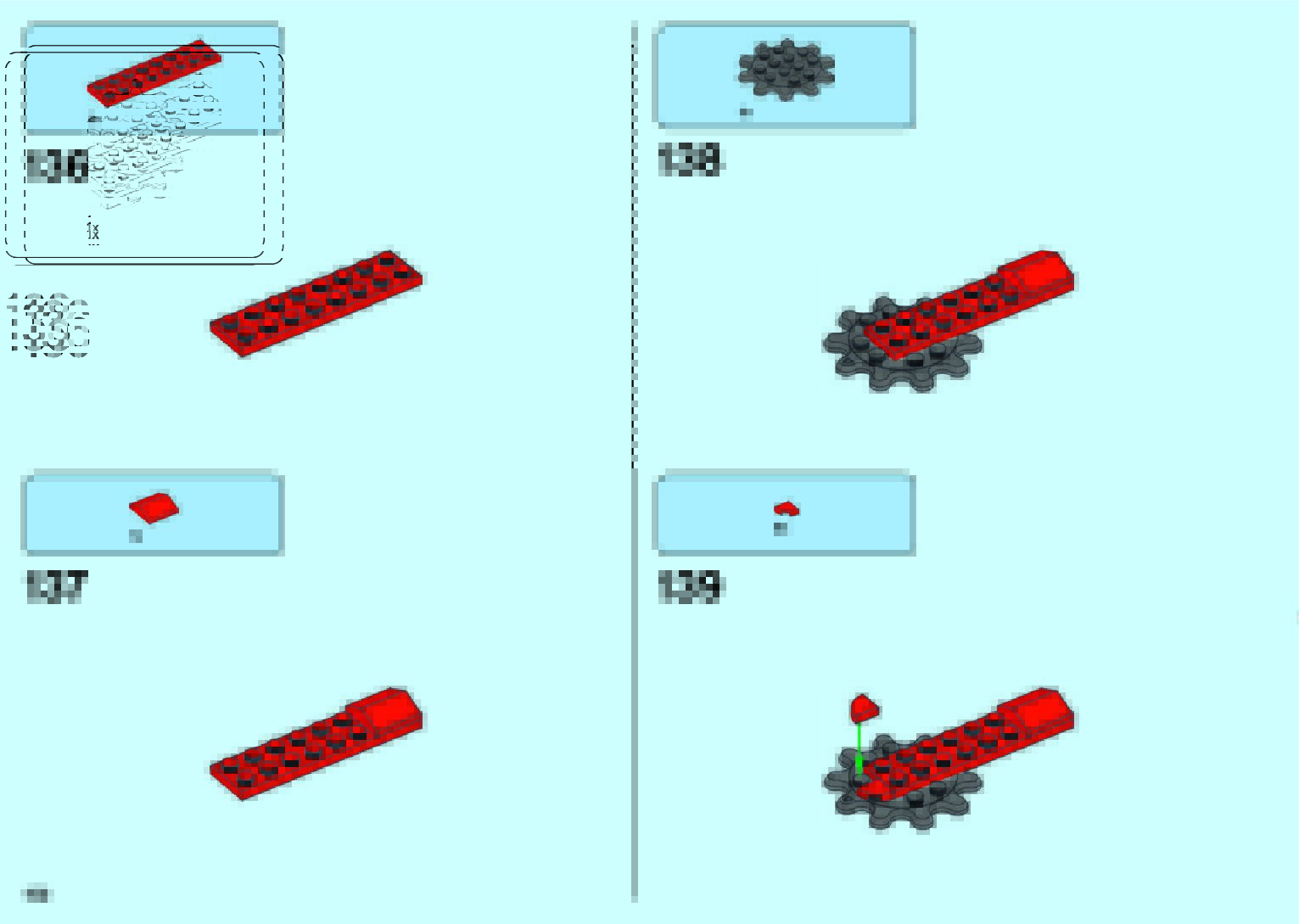 The assembly guide is prepared in a very understandable way for children and adult LEGO enthusiasts. A total of 252 picture galleries are shown, explaining the step-by-step construction stages for 2 different structures.