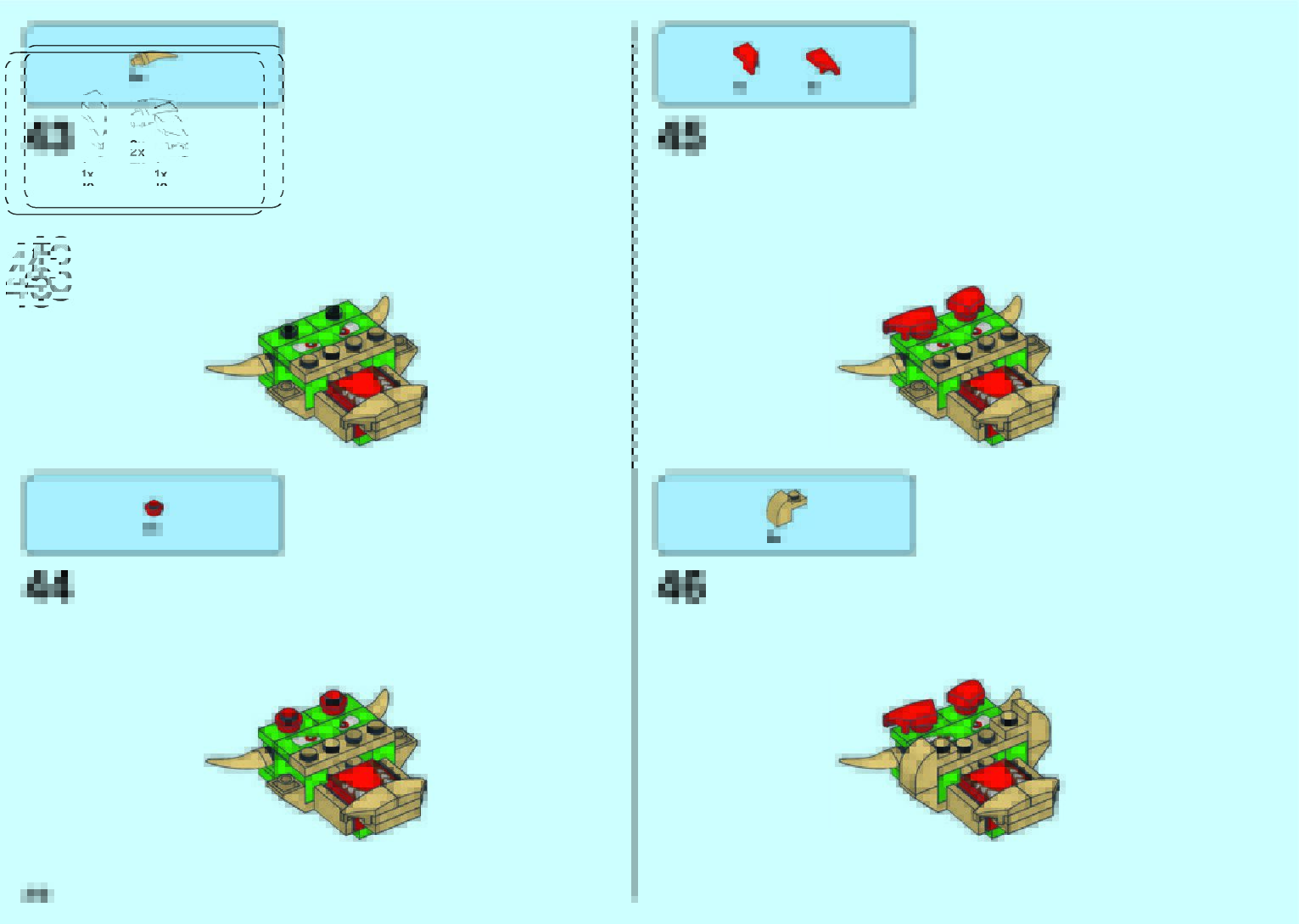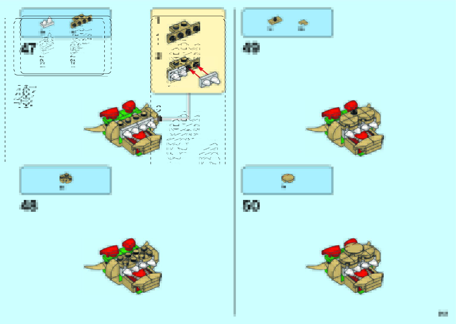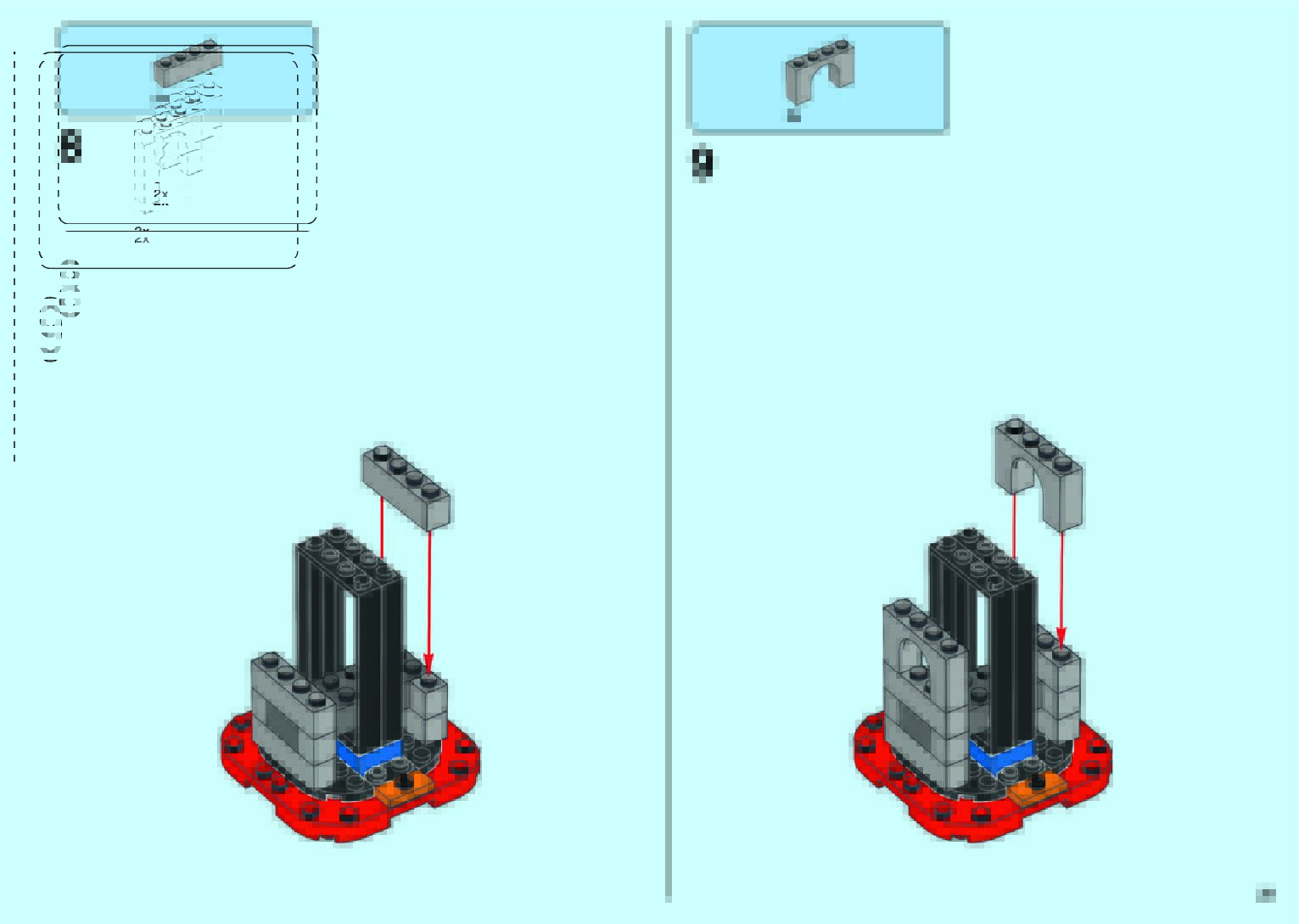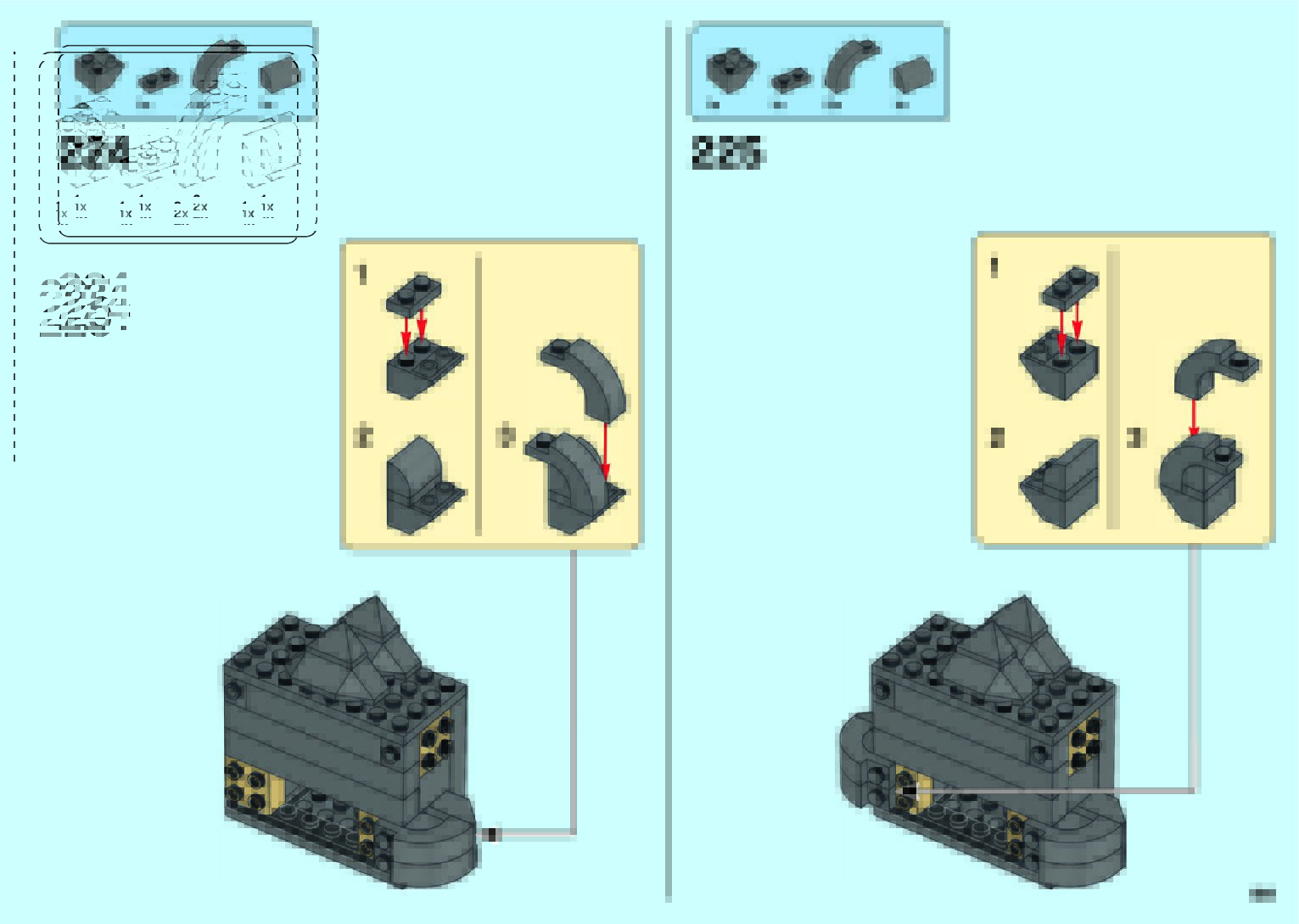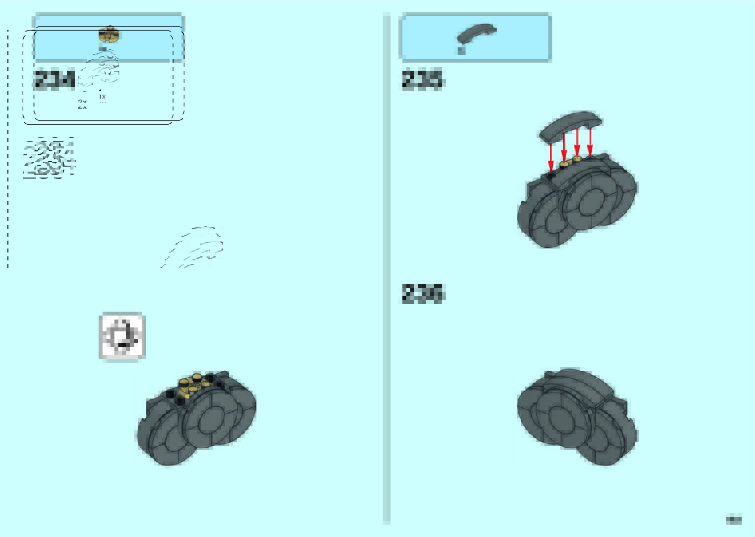 The assembly guide is prepared in a very understandable way for children and adult LEGO enthusiasts. A total of 252 picture galleries are shown, explaining the step-by-step construction stages for 2 different structures.