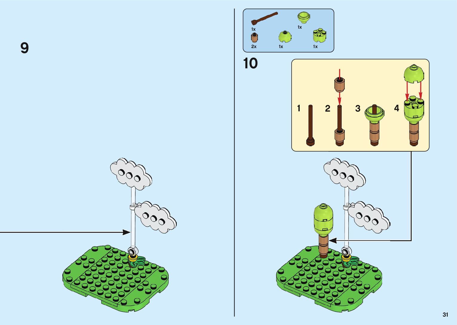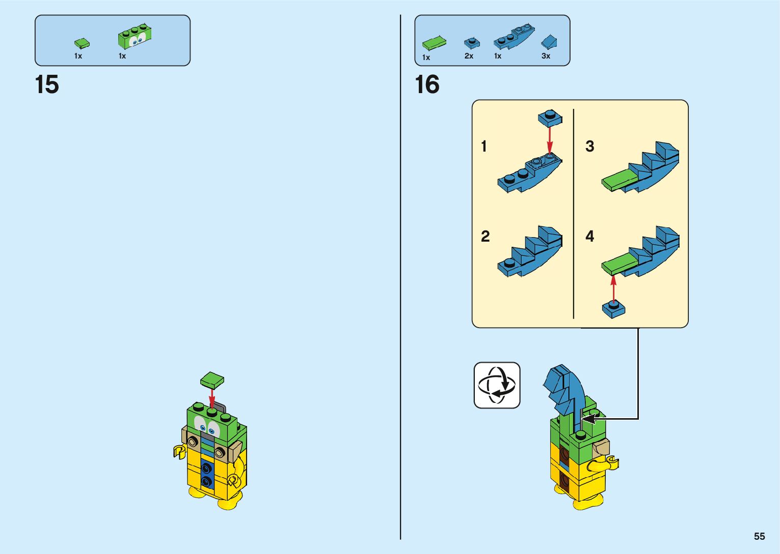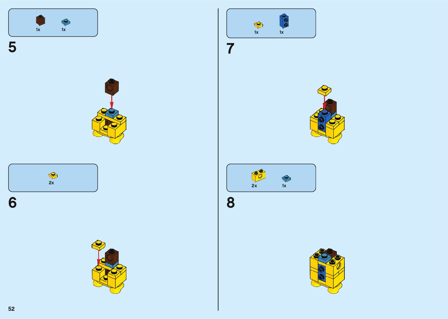 The assembly guide is prepared in a very understandable way for children and adult LEGO enthusiasts. A total of 69 picture galleries are shown, explaining the step-by-step construction stages for 2 different structures.