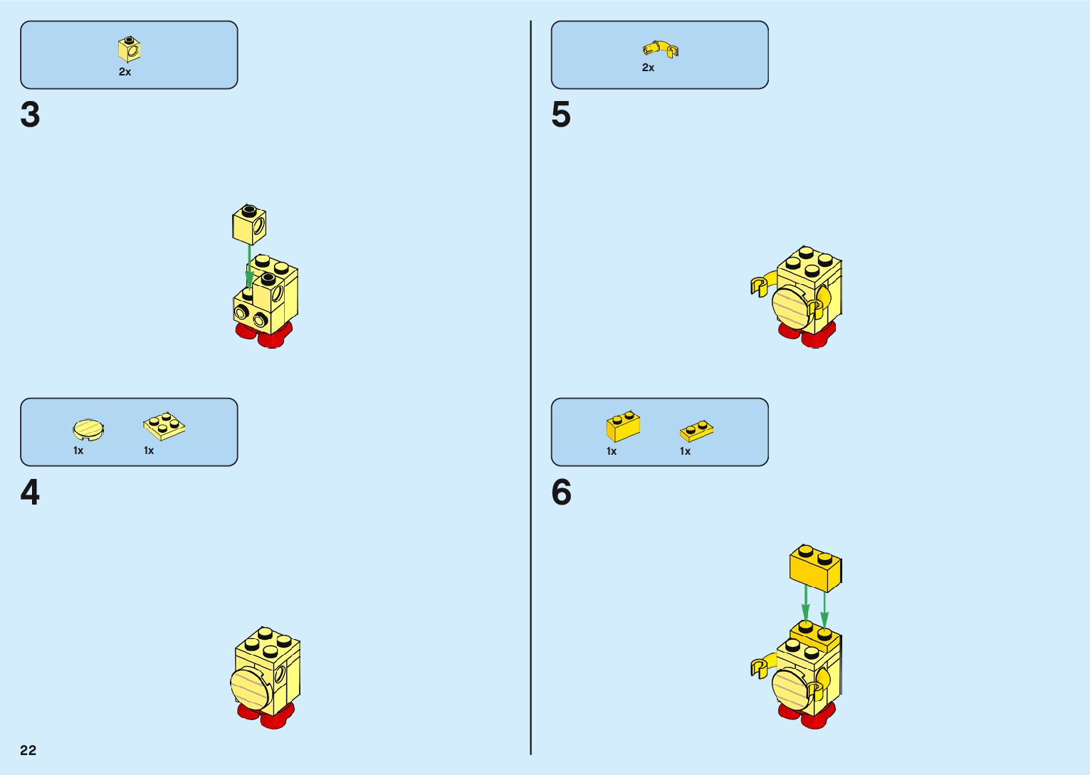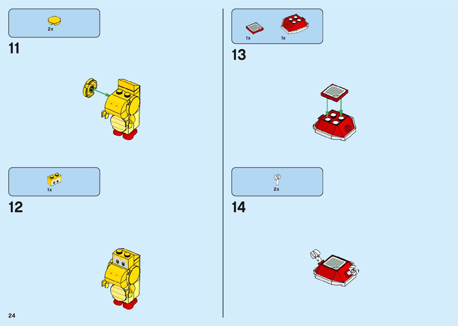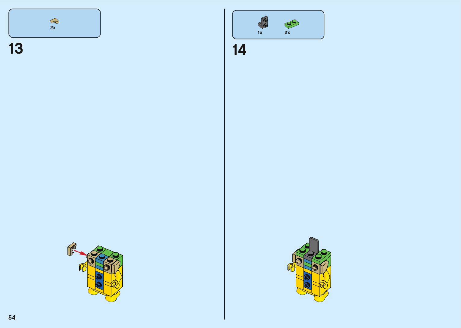 The assembly guide is prepared in a very understandable way for children and adult LEGO enthusiasts. A total of 69 picture galleries are shown, explaining the step-by-step construction stages for 2 different structures.