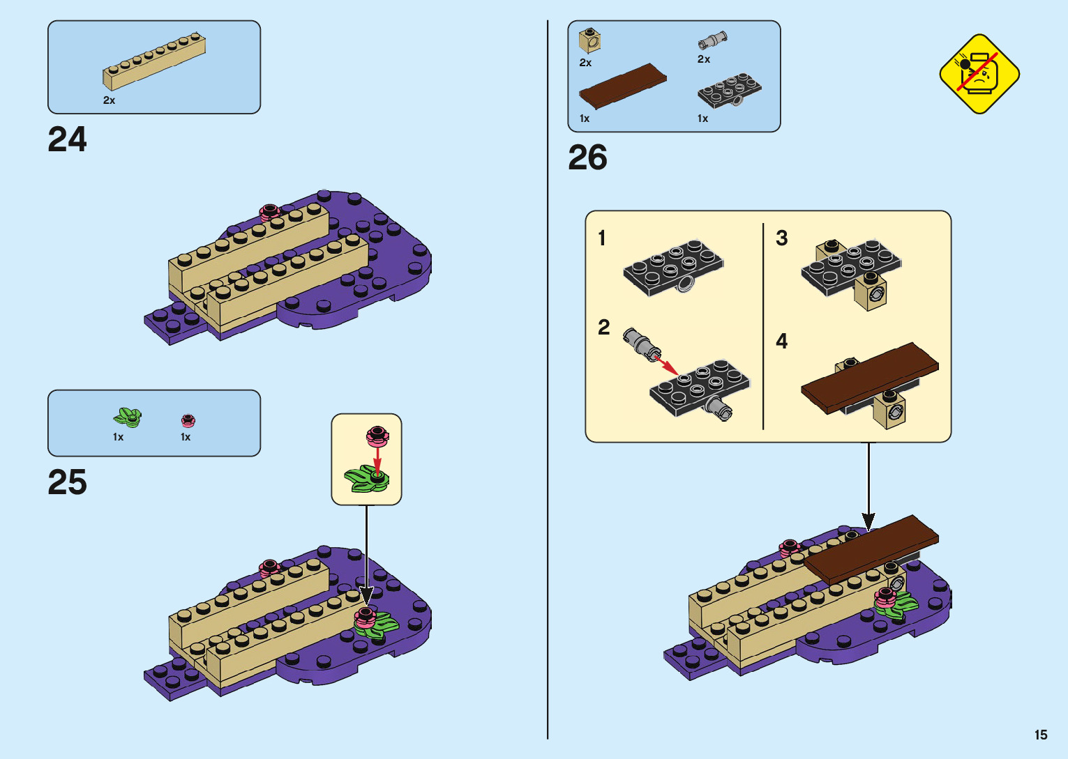 The assembly guide is prepared in a very understandable way for children and adult LEGO enthusiasts. A total of 195 picture galleries are shown, explaining the step-by-step construction stages for 2 different structures.