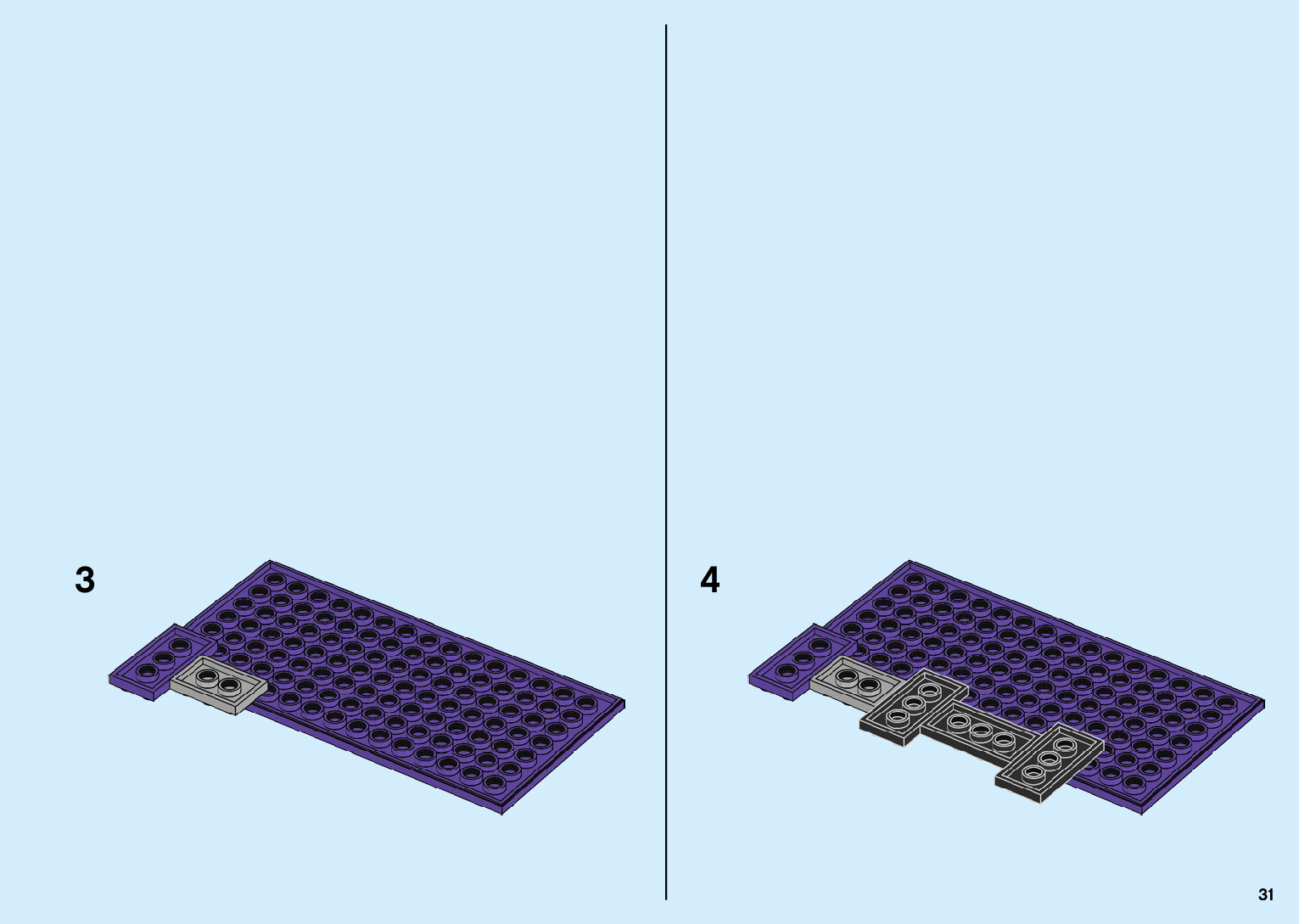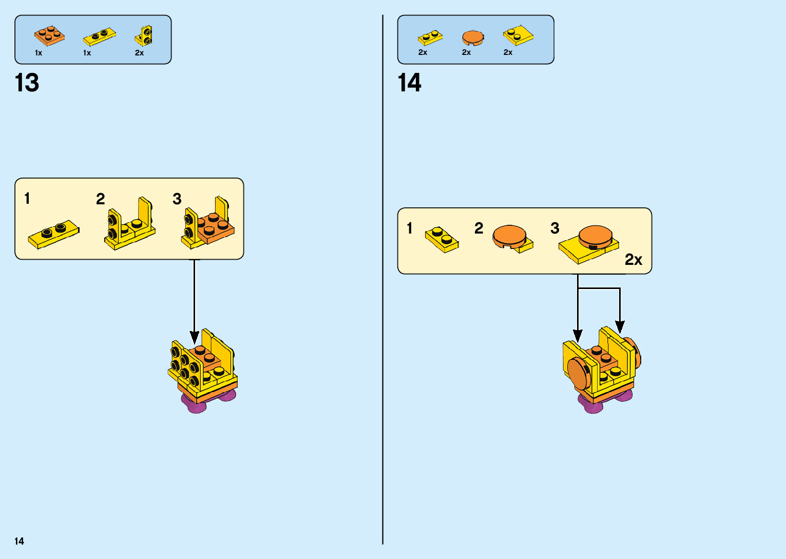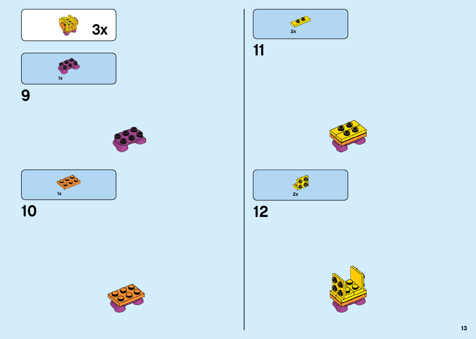 The assembly guide is prepared in a very understandable way for children and adult LEGO enthusiasts. A total of 100 picture galleries are shown, explaining the step-by-step construction stages for 2 different structures.
