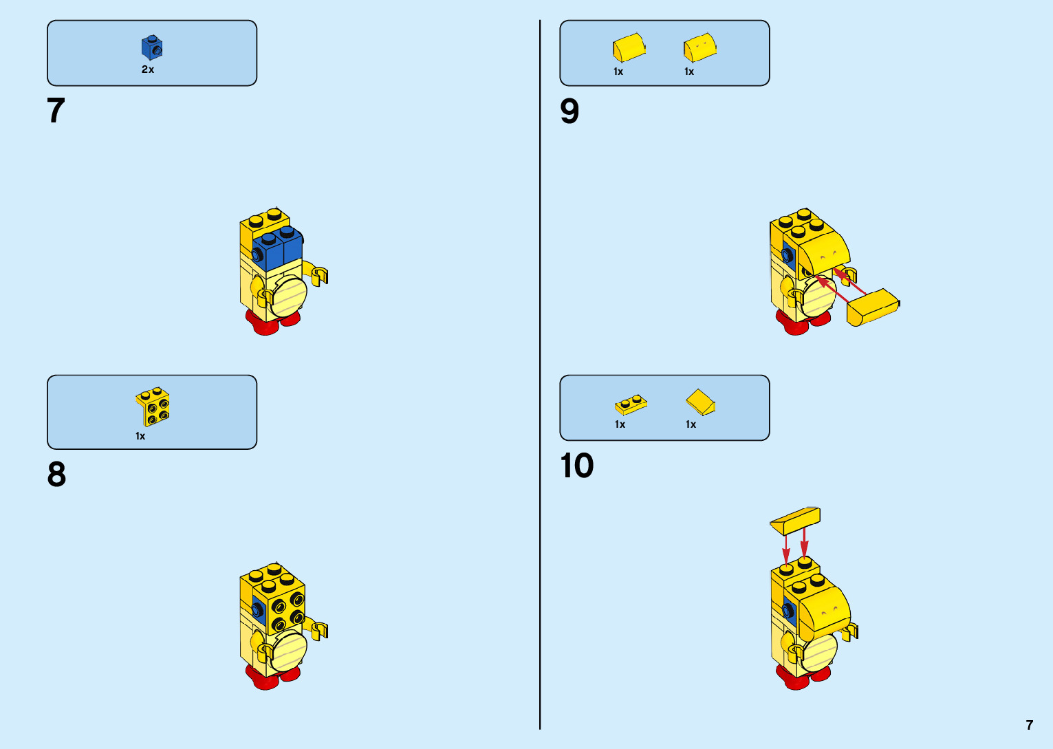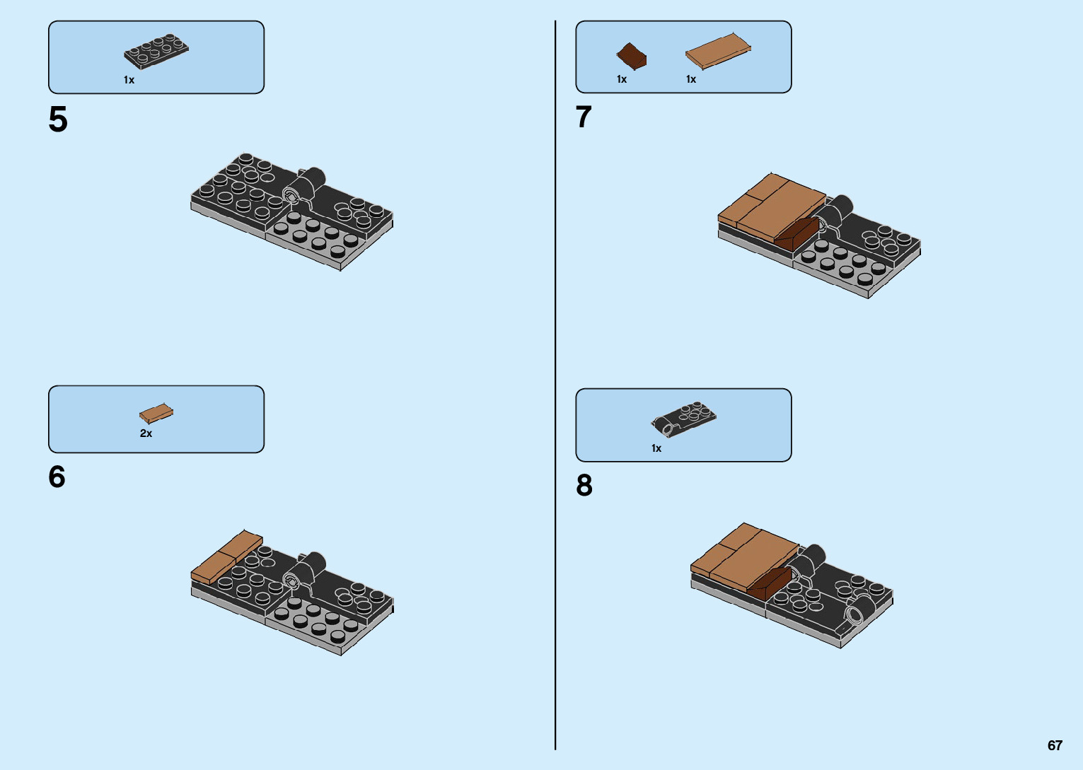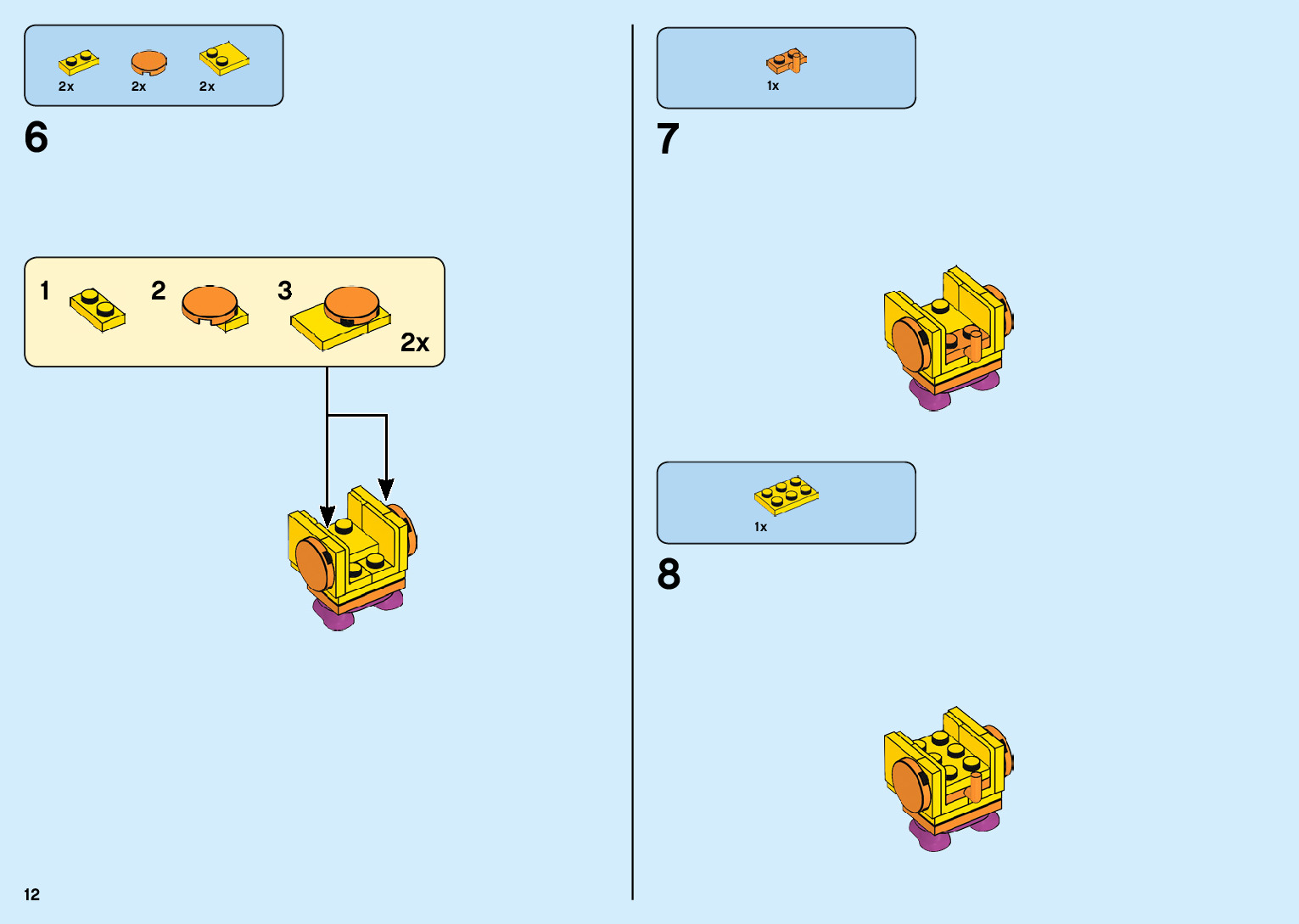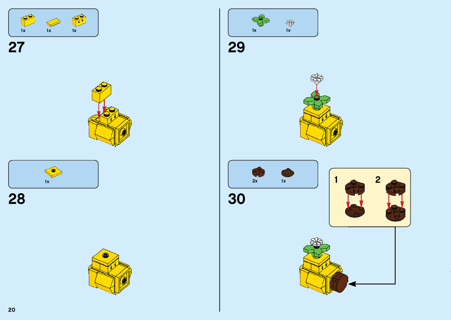 The assembly guide is prepared in a very understandable way for children and adult LEGO enthusiasts. A total of 100 picture galleries are shown, explaining the step-by-step construction stages for 2 different structures.